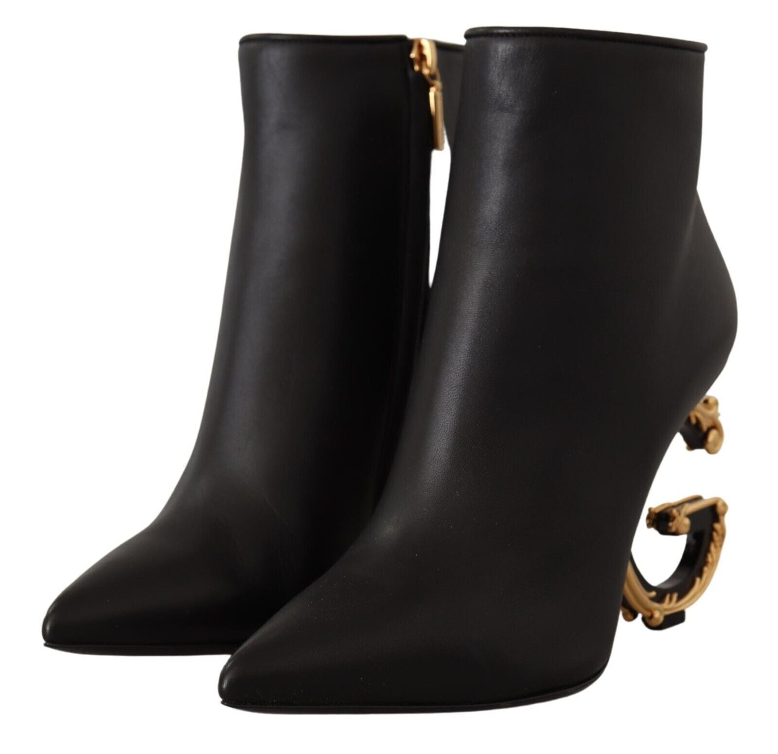 Step into luxury with these gorgeous, brand new black leather ankle boots from Dolce & Gabbana. Adorned with the iconic DG logo on the heels, these boots exemplify high quality and supreme comfort. Crafted with meticulous attention to detail in Italy, they are the epitome of designer footwear, sure to elevate any ensemble.