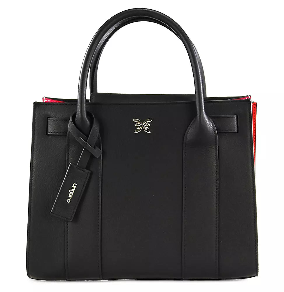 Step out in style with this spacious black leather shoulder bag, featuring an eye-catching colored accordion design on the sides. Adorned with a chic metal logo on the front and crafted from a luxurious mix of calfskin leather and PVC, this bag merges sophistication with practicality. The removable shoulder strap allows for versatile carrying options, making it a perfect accessory for any occasion. Elevate your accessory collection with this impeccable statement piece.