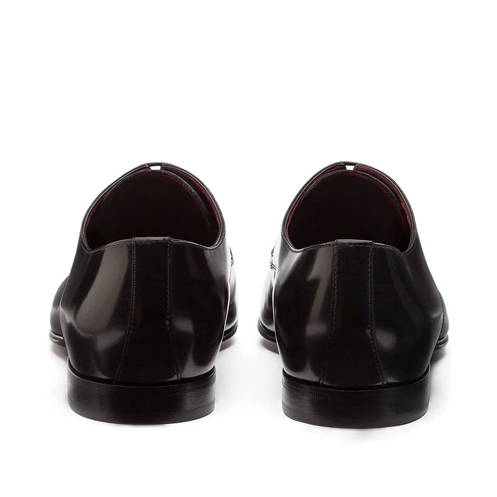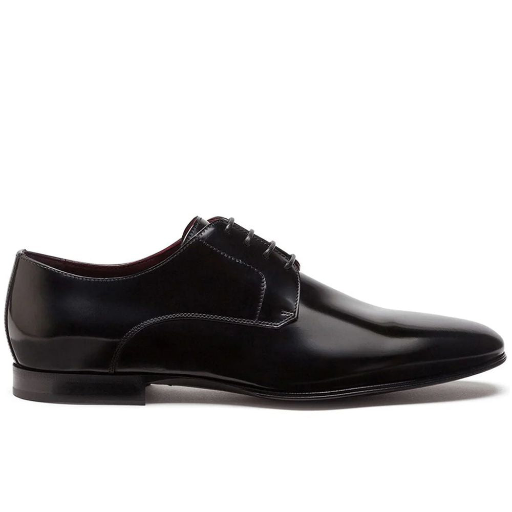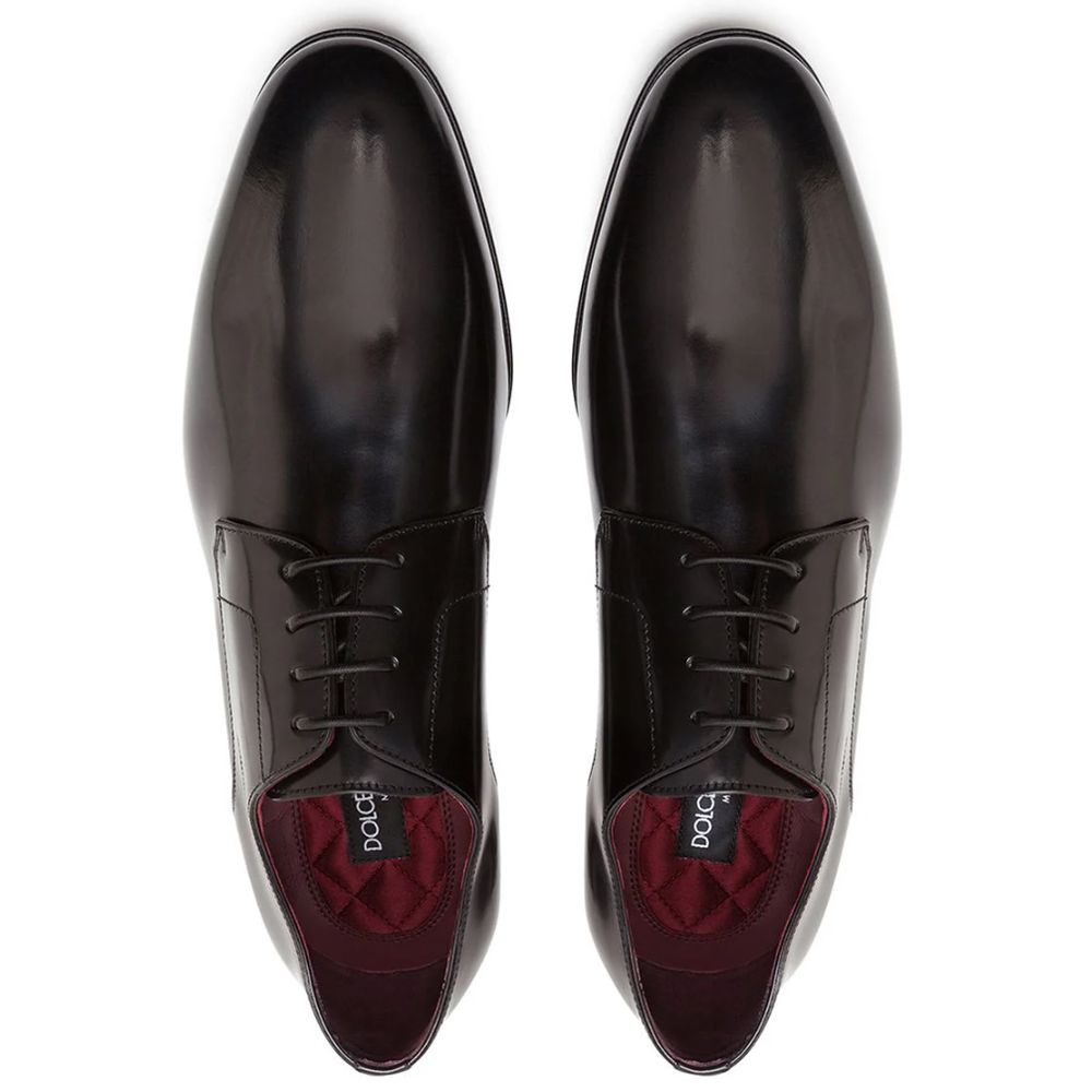Dolce & Gabbana black brushed calfskin derby shoes, red fabric matelassé interior