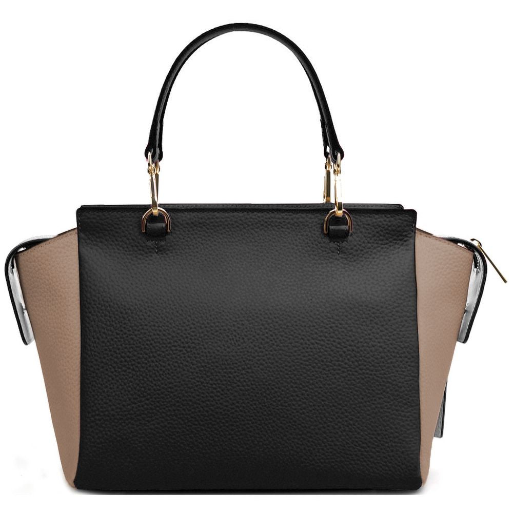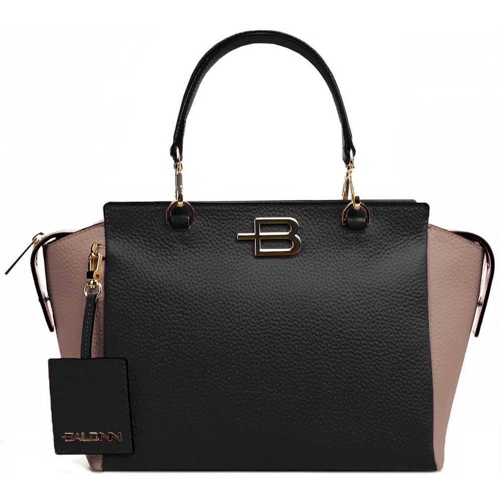 Indulge in the epitome of style with this elegant Baldinini Trend handbag, crafted from premium black and beige textured calfskin. Featuring a sleek zip closure and versatile removable leather handles, this chic accessory is adorned with a distinguished metal logo. Organize effortlessly with its practical internal compartments, and enjoy the added convenience of a shoulder strap for styling versatility. Perfect for elevating any outfit, this handbag is a must-have for fashion connoisseurs.