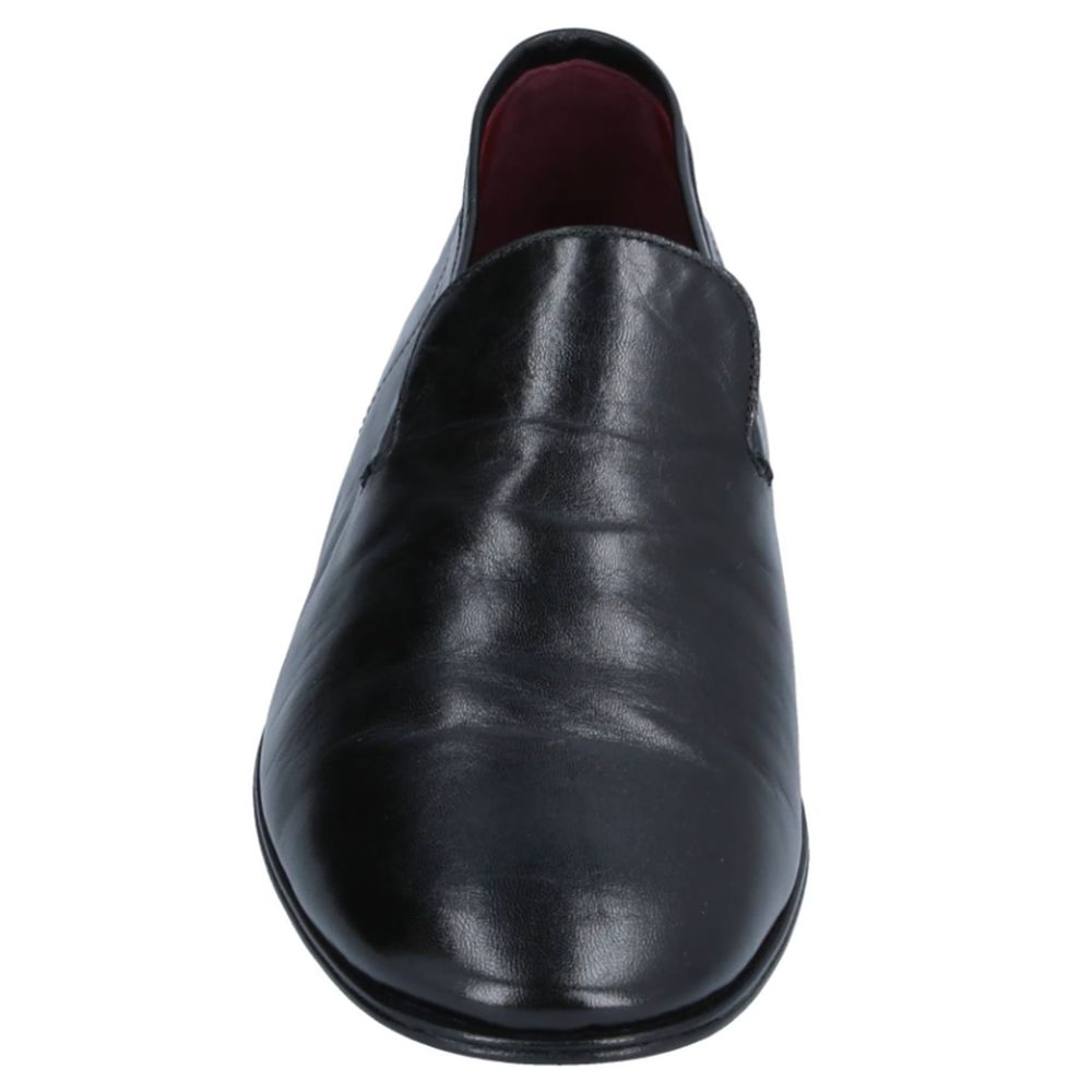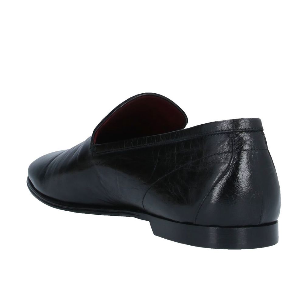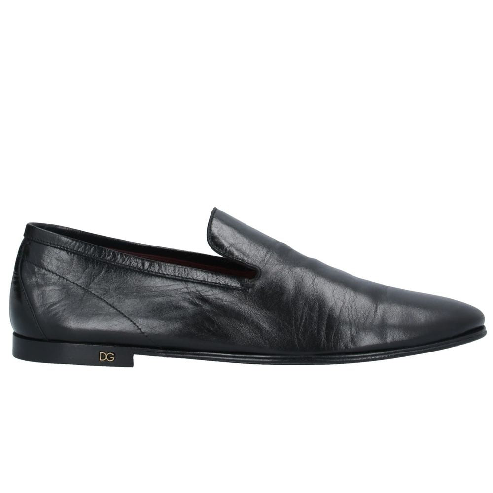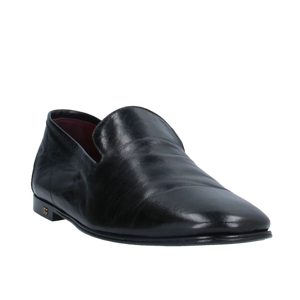 Dolce & Gabbana black calfskin slip-on loafers with red leather matelassé interior, metallic DG logo stamped on heel