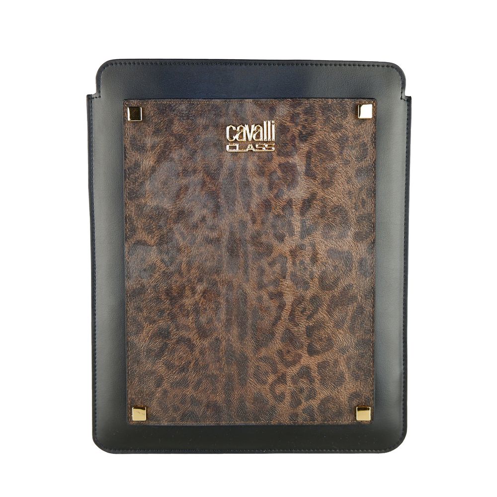 Step into the wild side with this luxurious Cavalli Class tablet case, crafted from the finest calfskin leather boasting an exquisite leopard print design. A standout piece to protect your device in style, it features a velvet-lined interior and a prominent metallic logo sure to catch the eye. Perfect for the fashion-forward individual on the go.