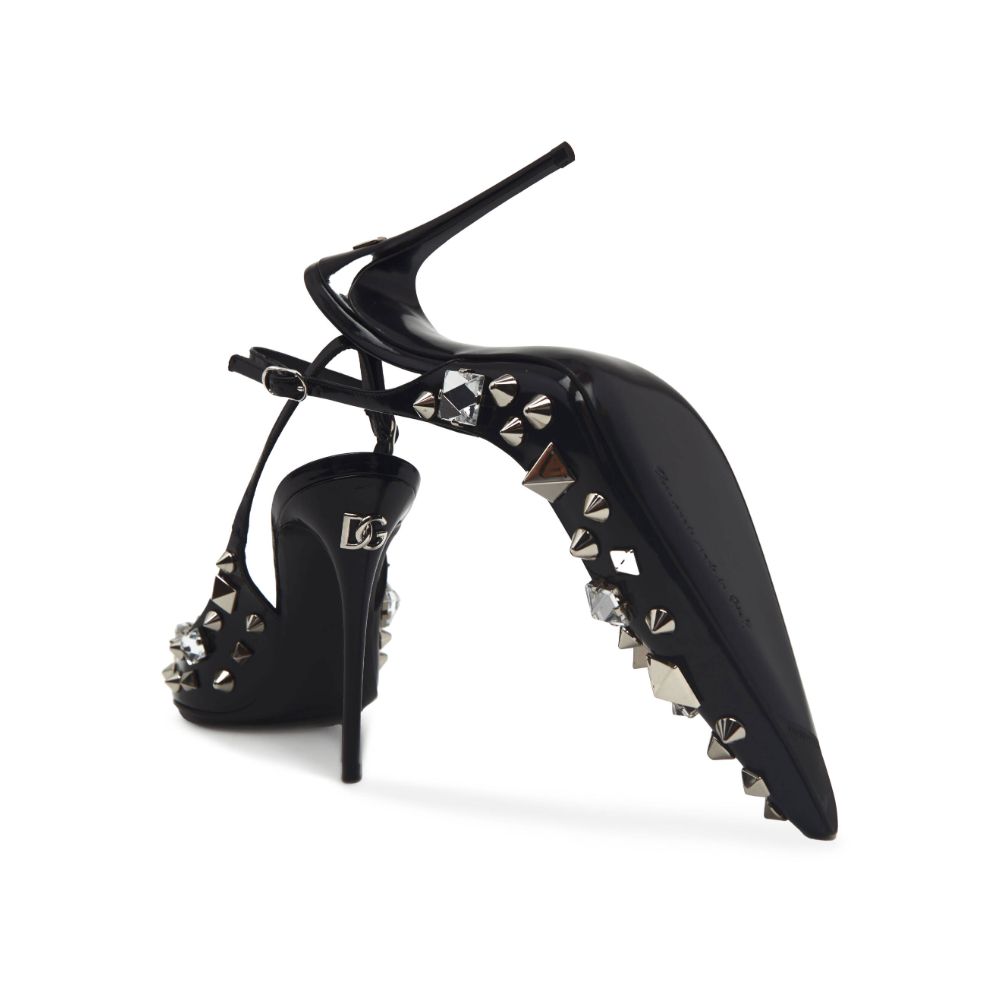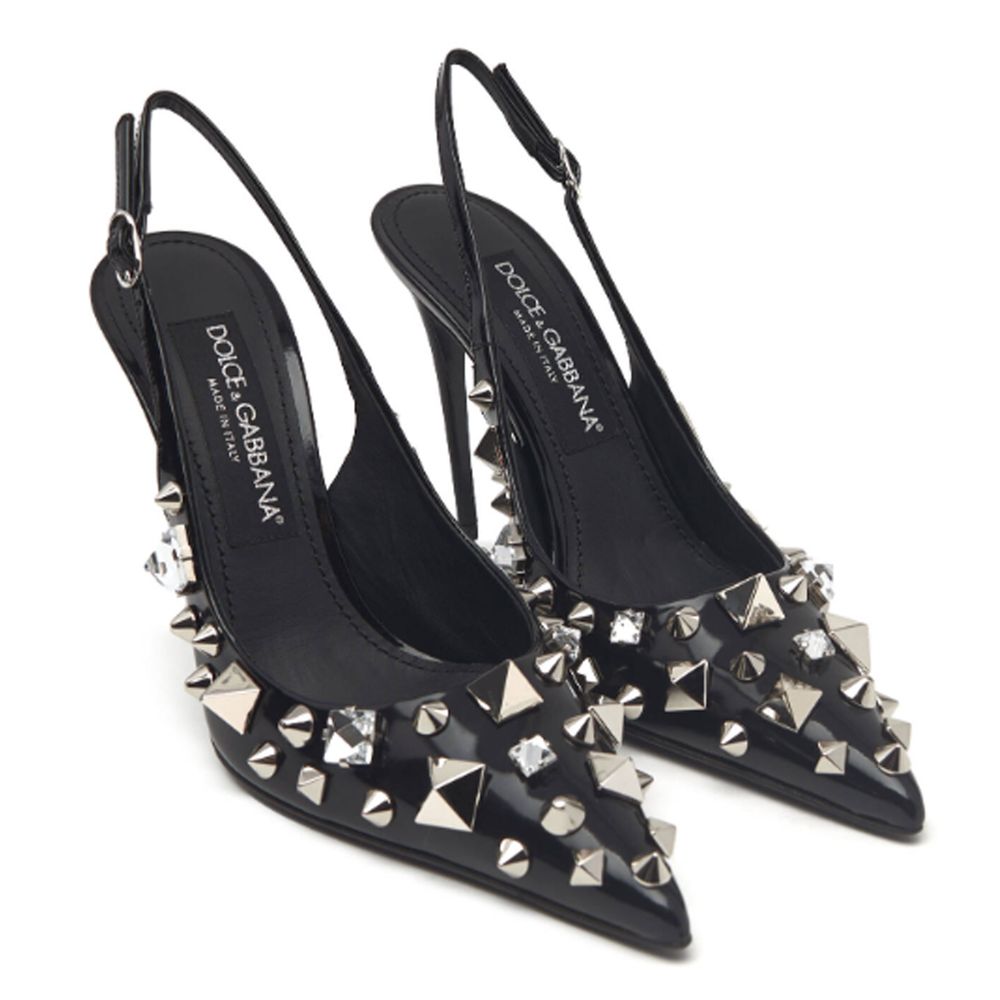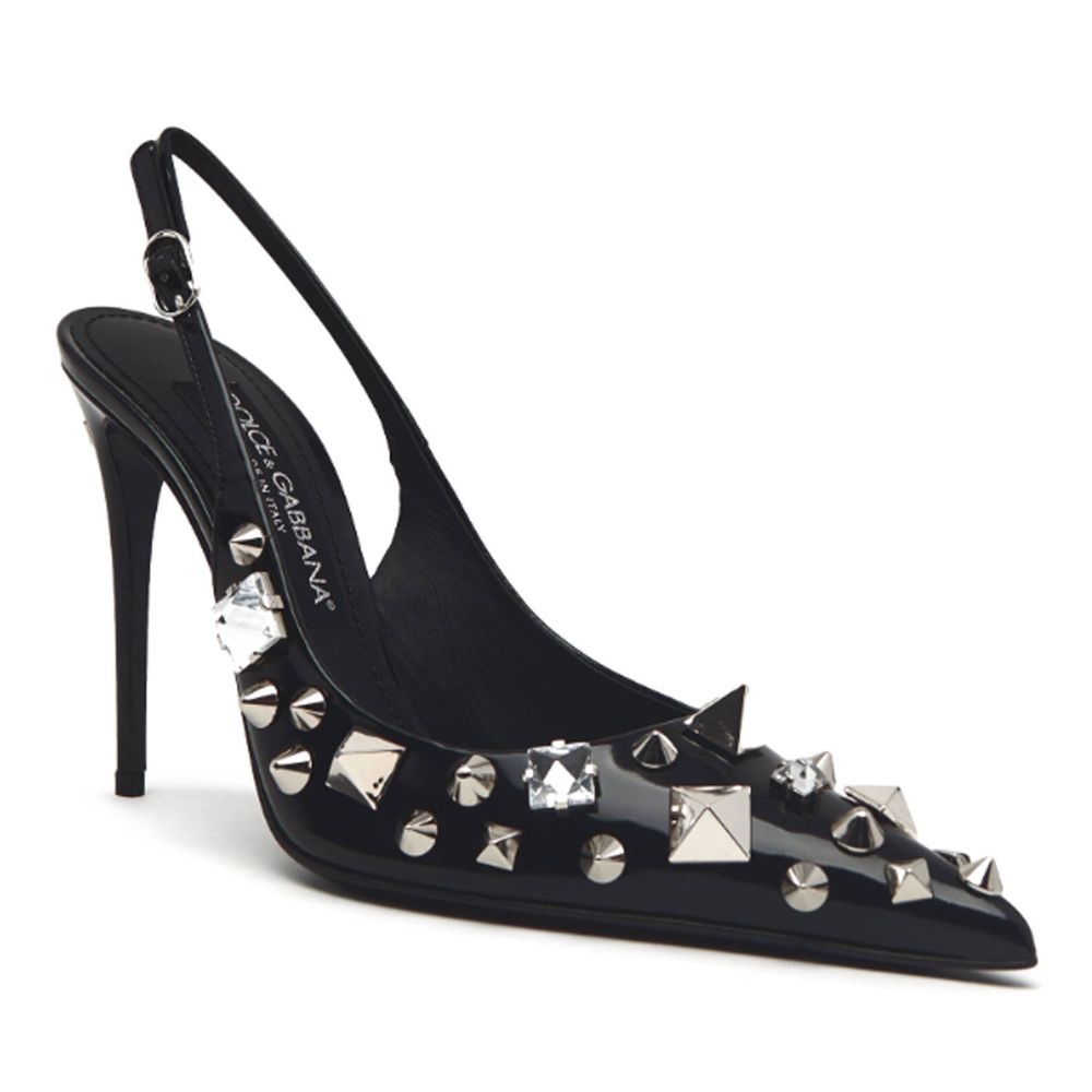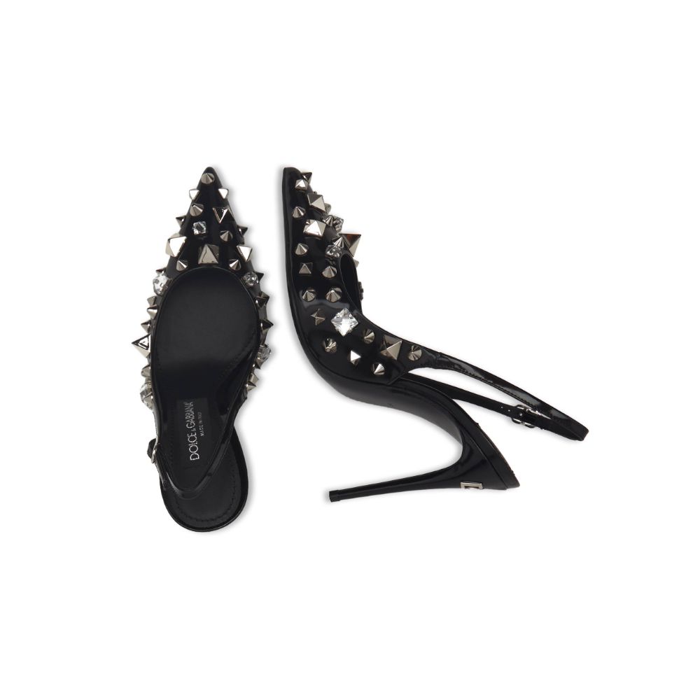 Dolce & Gabbana décolleté in black shiny calfskin with metal studs and glass crystals applied over the entire surface.