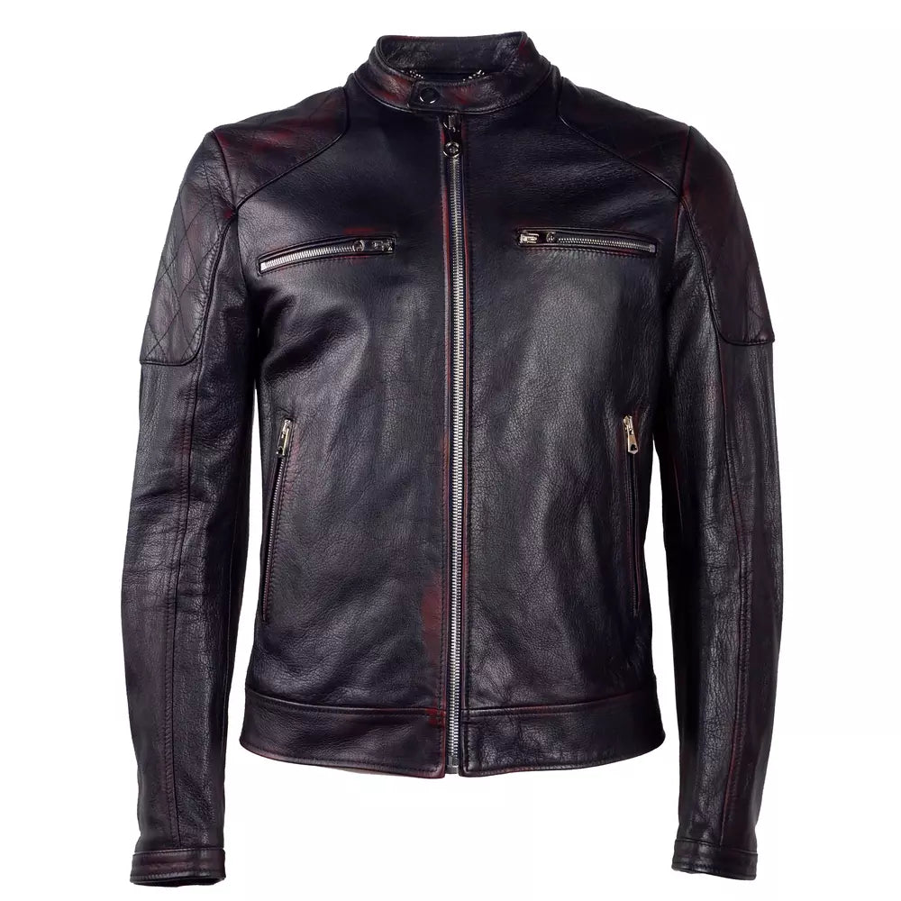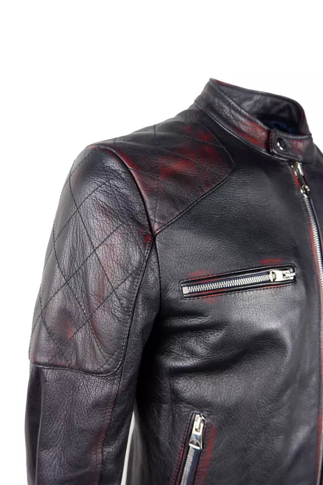Step out in style with this luxurious goatskin leather jacket, featuring a sleek black finish with subtle red hues. This Italian-crafted piece comes equipped with a four-pocket design, perfected with silver-colored zippers for a blend of timeless fashion and modern edge.