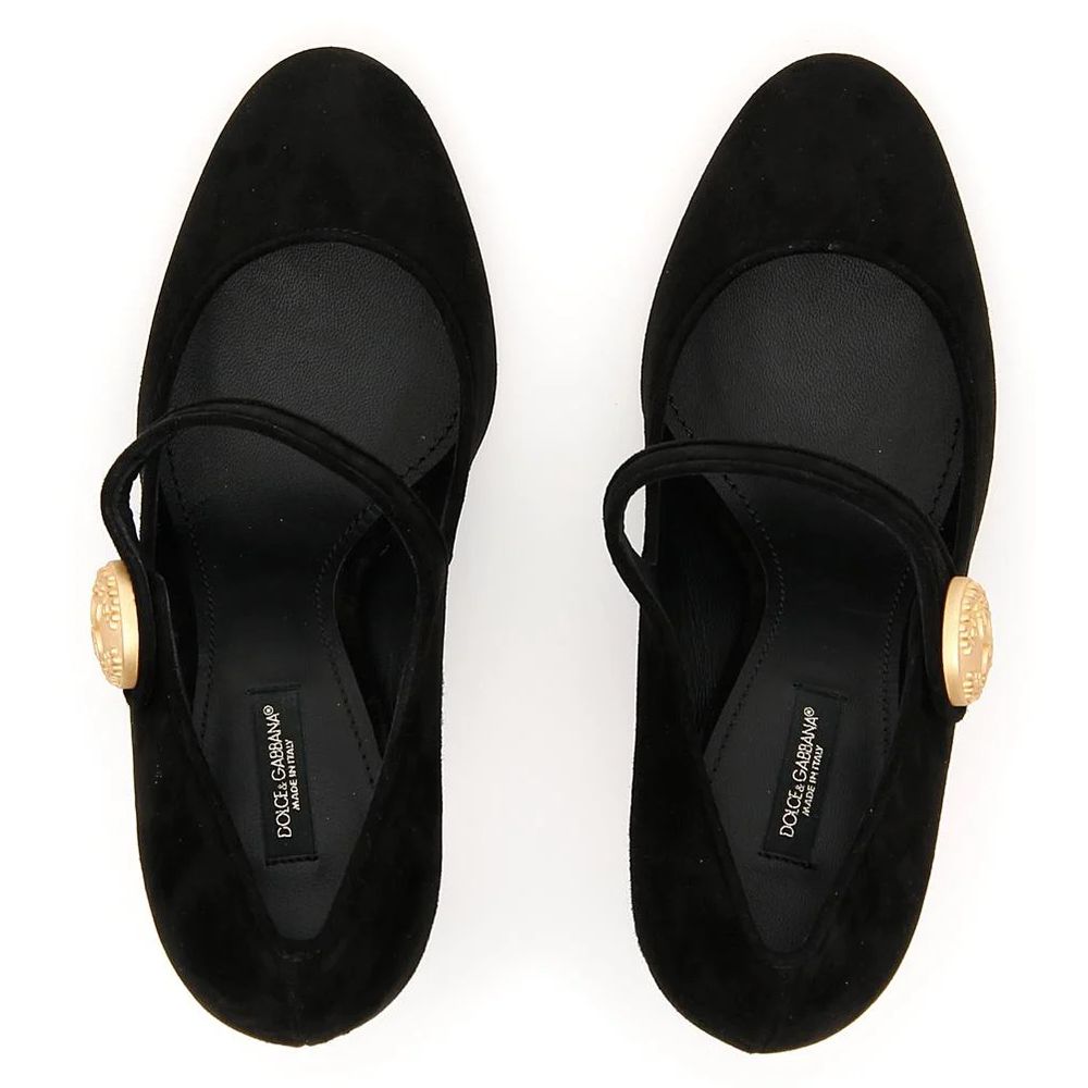 Dolce & Gabbana suede goatskin décolleté with logoed side button, leather-covered heel