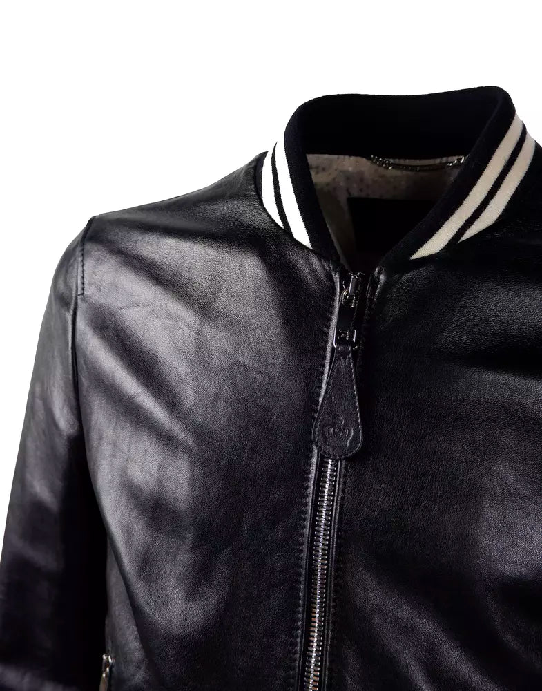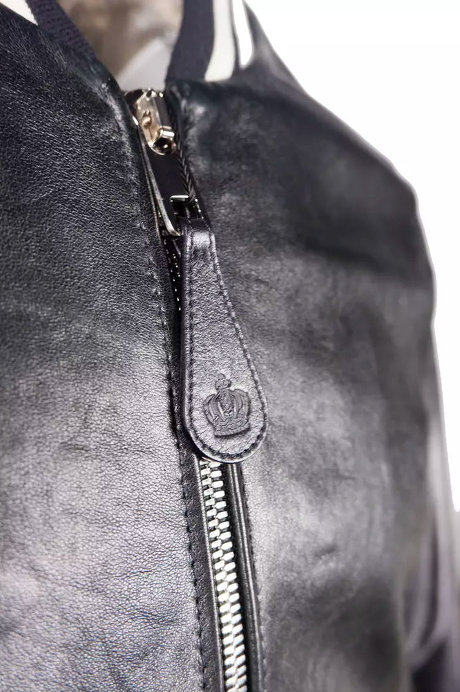 Experience timeless elegance and superior craftsmanship with our black lambskin leather jacket. This piece marries luxury with rugged charm, featuring a classic two-pocket design complemented by striking silver-colored zippers. Crafted with attention to detail, it’s an essential wardrobe piece that exudes sophistication and Italian flair.