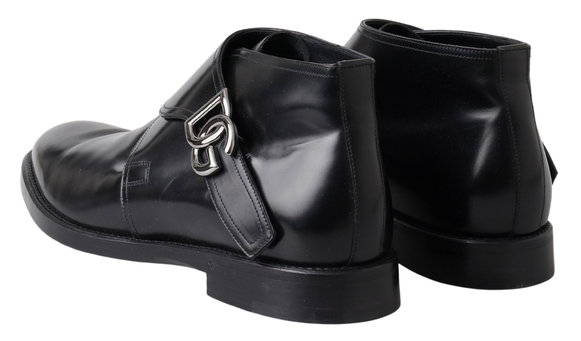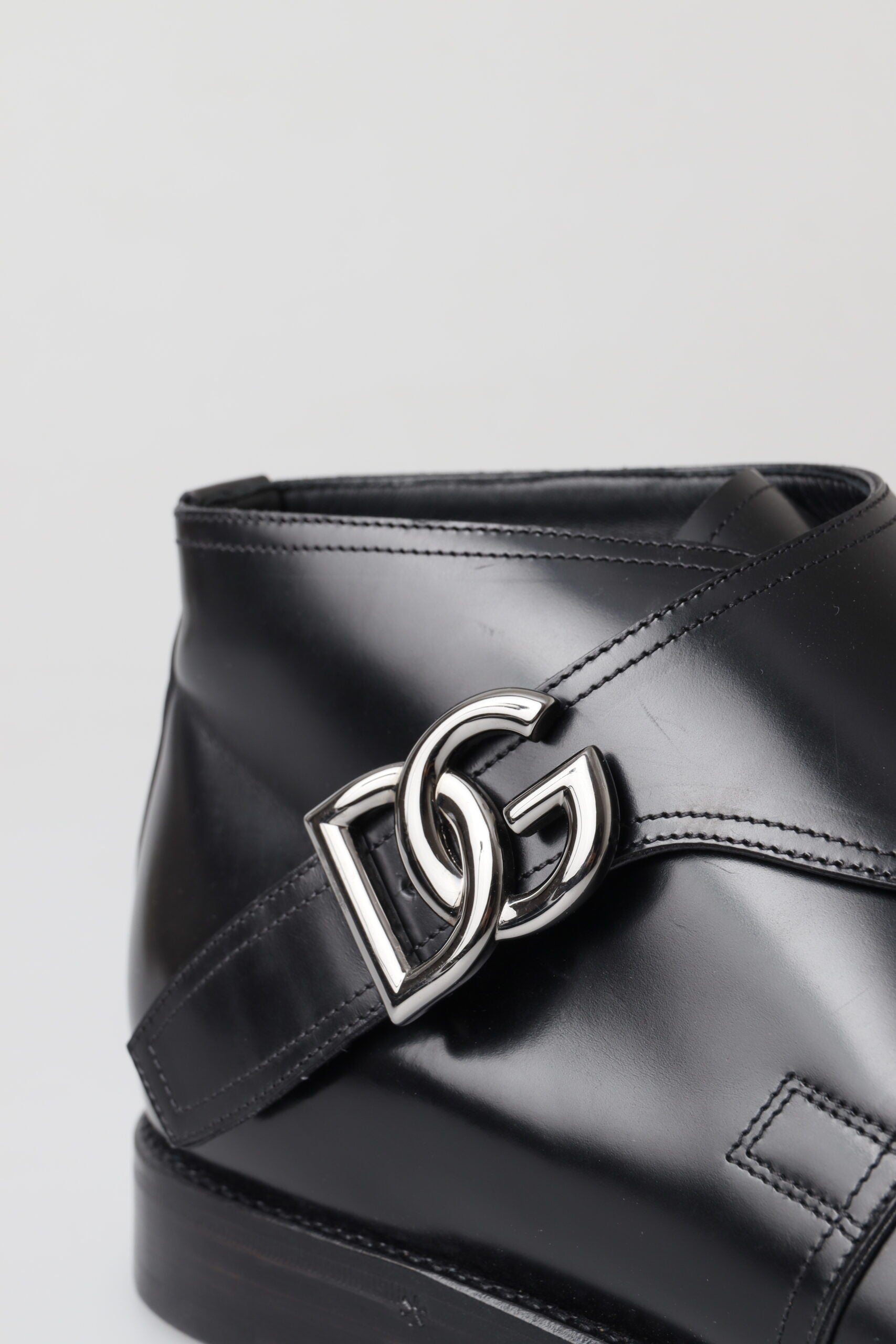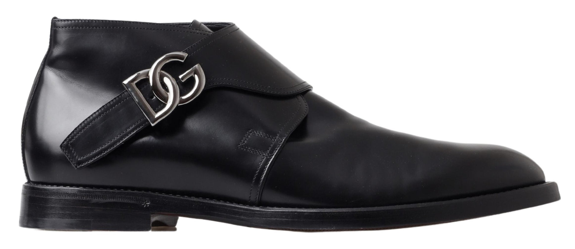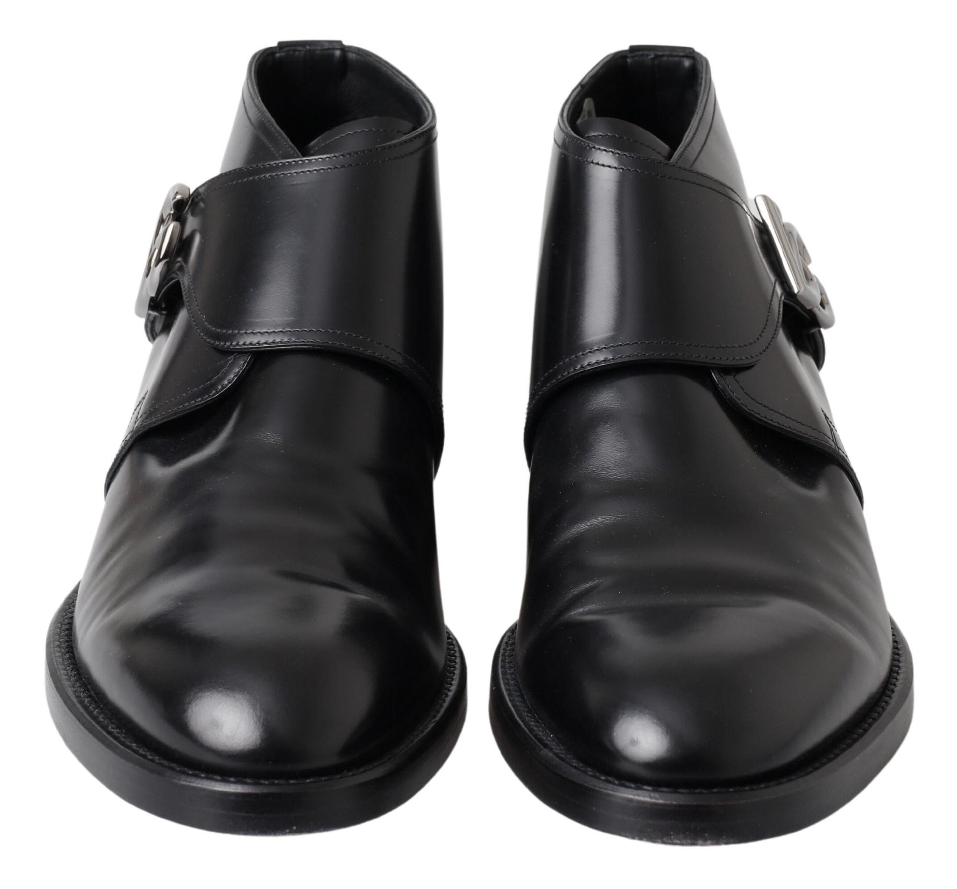 Step into sophistication with these gorgeous, brand new men’s leather monk strap shoes from the renowned Dolce & Gabbana collection. Crafted in Italy with impeccable attention to detail, these shoes boast a sleek black color and an elegant silhouette, perfect for any formal occasion. Complete with logo details and a luxurious leather sole, they’re the quintessence of style and quality.
