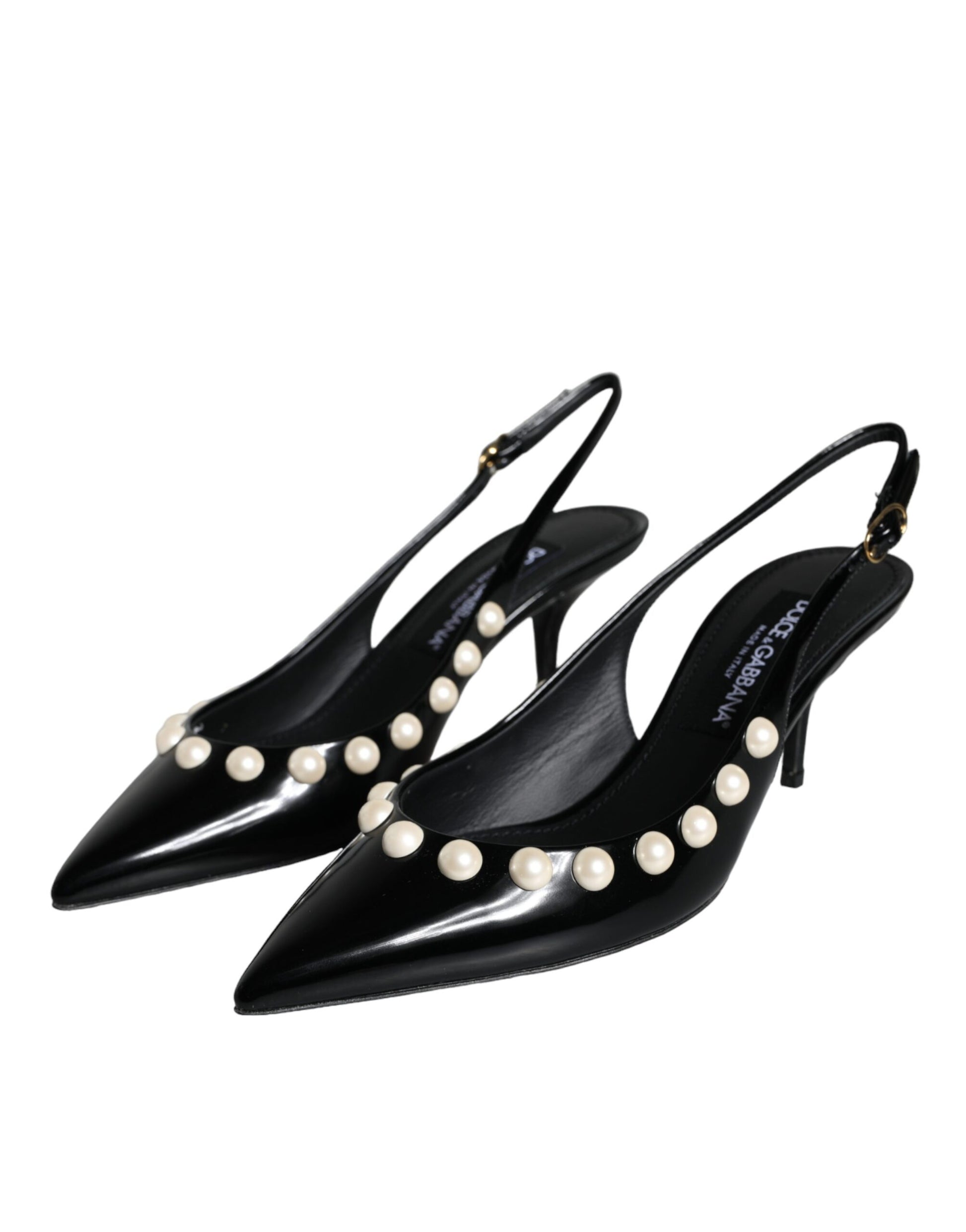 Gorgeous brand new with tags, 100% Authentic Dolce & Gabbana leather embellished slingback heels shoes.