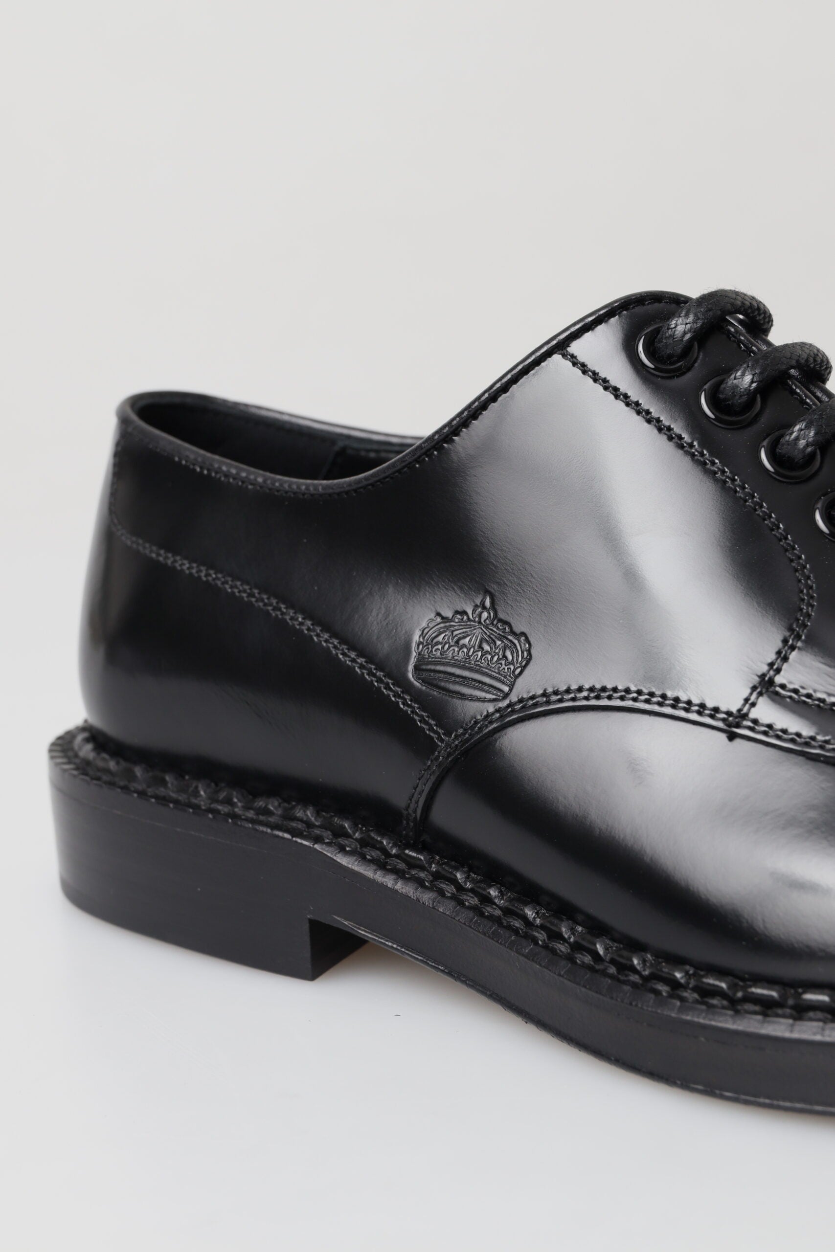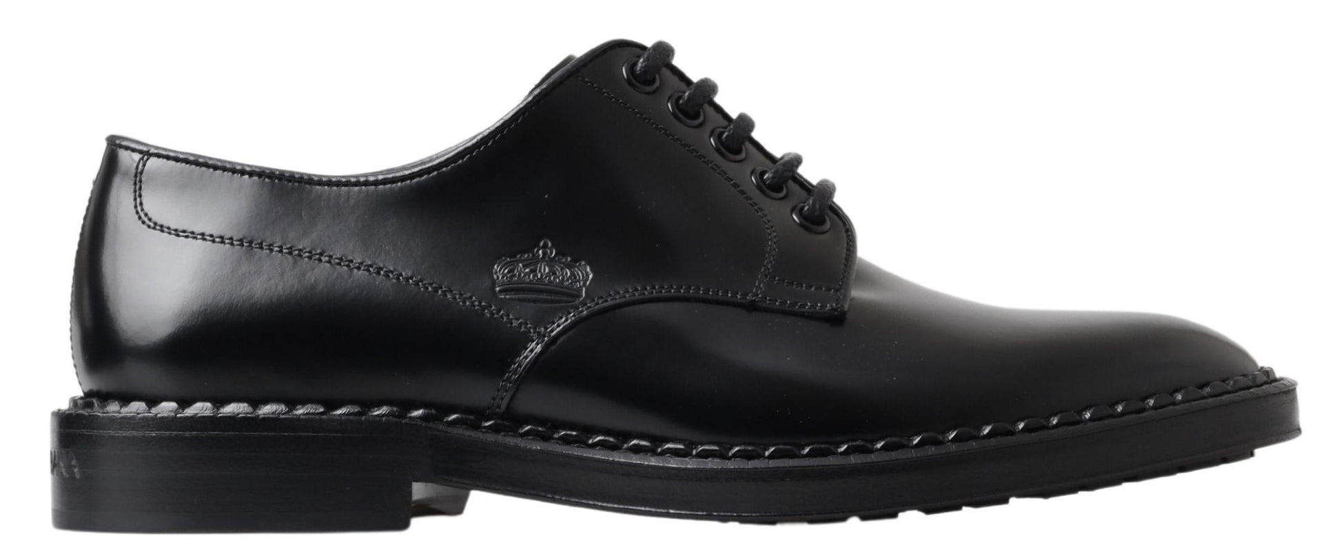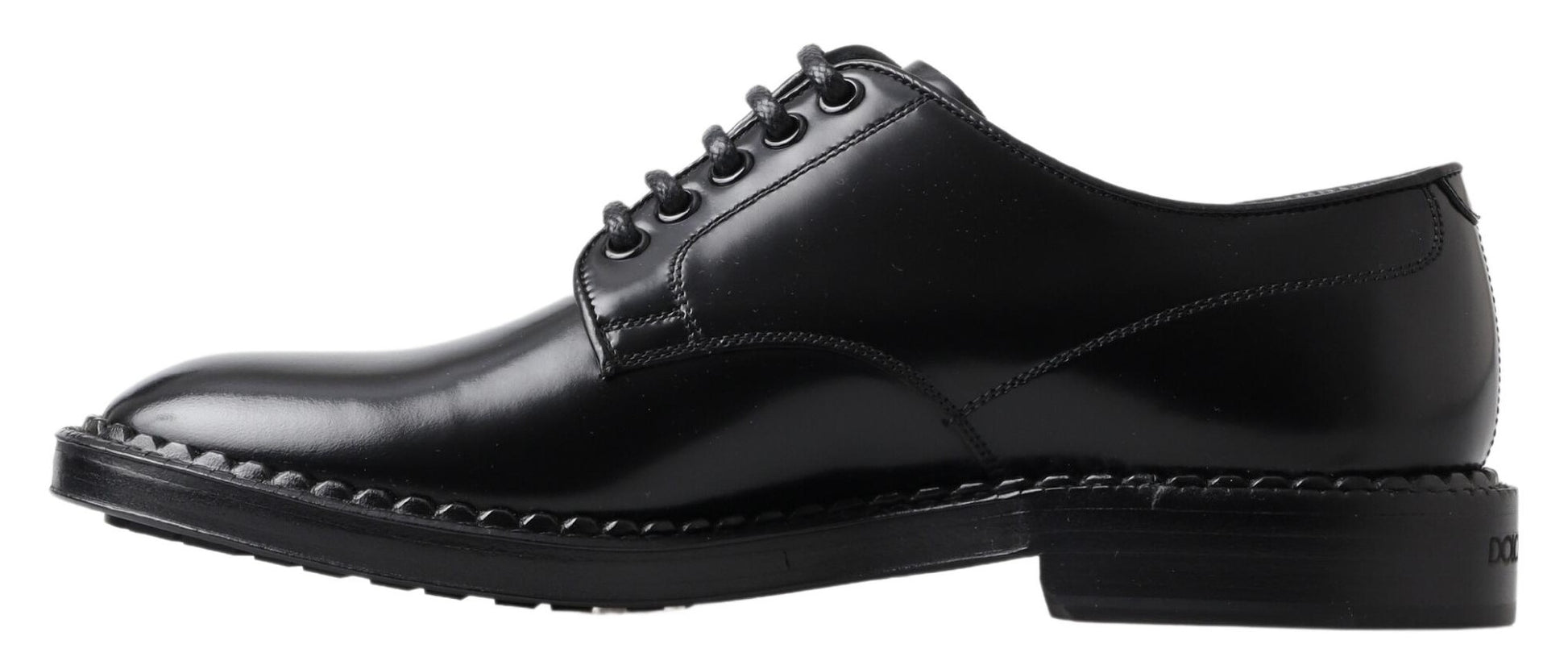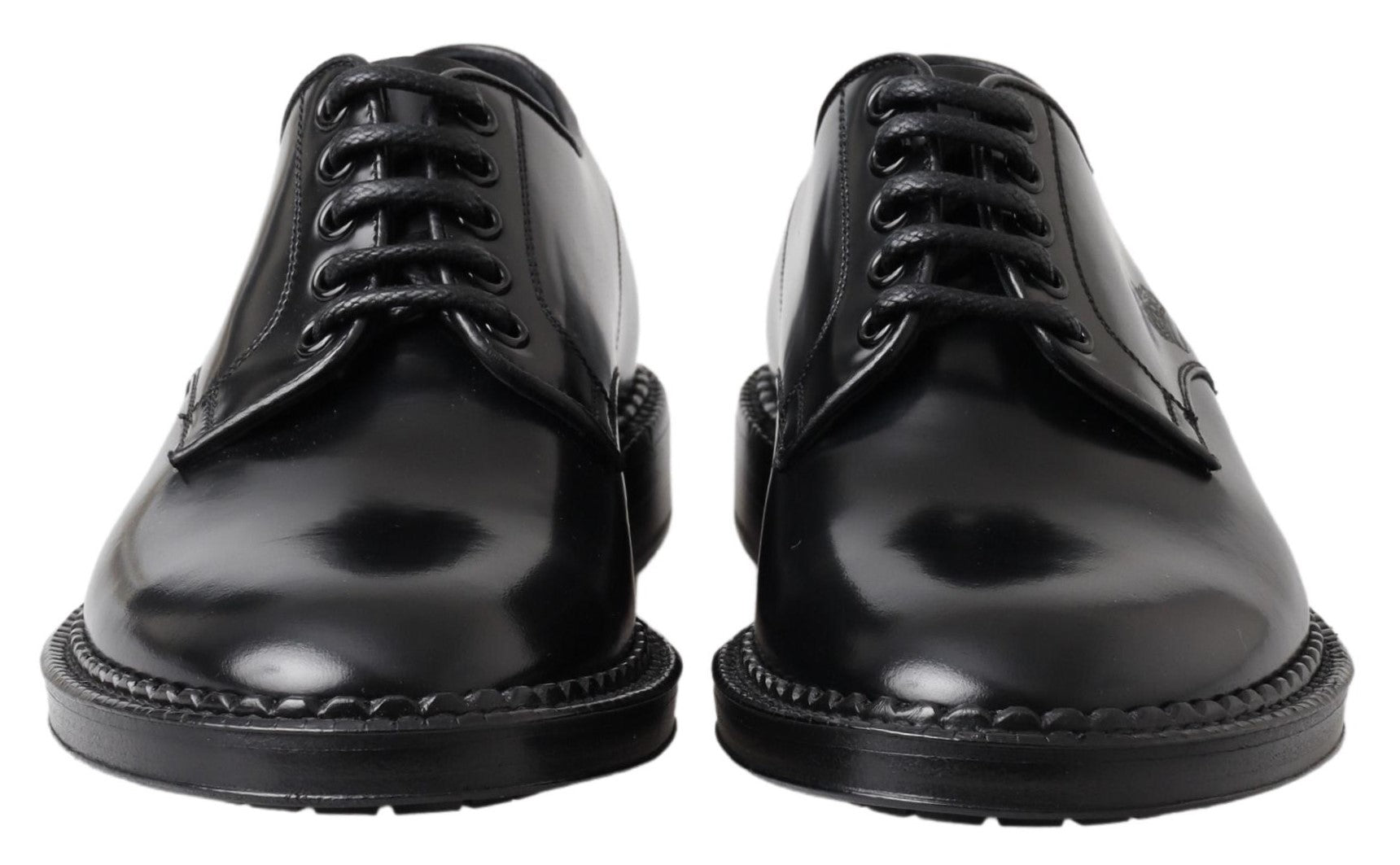 Step into distinguished charm with these exquisite Derby shoes, a must-have for any gentleman’s closet. Masterfully crafted by the iconic Dolce & Gabbana, these luxurious black leather shoes encapsulate sophistication and style. Made in Italy, they’re not only steeped in premium quality but are also a timeless addition to your formal attire. With a sleek design complemented by subtle logo details and a classy leather sole, these shoes are perfect for those who appreciate the finer things in life.