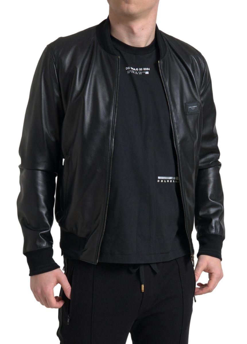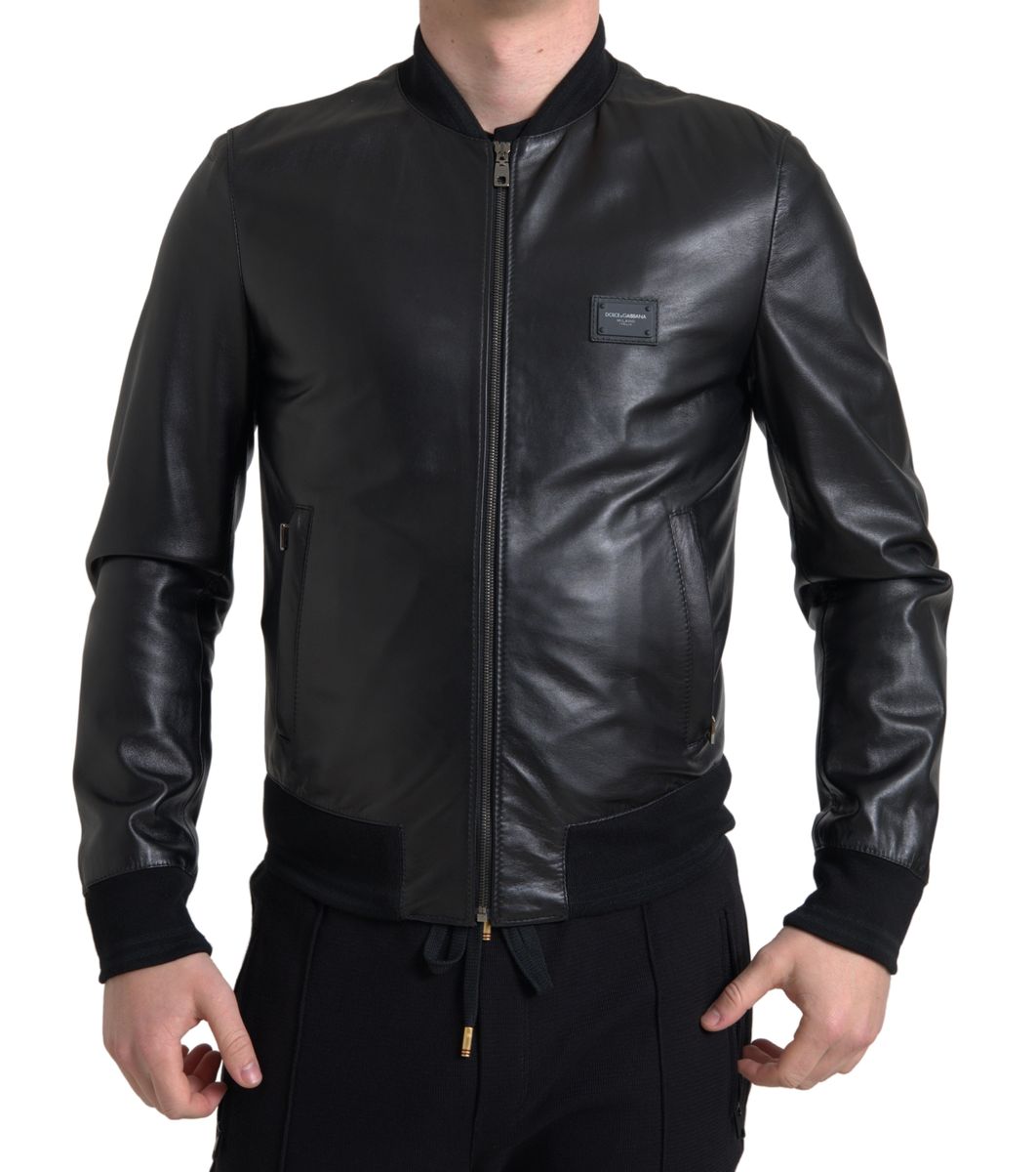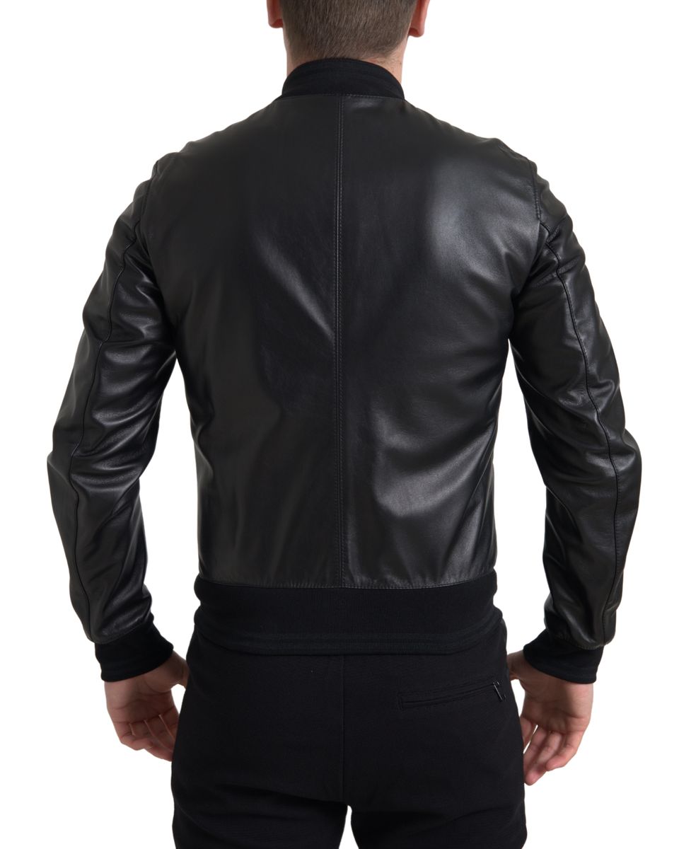Indulge in the epitome of luxury with this 100% Authentic black leather bomber jacket from Dolce & Gabbana. Perfect for any discerning gentleman looking to add a touch of elegance and high fashion to his wardrobe. This jacket is not only a style statement but also a testament to the brand’s commitment to quality with its sumptuous lambskin material and meticulous Italian craftsmanship.