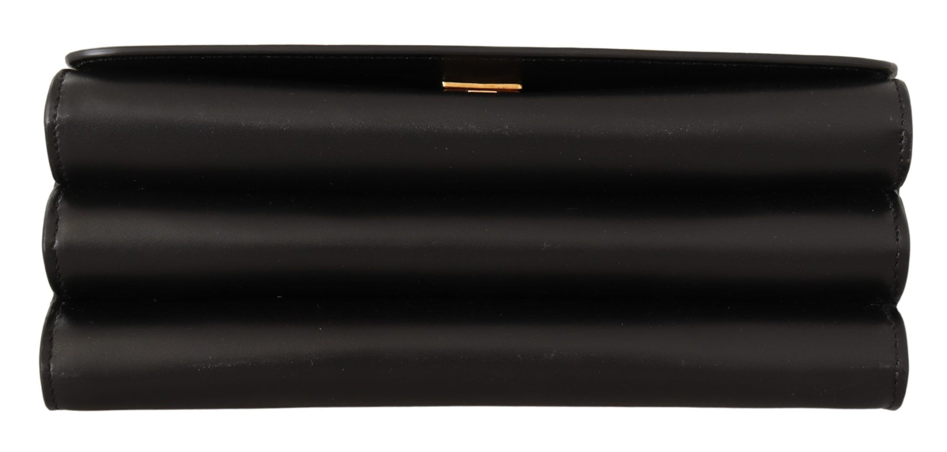 Indulge in the epitome of sophistication with this stunning shoulder bag from the distinguished house of Dolce & Gabbana. Perfectly crafted for the fashion-savvy woman, this black leather purse is accentuated with luxe gold metal hardware, adding an opulent touch to your ensemble. The practical magnet flap closure opens to reveal a plush black leather interior, ensuring all your essentials are carried in style. Whether draped over the shoulder or worn across the body, the adjustable chain strap with a leather inlay promises comfort and versatility. Make a statement with this Italian-made masterpiece that seamlessly blends functionality with high-end fashion.
