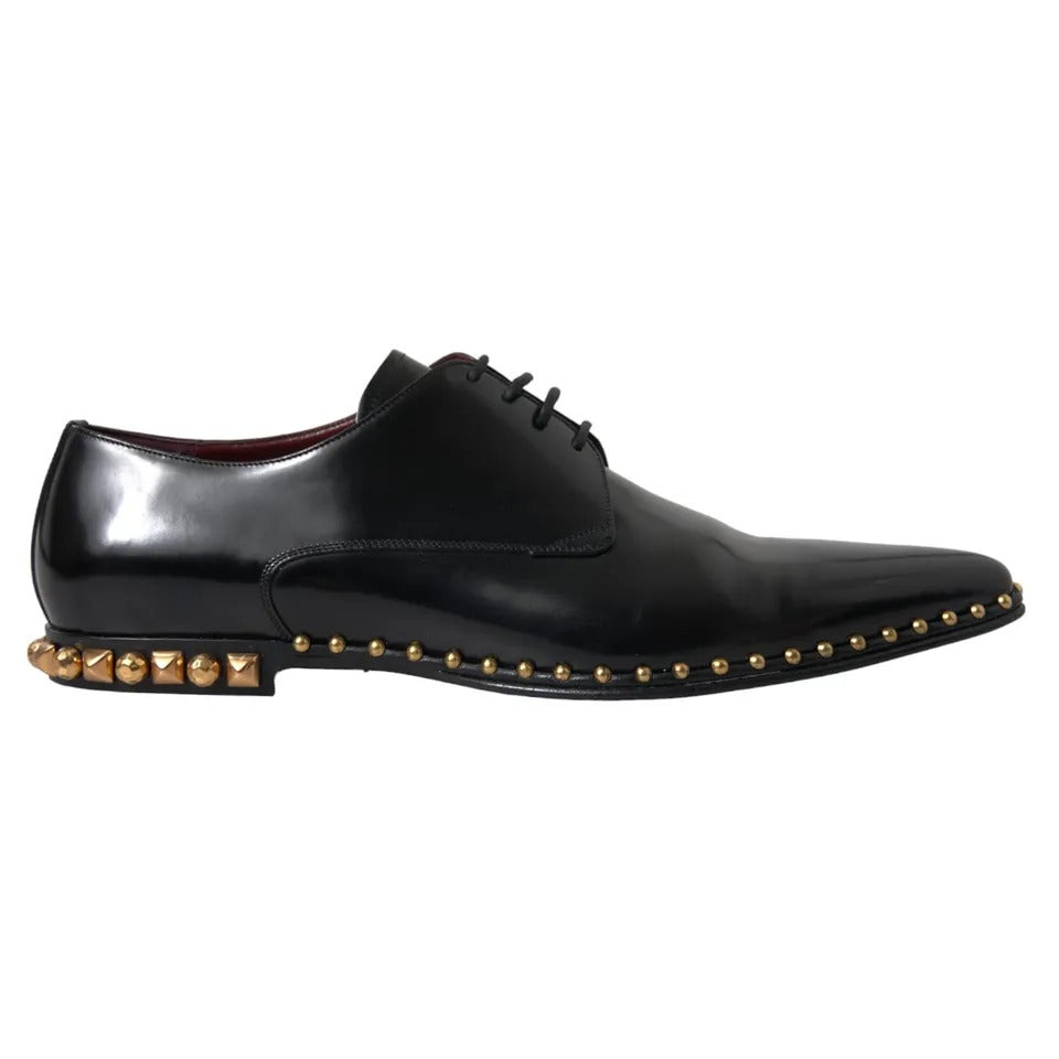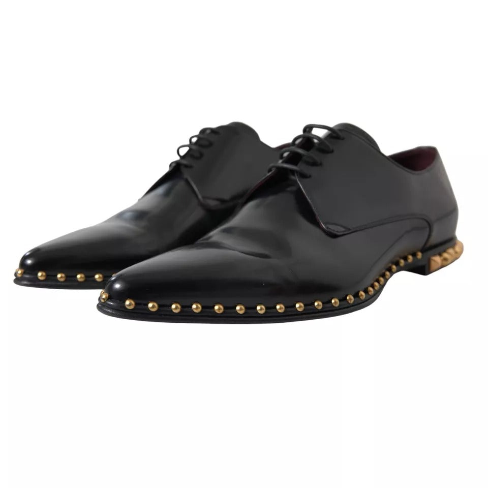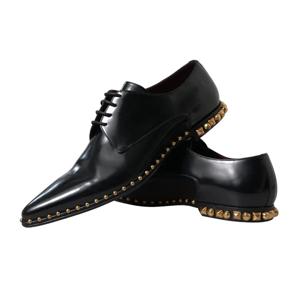 Gorgeous preowned with tags, 100% Authentic Dolce & Gabbana mens leather lace up derby dress shoes with gold studs.