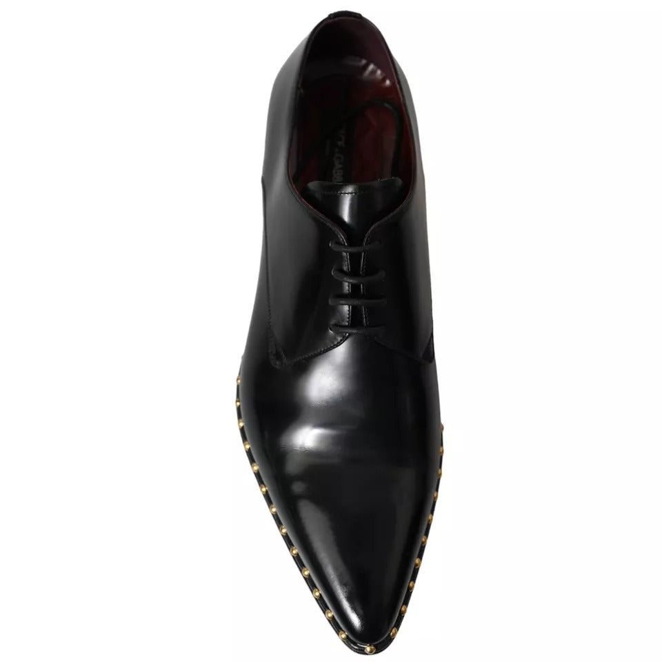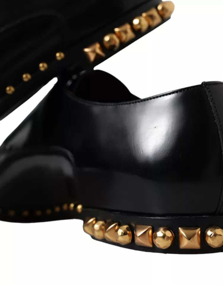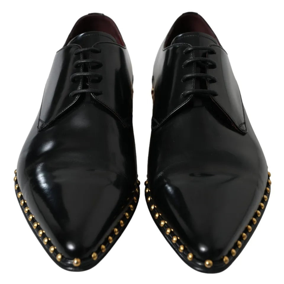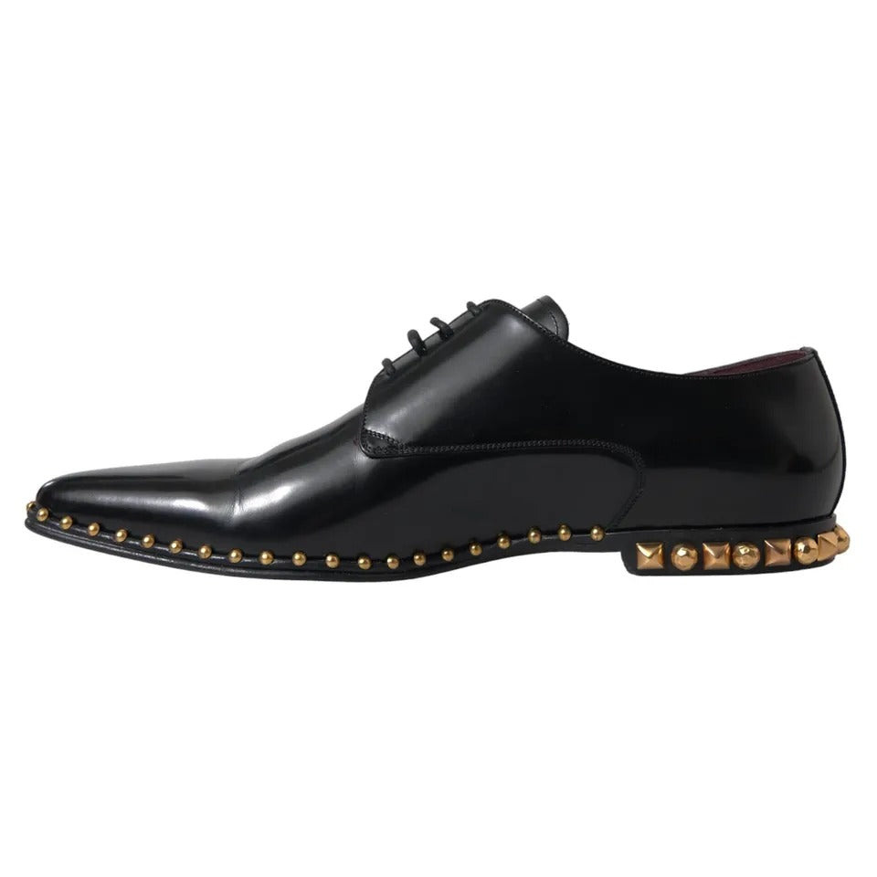 Gorgeous preowned with tags, 100% Authentic Dolce & Gabbana mens leather lace up derby dress shoes with gold studs.