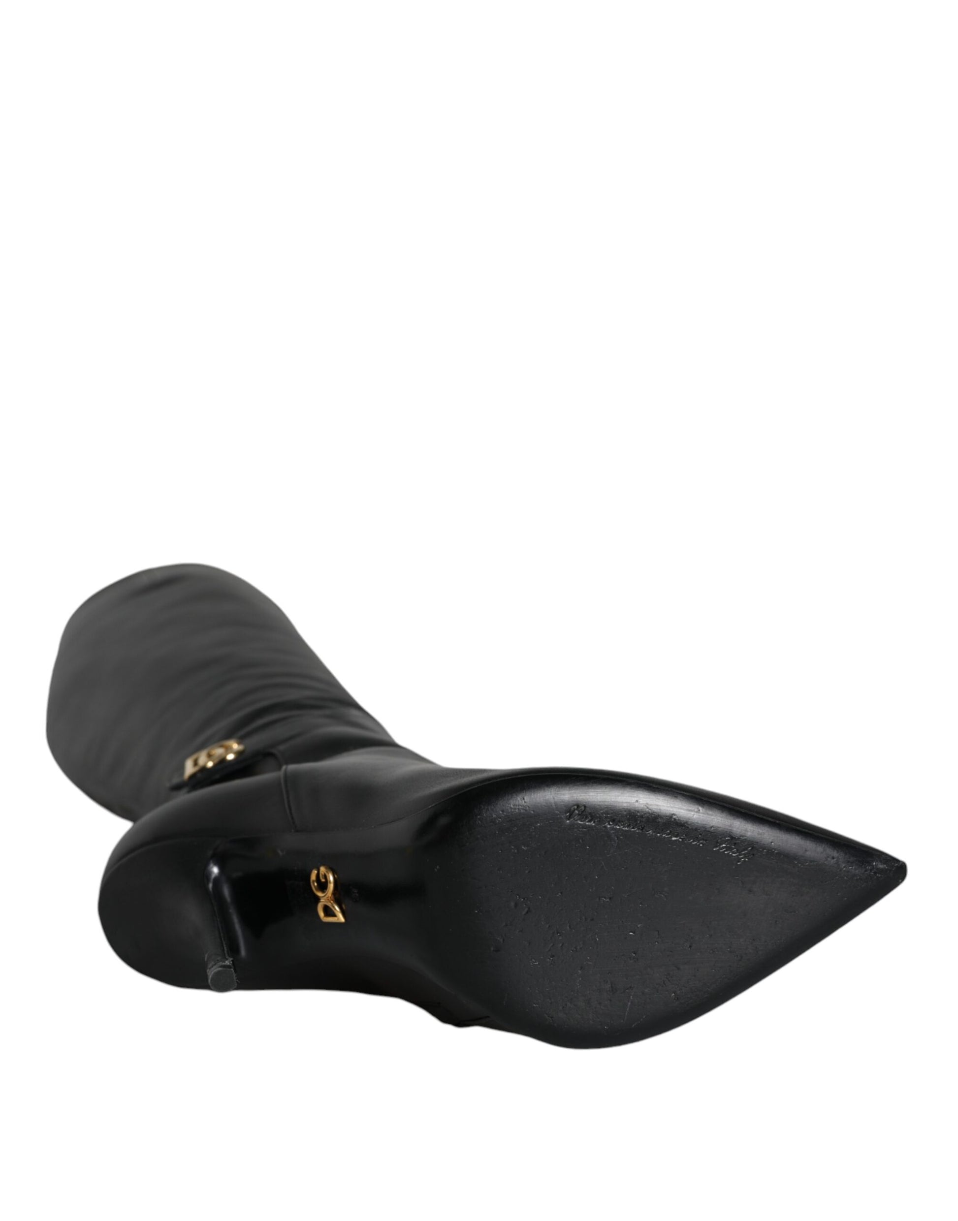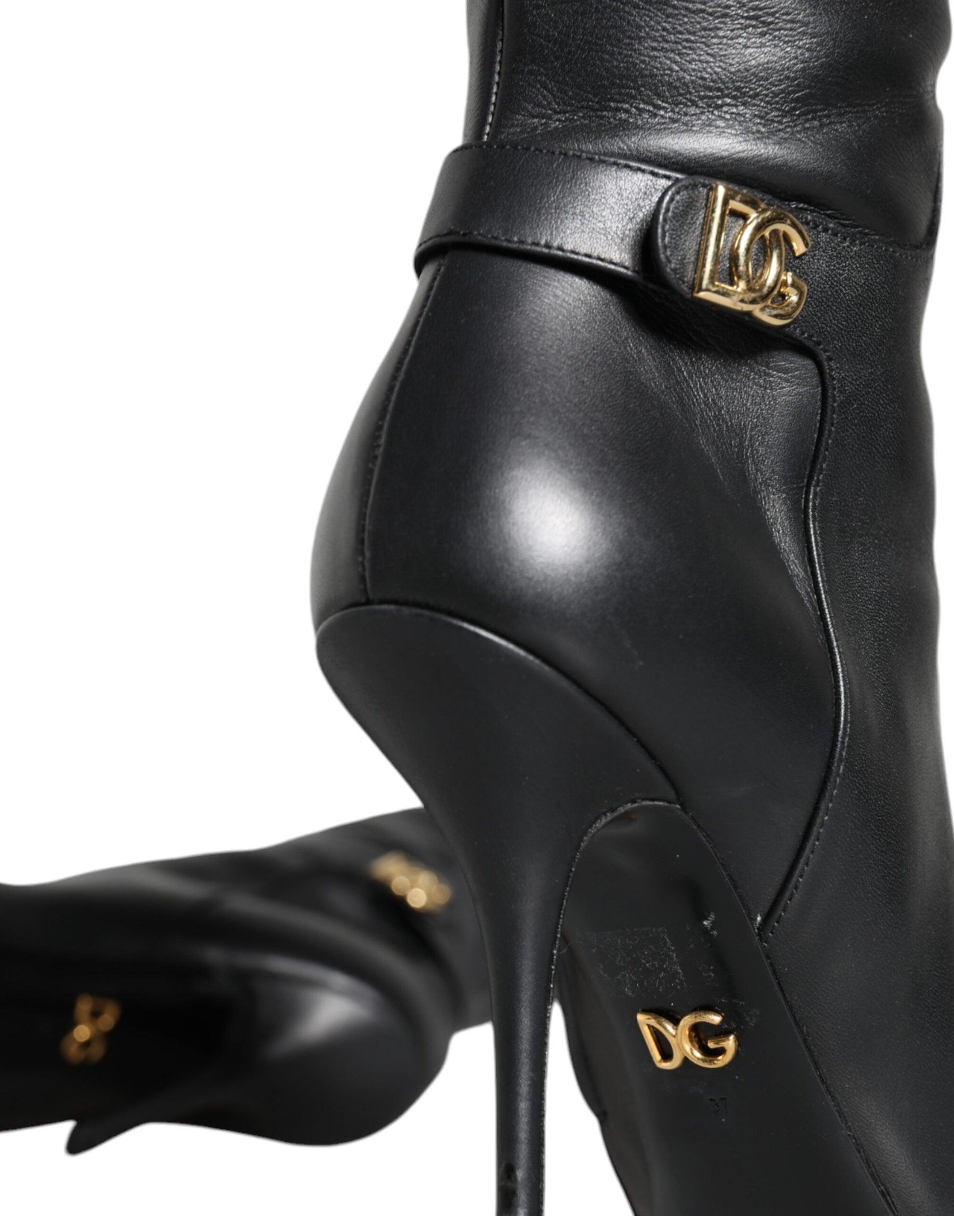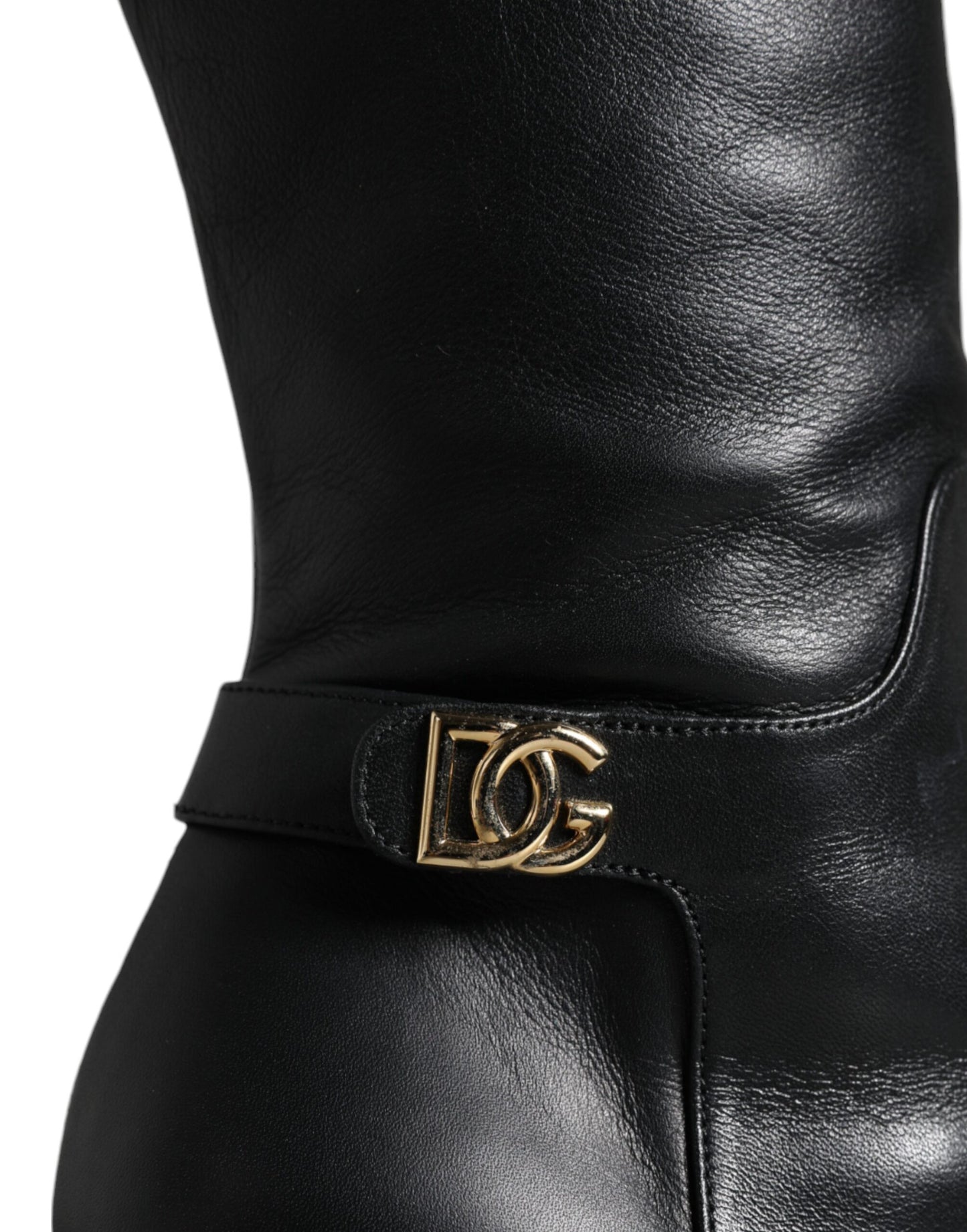 Gorgeous brand new with tags, 100% Authentic Dolce & Gabbana heeled boots. Resting on a black leather sole, this model is enriched with a strap fastened with a gold-tone DG logo.