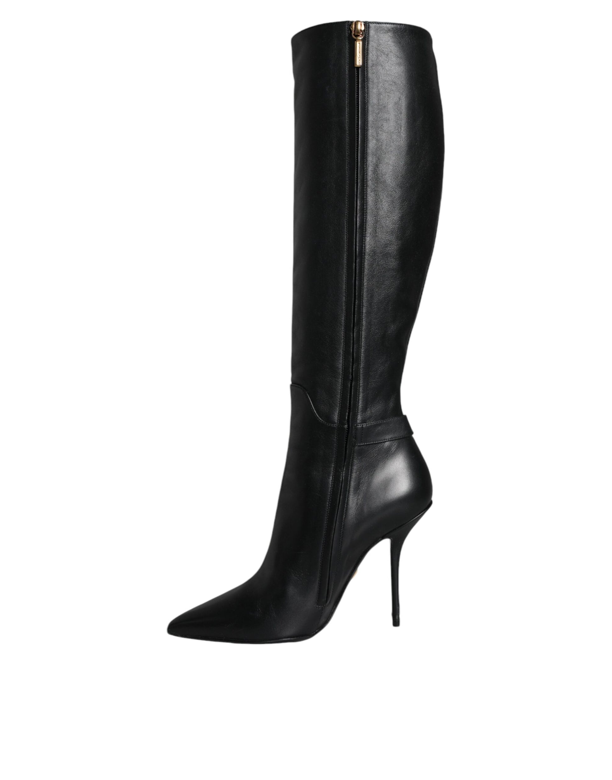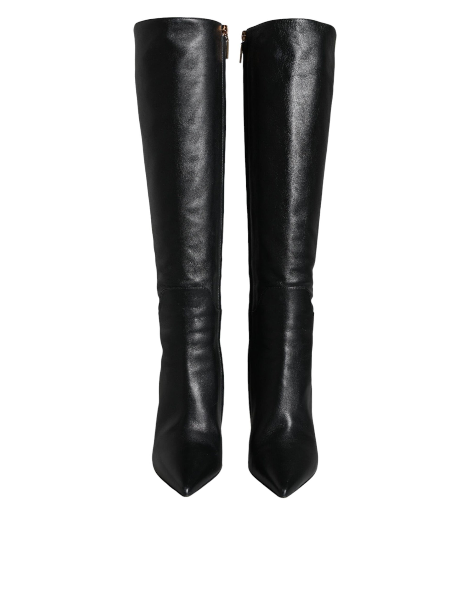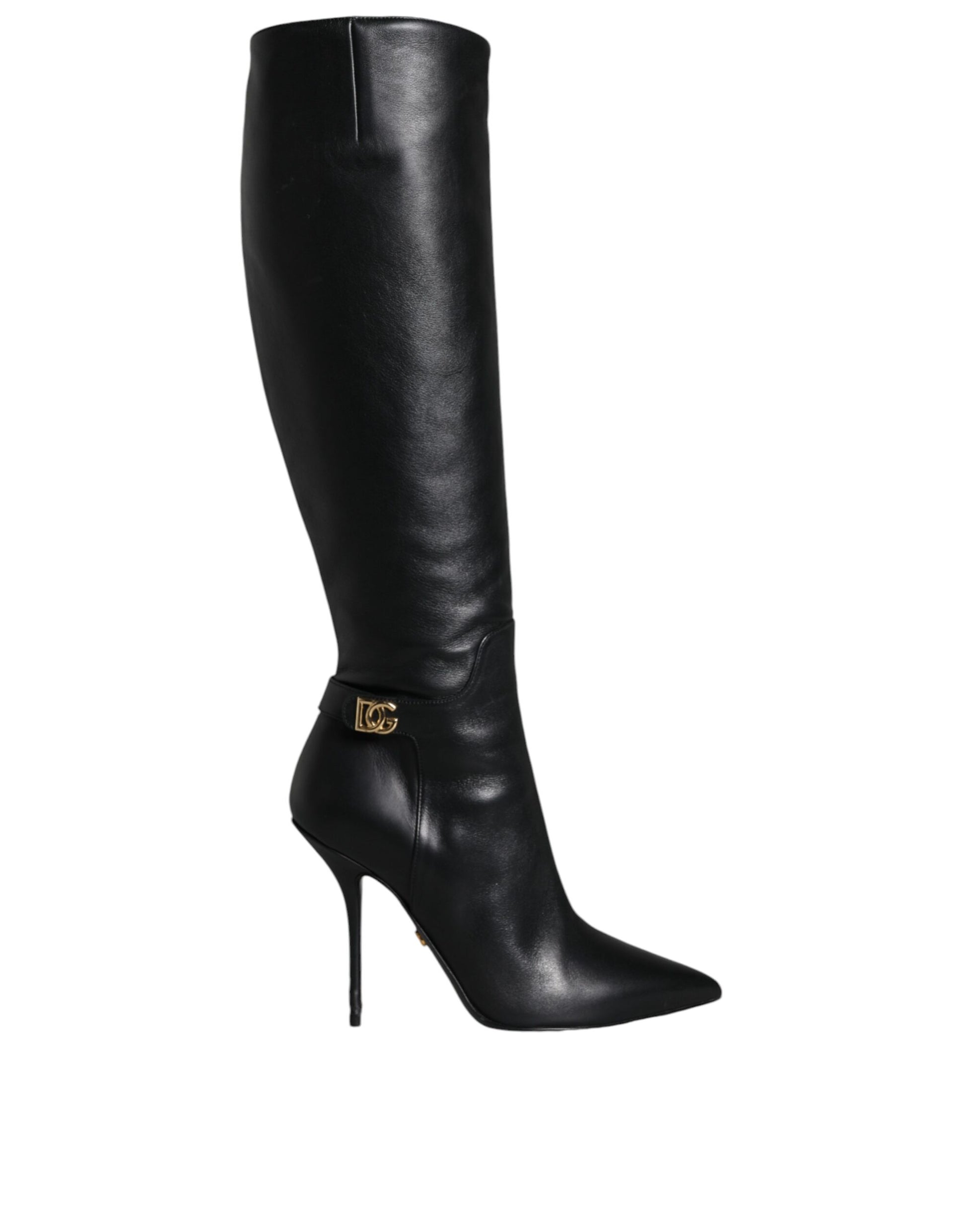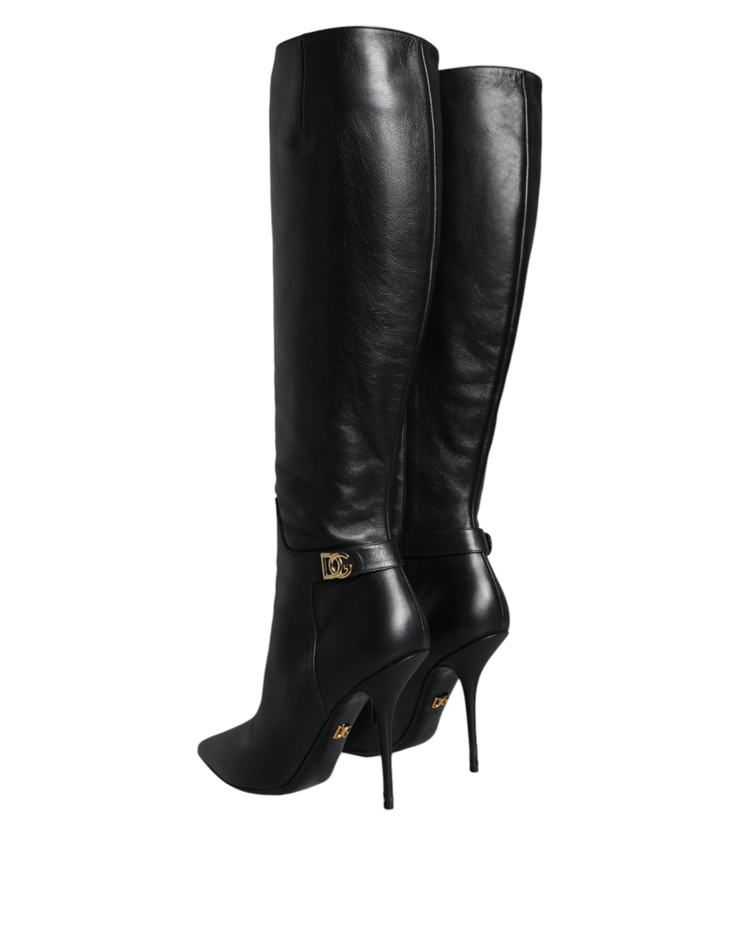 Gorgeous brand new with tags, 100% Authentic Dolce & Gabbana heeled boots. Resting on a black leather sole, this model is enriched with a strap fastened with a gold-tone DG logo.