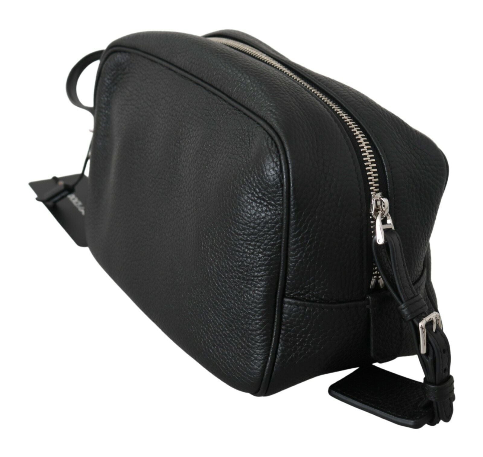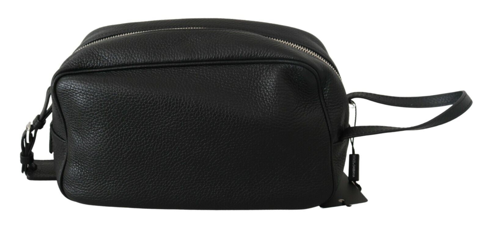 Indulge in the epitome of sophistication with this sleek black leather wristlet clutch bag from the renowned Dolce & Gabbana. This exquisite accessory is not only a statement of style but also a hallmark of quality and luxury, perfect for the discerning gentleman. With its practical wristlet strap, it offers the utmost convenience for carrying your essentials.