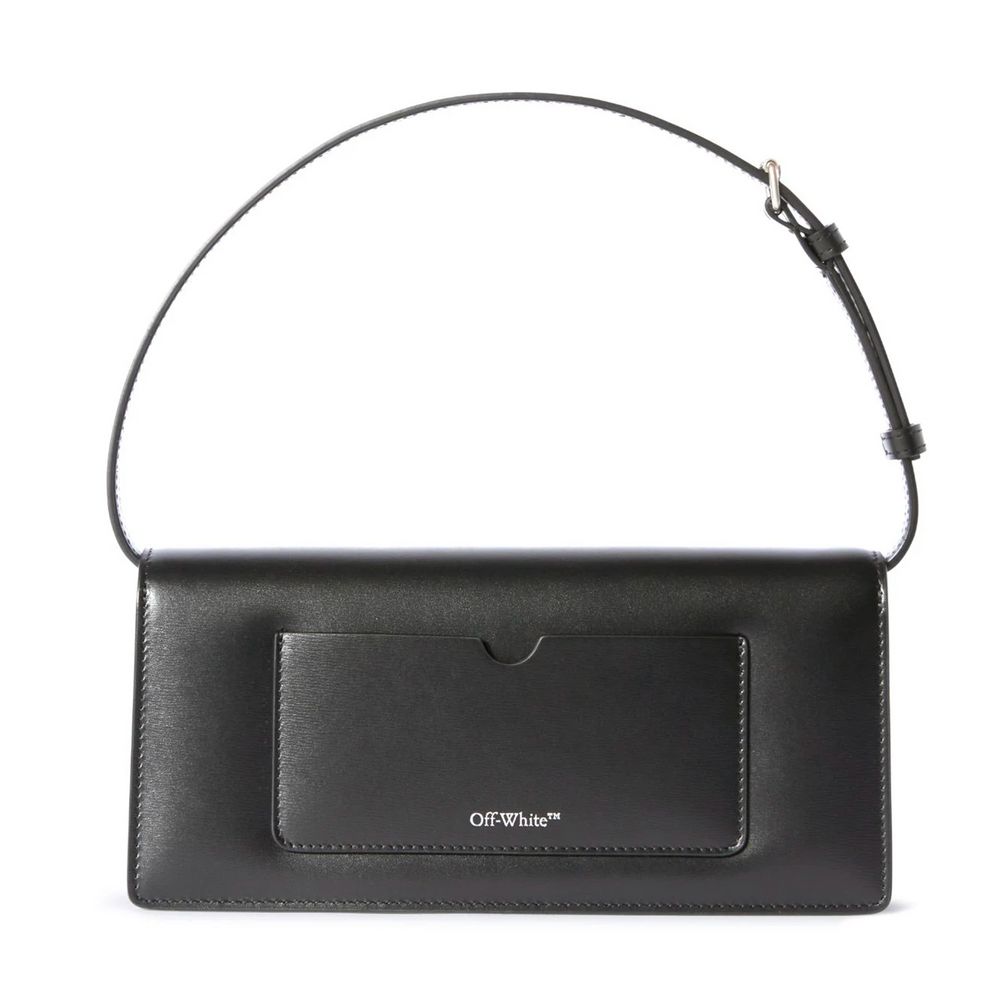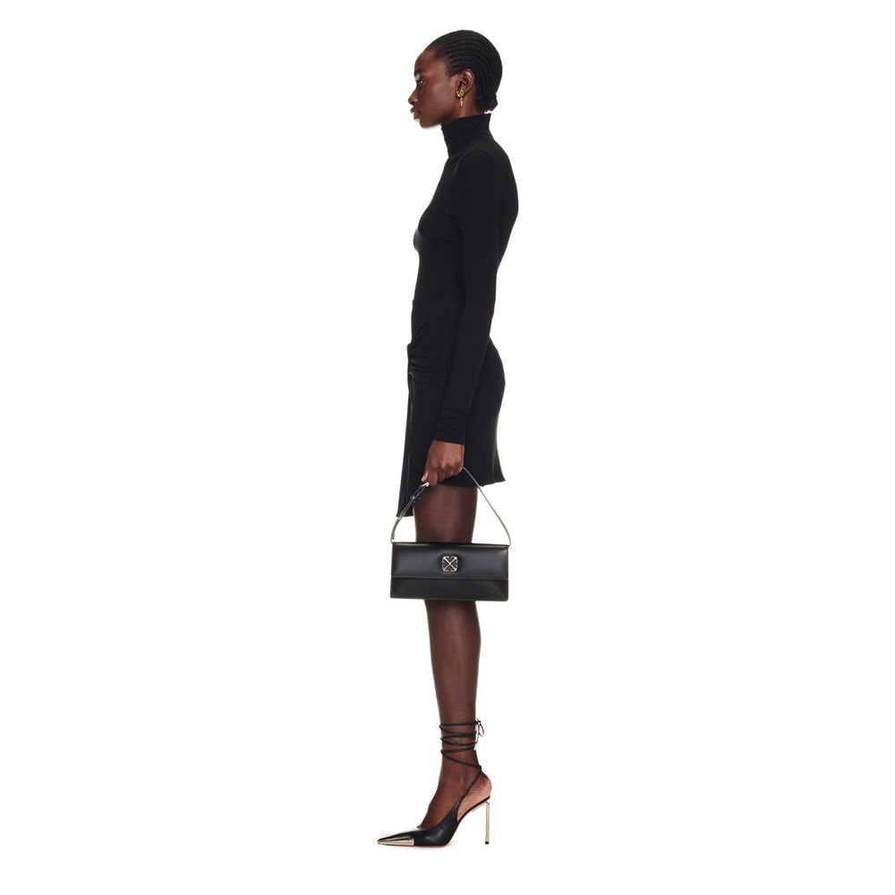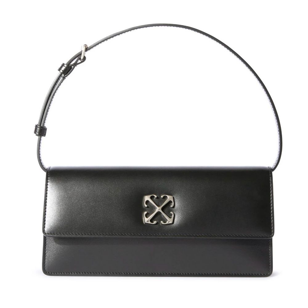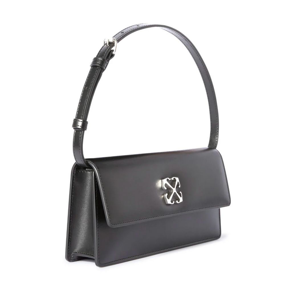 Off-White Jitney 1 shoulder bag, silver metal details, including an Arrow pattern plaque. It features a single handle. The accessory is made in Italy from 100% calfskin leather. 26x14x7 cm