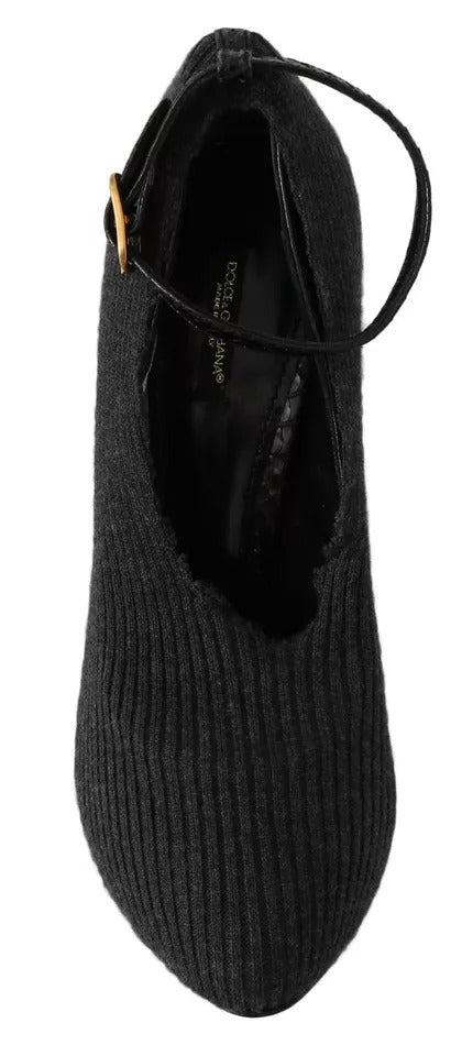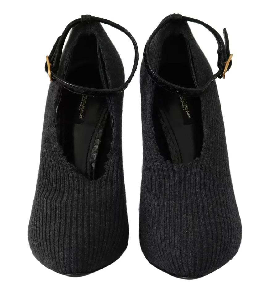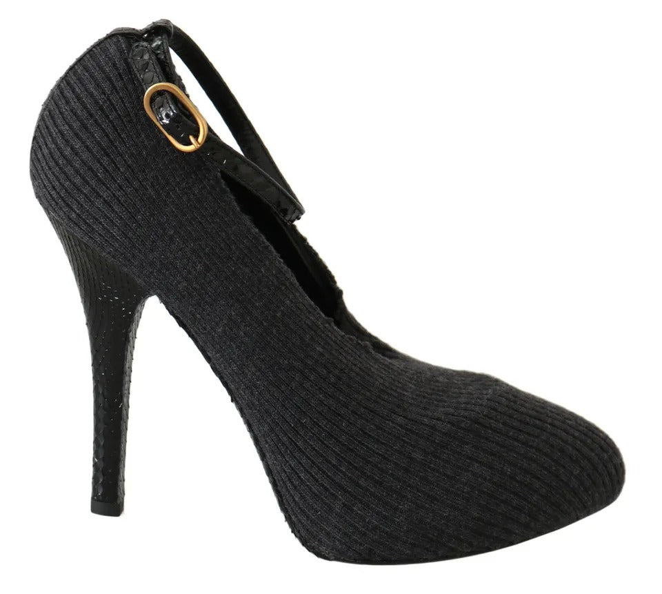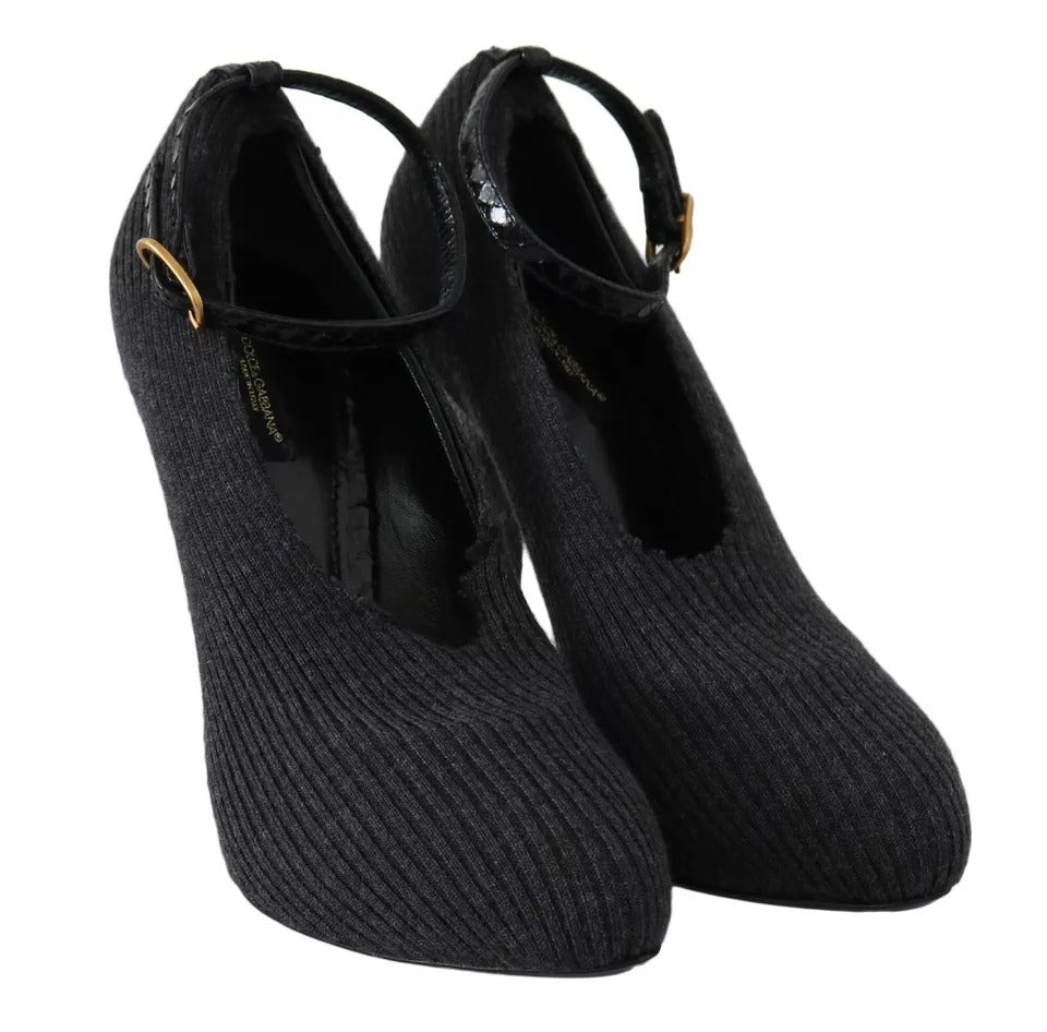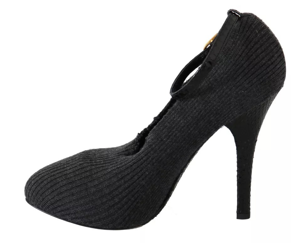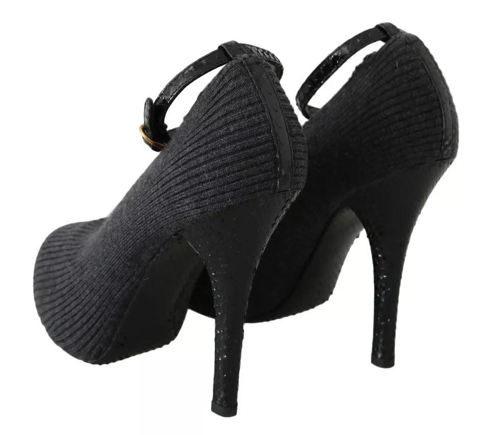 Black Leather Heels Fabric Socks Pumps Shoes