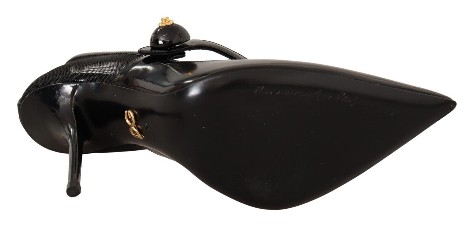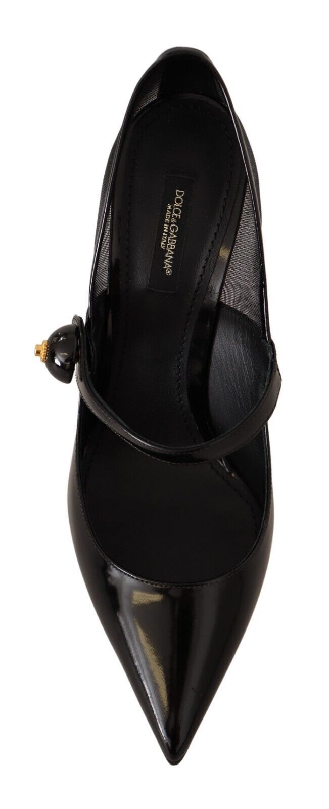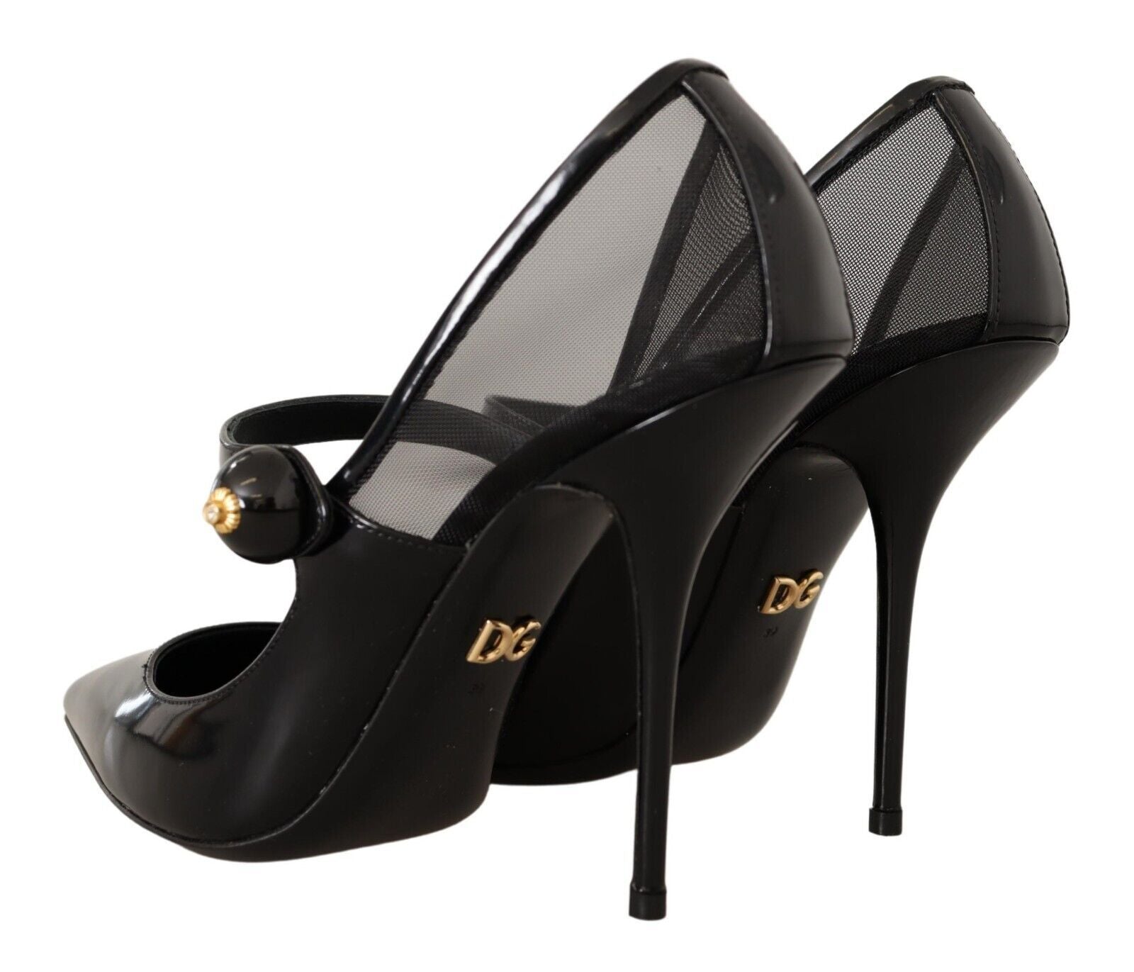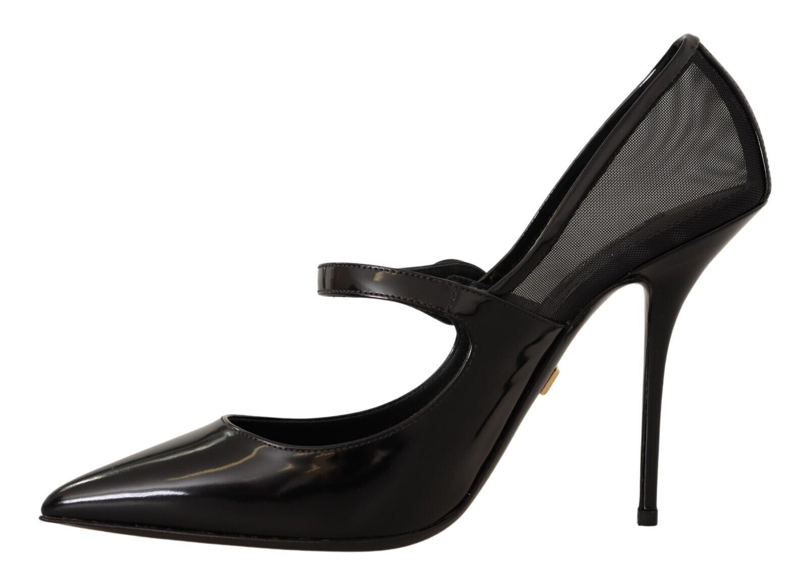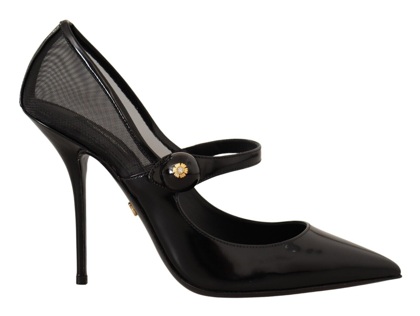 Dive into luxury with these stunning, 100% Authentic Dolce & Gabbana Mary Jane black leather pumps. Adorned with sparkling clear crystals, these high-heeled shoes showcase a classic pointed toe design that exudes sophistication and elegance. Their fine Italian craftsmanship guarantees both superior quality and comfort, making them a perfect choice for fashion-forward individuals seeking to make a statement.