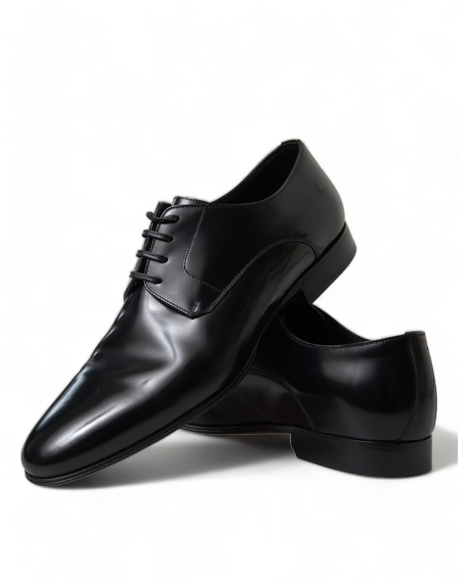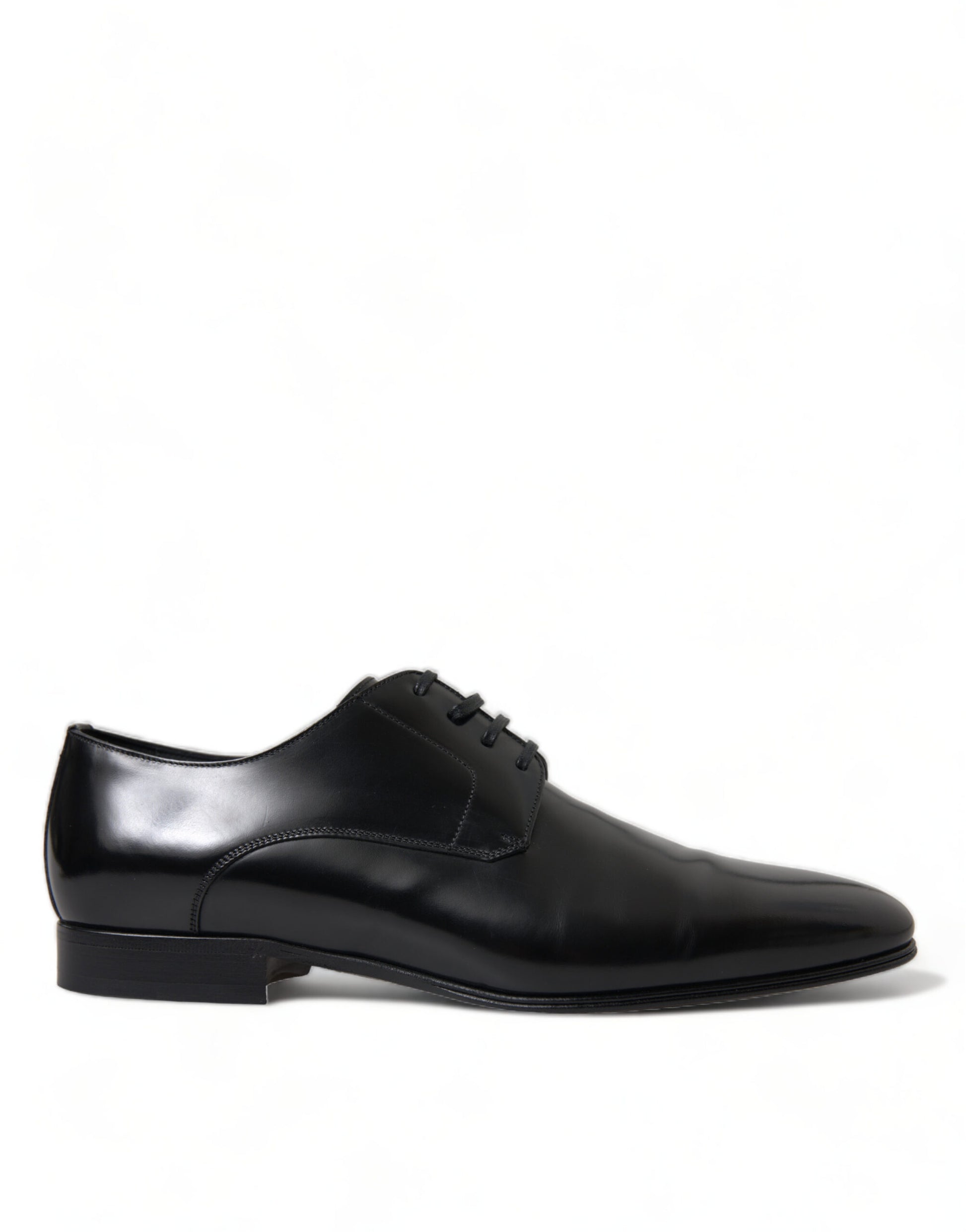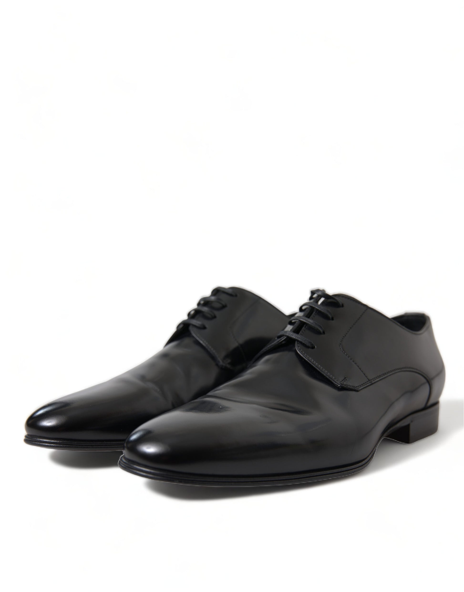 Step into sophistication with these Dolce & Gabbana lace-up Derby dress shoes, where elegance meets premium craftsmanship. These shoes are perfect for the modern gentleman seeking to elevate his formal attire. Made in Italy, these shoes feature a sleek black leather design that showcases luxury in every step.
