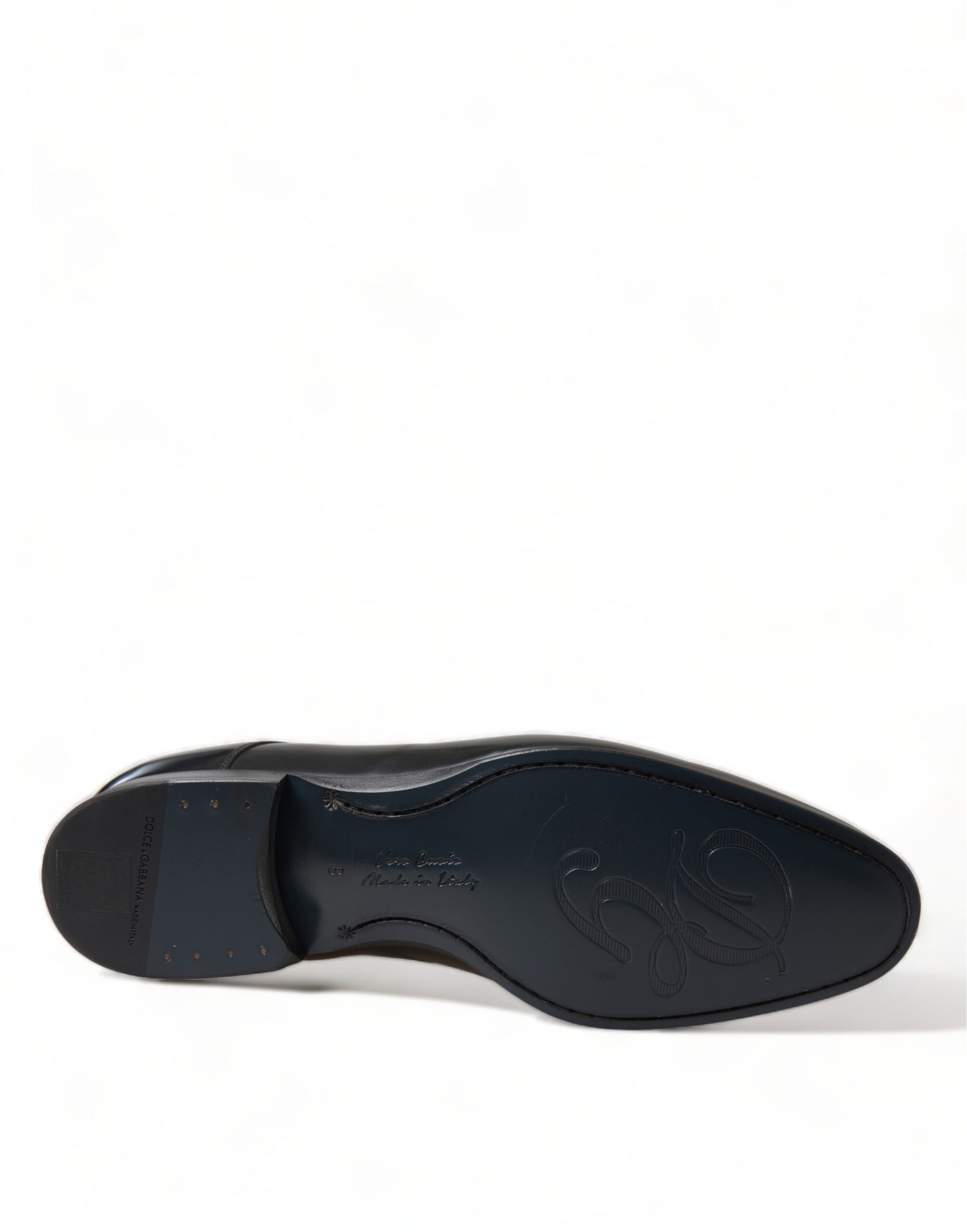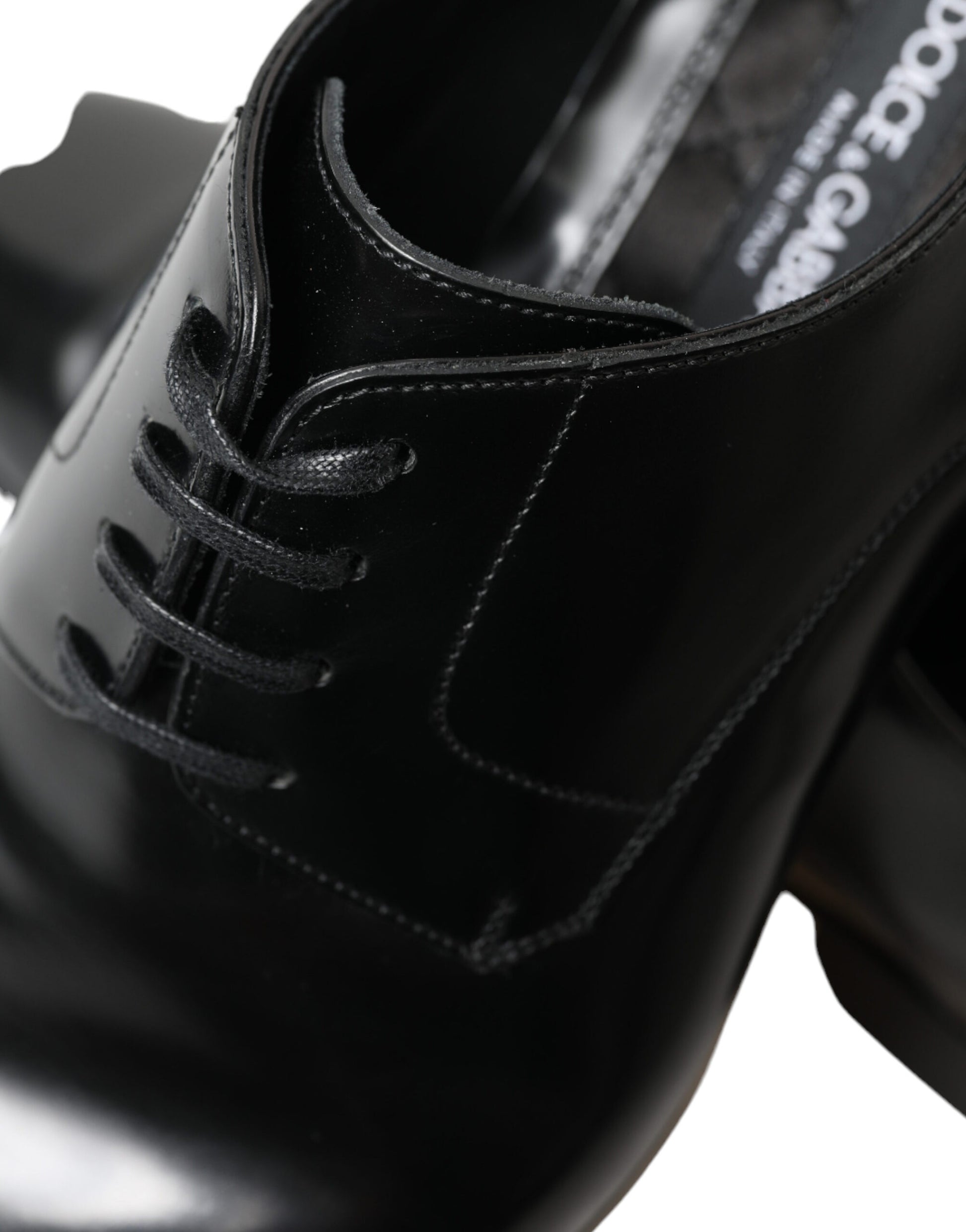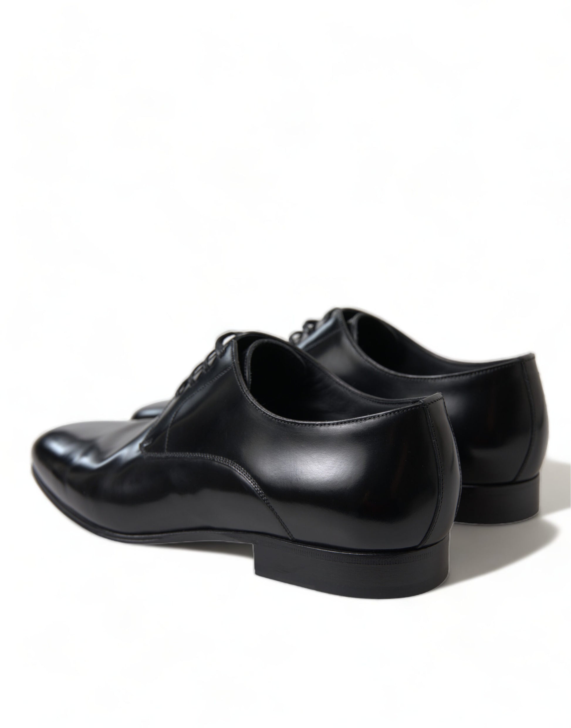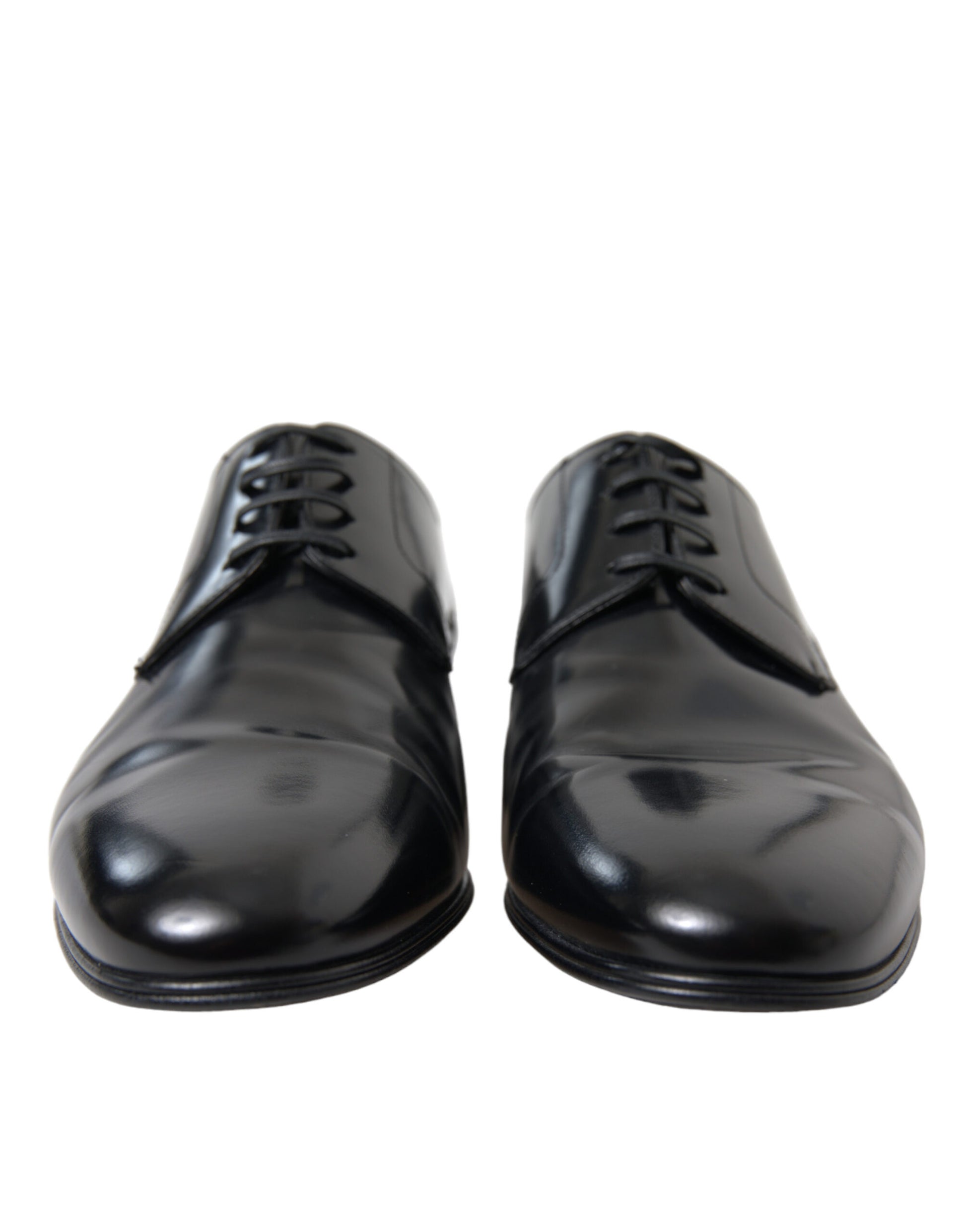 Step into sophistication with these Dolce & Gabbana lace-up Derby dress shoes, where elegance meets premium craftsmanship. These shoes are perfect for the modern gentleman seeking to elevate his formal attire. Made in Italy, these shoes feature a sleek black leather design that showcases luxury in every step.