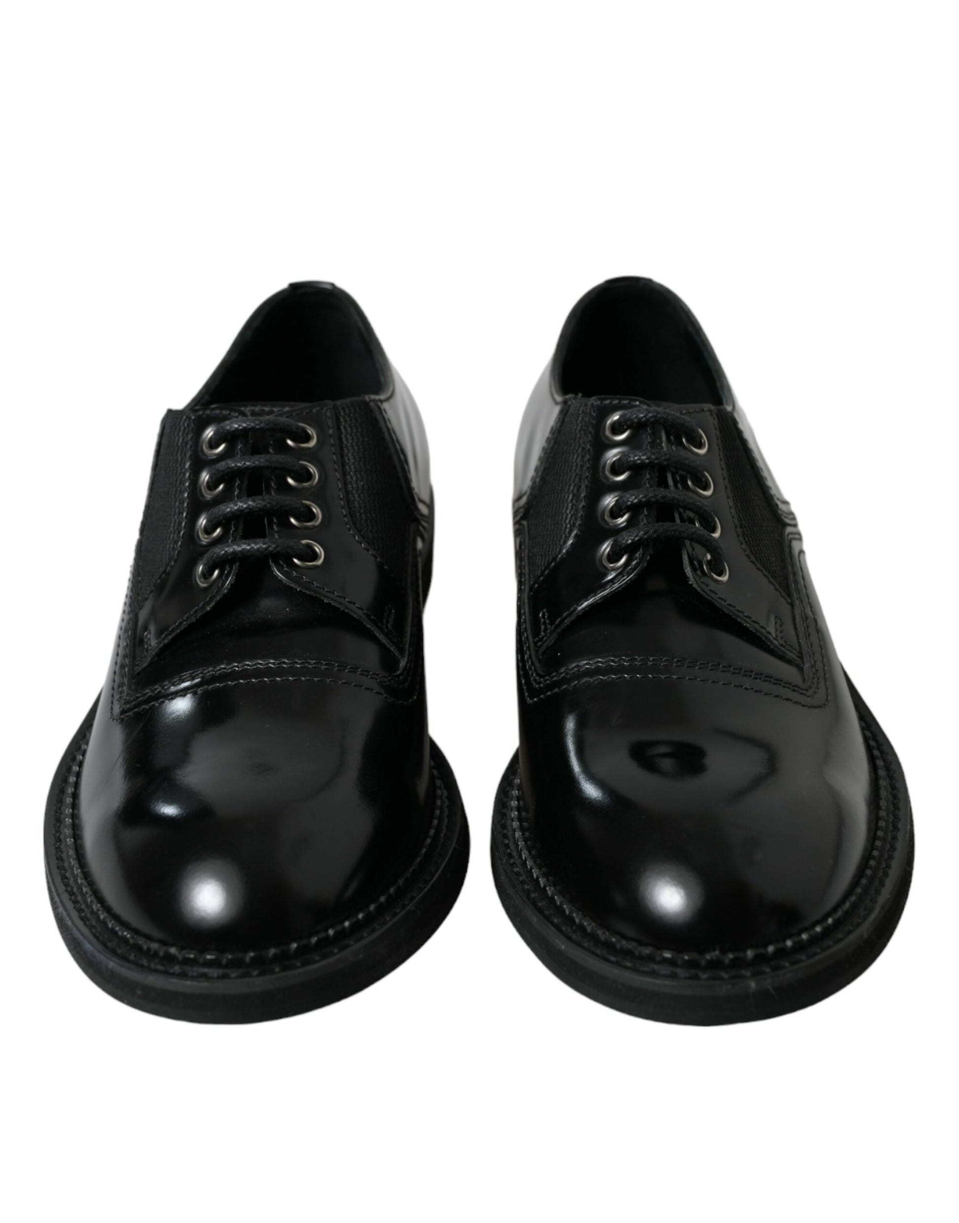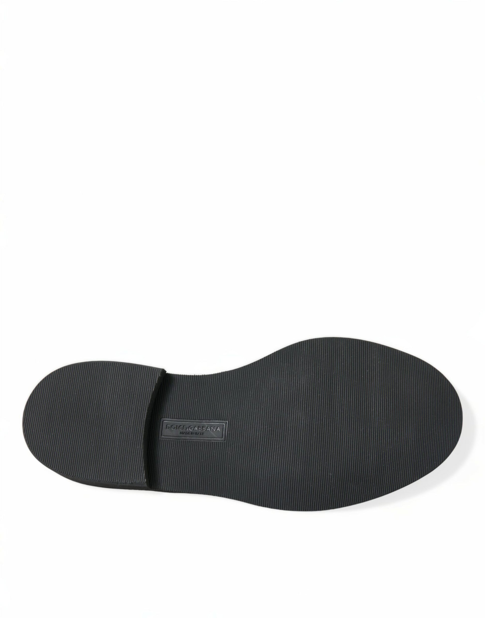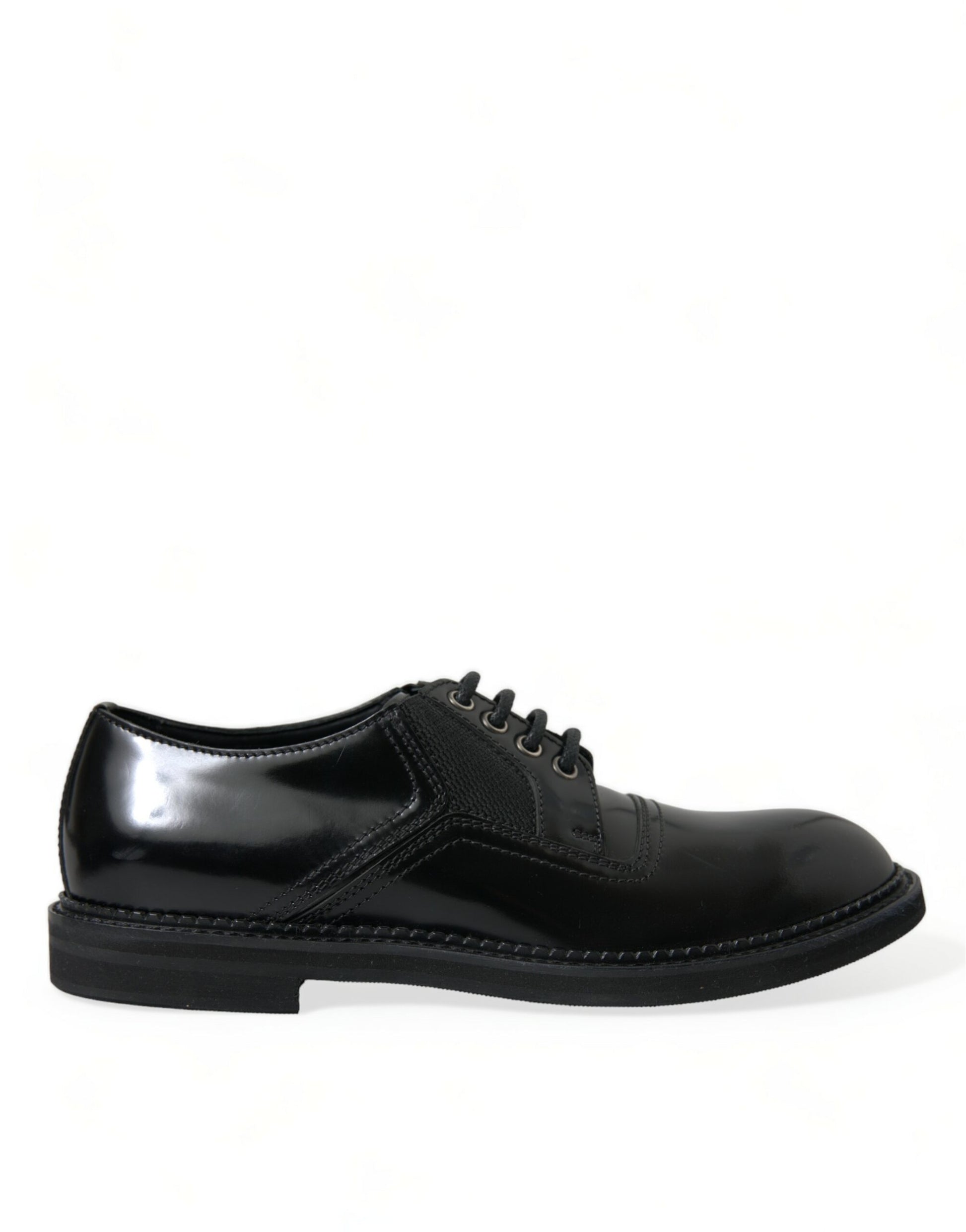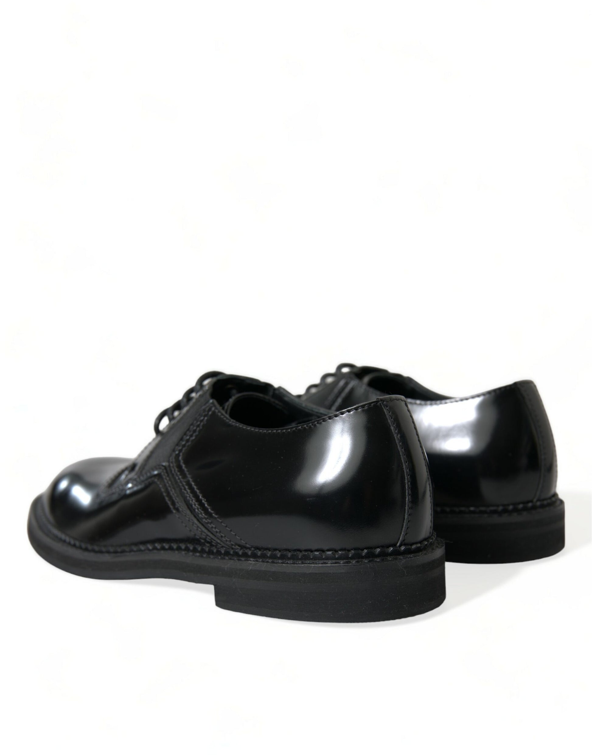 Step into sophistication with these Elegant Black Leather Derby Dress Shoes . Crafted from high-quality leather, these lace-up derbies by Dolce & Gabbana ensure both luxury and durability. Their sleek black color and pristine construction speak of unmatched craftsmanship, perfect for those seeking an exclusive addition to their formal footwear collection. Made in Italy, they bear the logo detail that signifies the mark of a style connoisseur. These shoes are not just a statement piece but a staple for any gentleman’s closet.