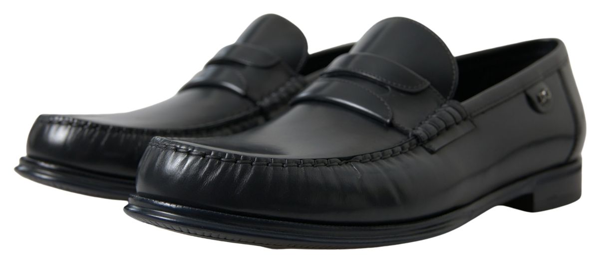 Step into luxury with these exquisite black loafers from the renowned house of Dolce & Gabbana. Perfect for formal events or adding a touch of class to your everyday wardrobe, these shoes are a testament to high craftsmanship and timeless style. Each pair boasts the iconic logo details and is crafted in Italy, ensuring authenticity and exclusivity.