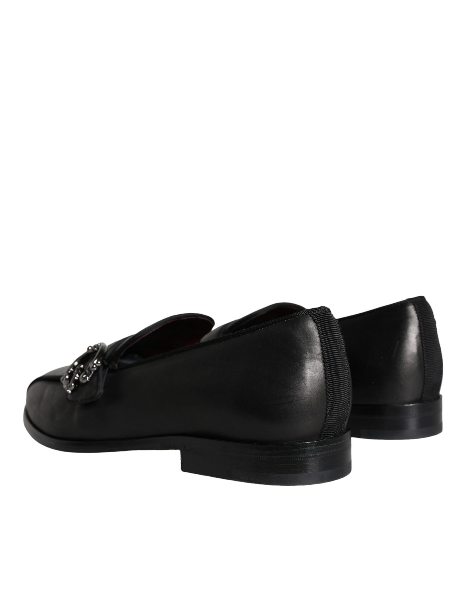 Black Leather Logo Loafers Men Dress Shoes