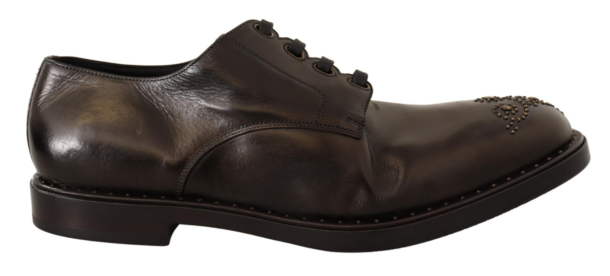 Step into luxury with these exquisite black Derby shoes, a testament to high craftsmanship from the illustrious Dolce & Gabbana. These brand new, tagged masterpieces feature a marsala design adorned with studs, blending traditional sophistication with a modern edge. Crafted from the finest leather, these shoes are ideal for making a statement at any formal occasion.