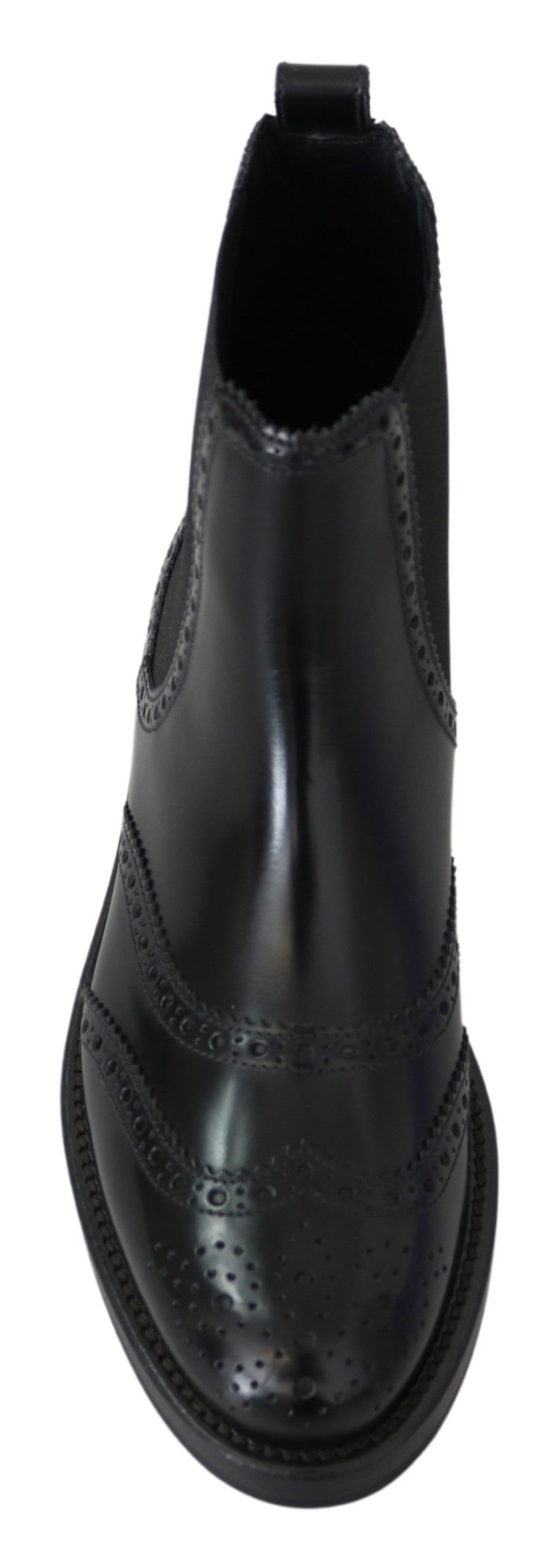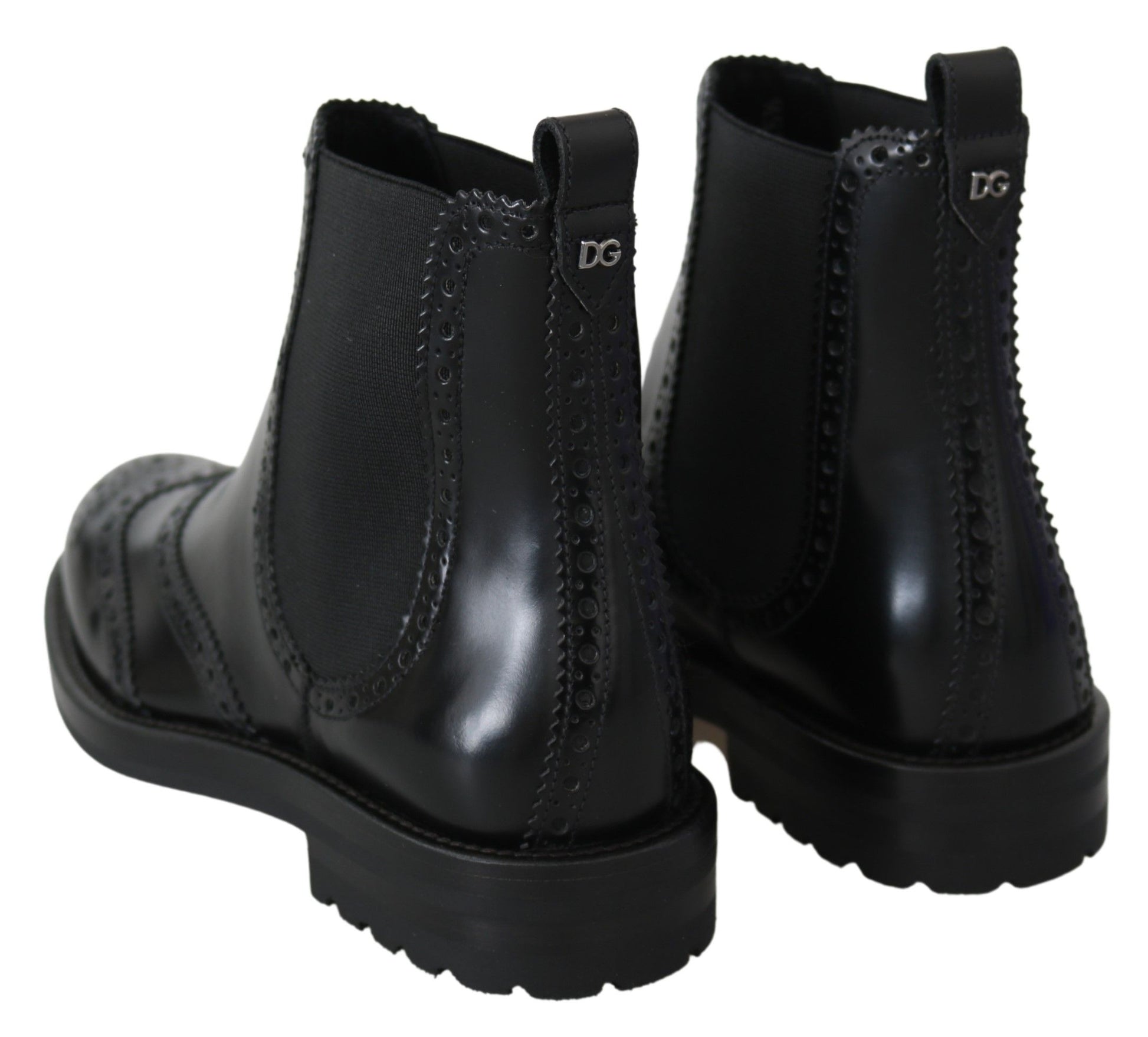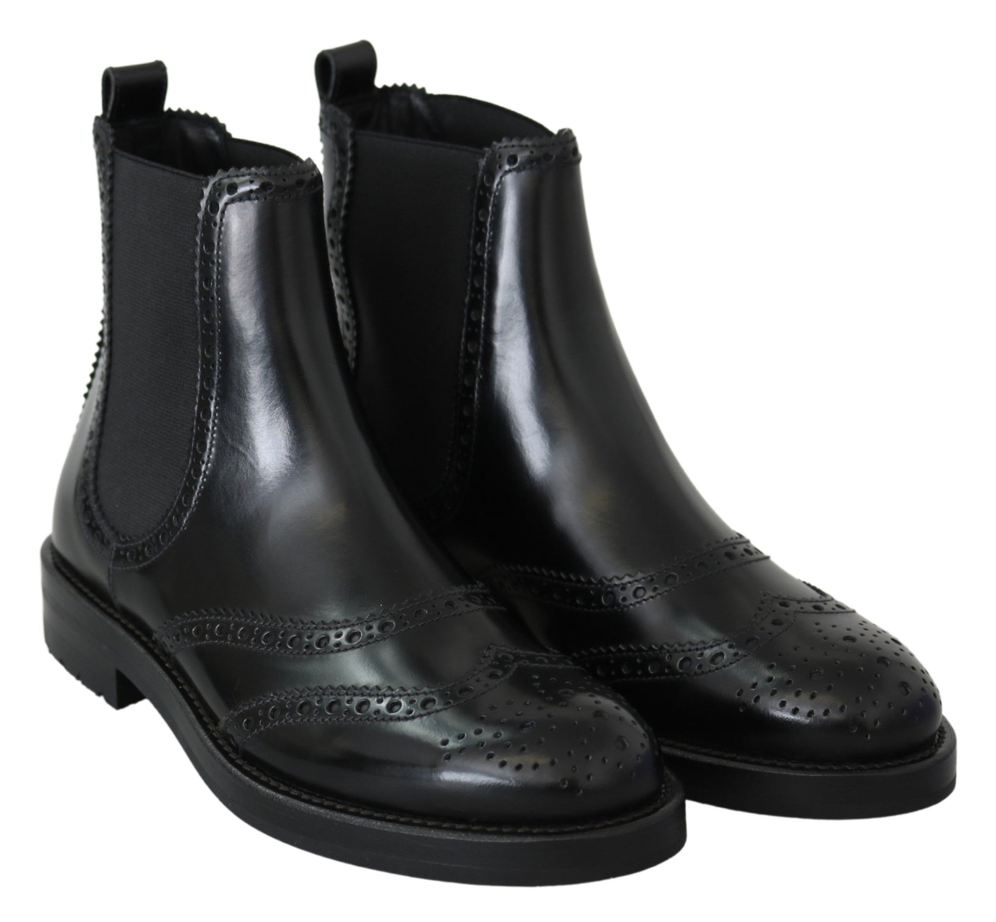 Dive into luxury with these exquisite Dolce & Gabbana ankle-high wingtip oxford boots. Known for their stunning craftsmanship, these boots boast 100% leather material, promising quality and elegance. With a convenient stretch band for easy wear and a durable rubber sole, they’re not only stylish but comfortable as well. Their classic black hue ensures they’ll be a versatile addition to any high-end wardrobe. Made in Italy, they offer an authentic touch of Italian fashion finesse.