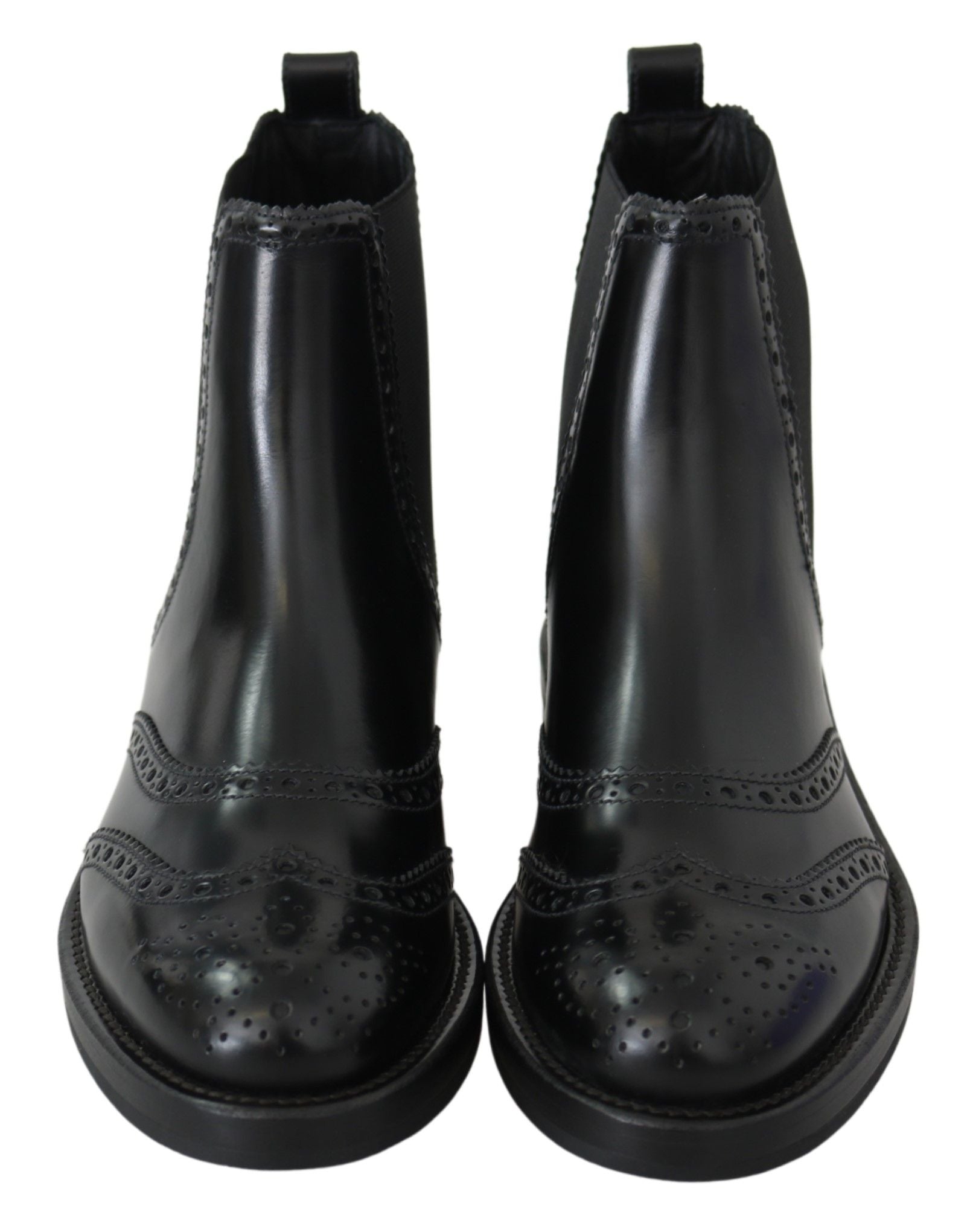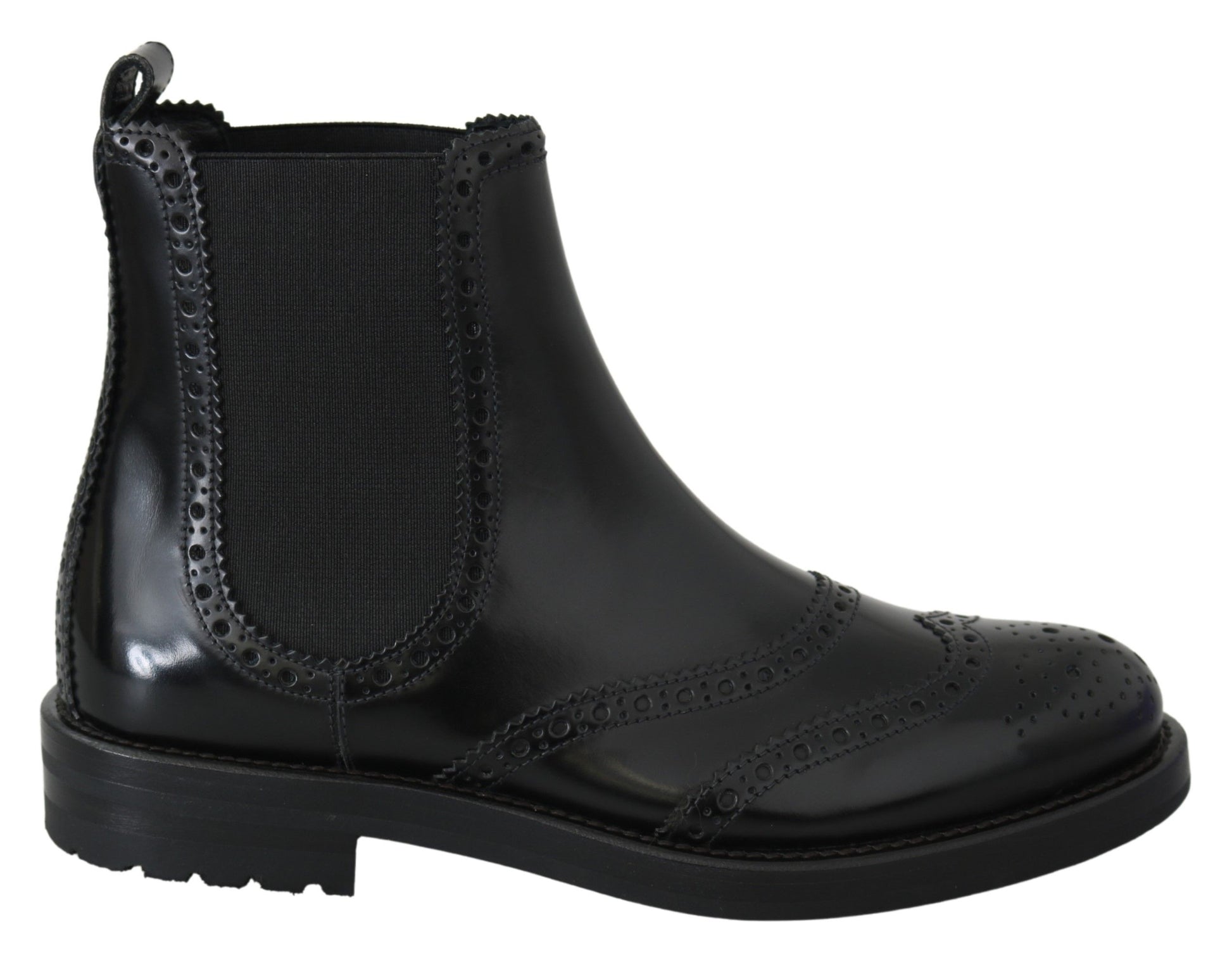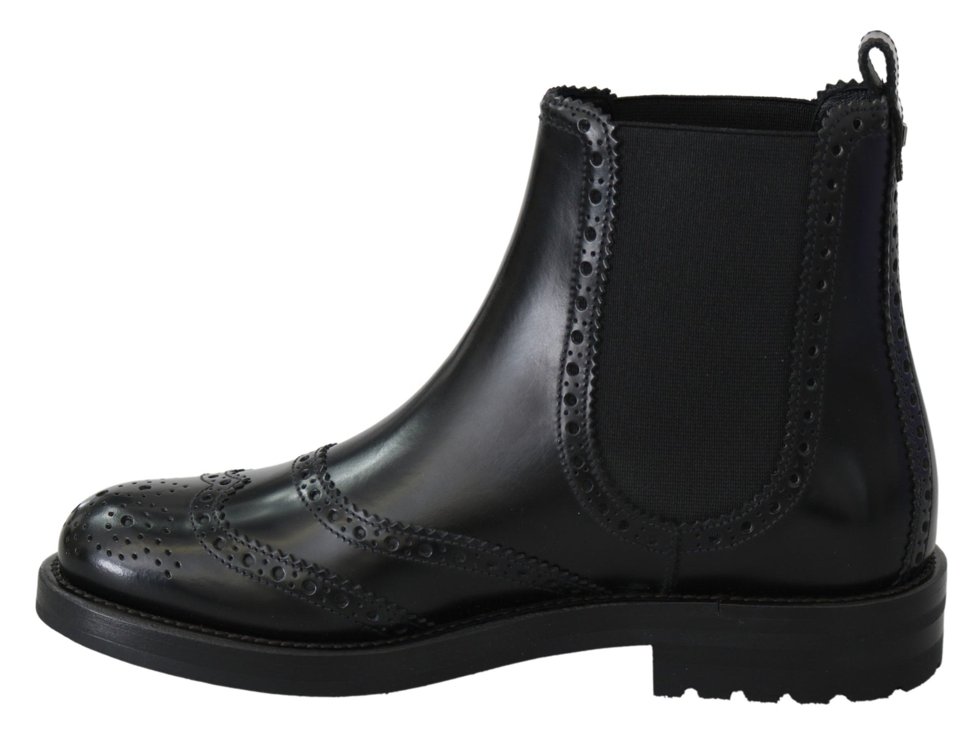 Dive into luxury with these exquisite Dolce & Gabbana ankle-high wingtip oxford boots. Known for their stunning craftsmanship, these boots boast 100% leather material, promising quality and elegance. With a convenient stretch band for easy wear and a durable rubber sole, they’re not only stylish but comfortable as well. Their classic black hue ensures they’ll be a versatile addition to any high-end wardrobe. Made in Italy, they offer an authentic touch of Italian fashion finesse.