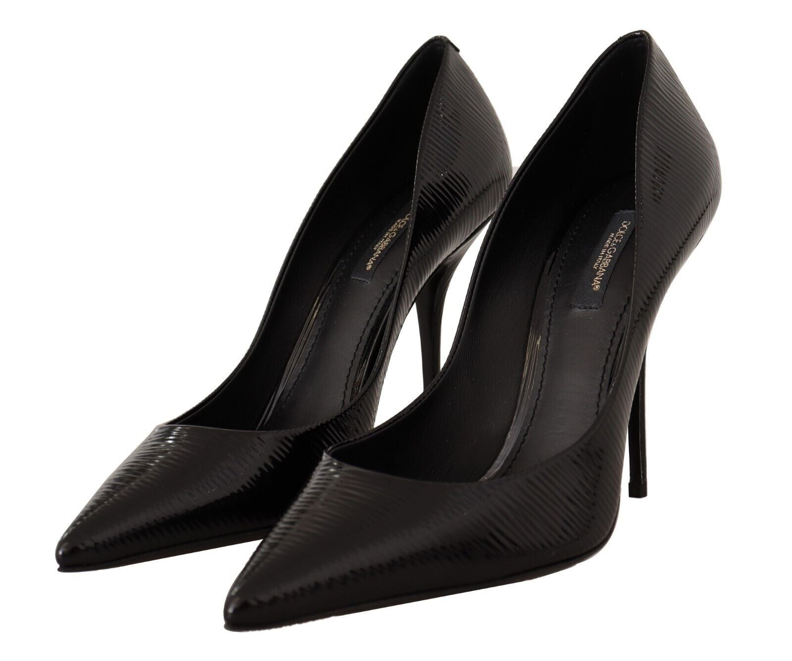 Step into luxury with these exquisite Dolce & Gabbana heels. These brand new, tag-attached pumps boast a sleek black leather composition, perfect for sophisticated evening wear or adding a touch of class to any daytime ensemble. The high stiletto heels paired with a sharp pointed toe create an undeniably chic silhouette sure to elevate your fashion statement.