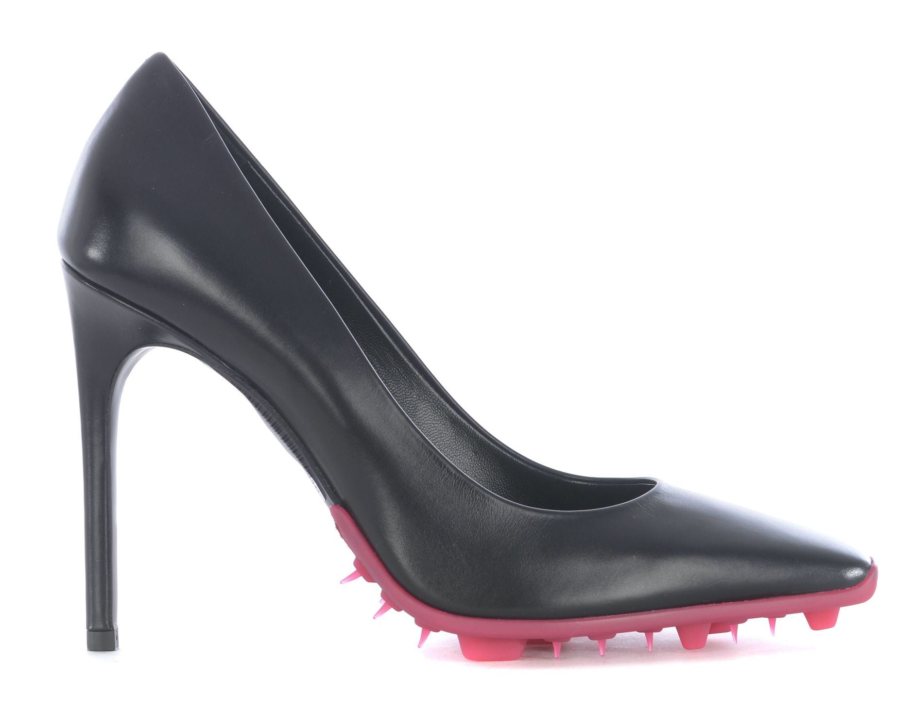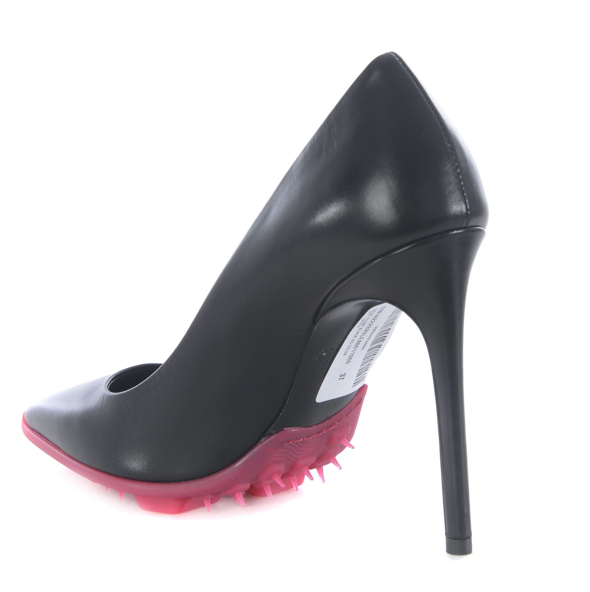 Step into the realm of sophistication with our stunning décolleté, gracefully designed in a classic black hue, complemented by a playful pink rubber sole. This Italian-made footwear boasts an impressive 11cm heel that elongates your silhouette, making it the perfect companion to any chic ensemble.