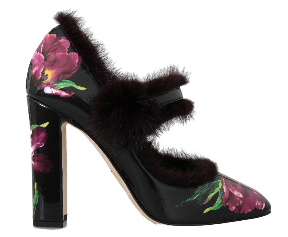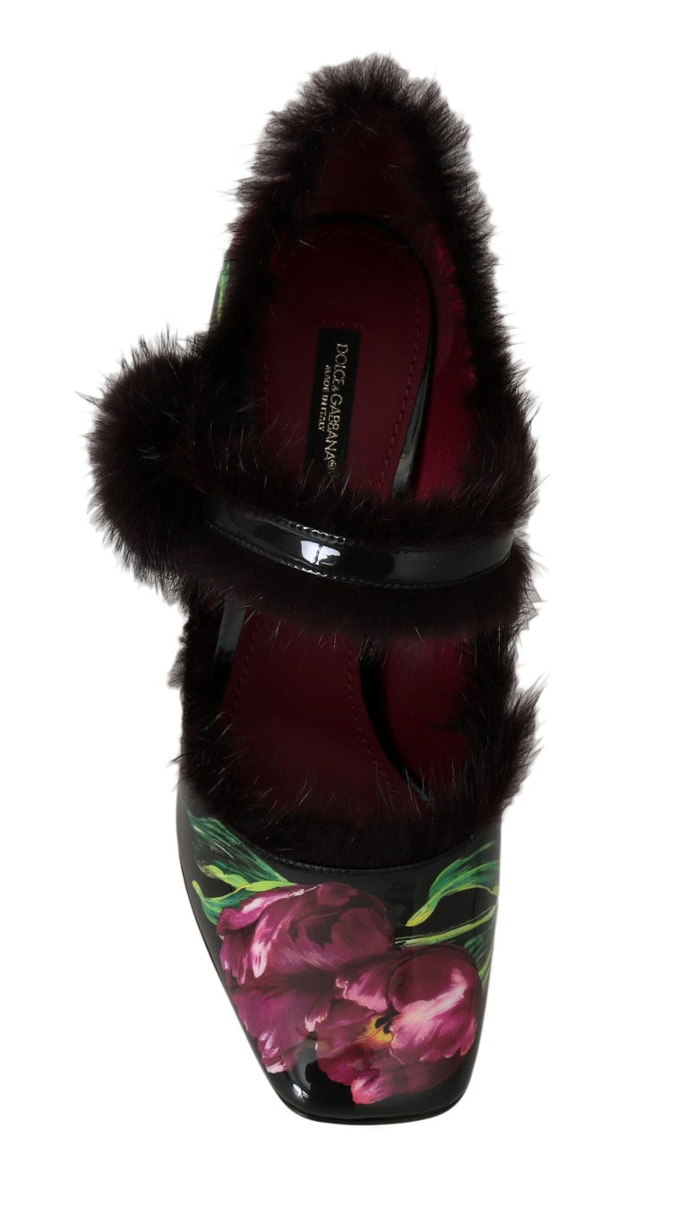 Step into luxury with these exquisite Dolce & Gabbana Mary Janes pumps. Beautifully crafted from the finest materials, these shoes feature a stunning black with purple tulip print and lush purple mink fur, presenting an embodiment of elegance and opulence. Made in Italy, these pieces come brand new with tags, guaranteeing authentic sophistication for any fashion enthusiast.