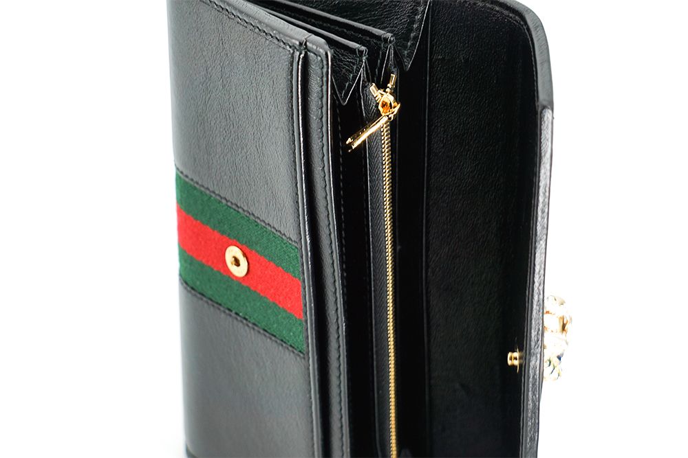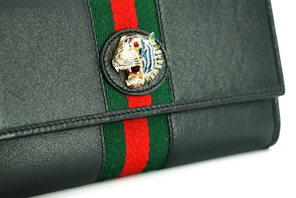 Indulge in the luxury of a brand new, 100% Authentic Gucci Wallet, complete with original tags, dust bag, and box. Crafted from the finest leather, this elegant accessory features a sleek black exterior, enhanced by a striking gold-toned tiger emblem. A practical yet chic design, it offers a secure top flap with button snap, two expansive compartments, a zippered interior pocket, and a dozen card slots for all of your organizational needs.