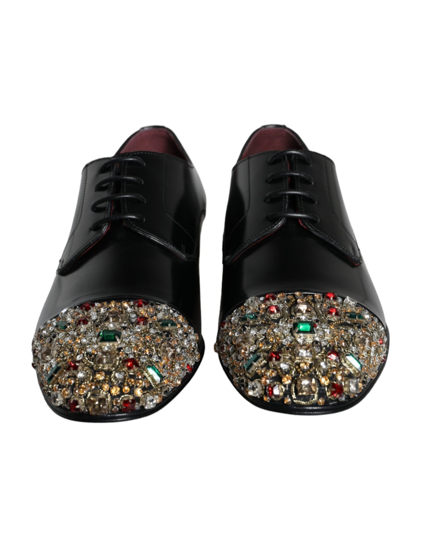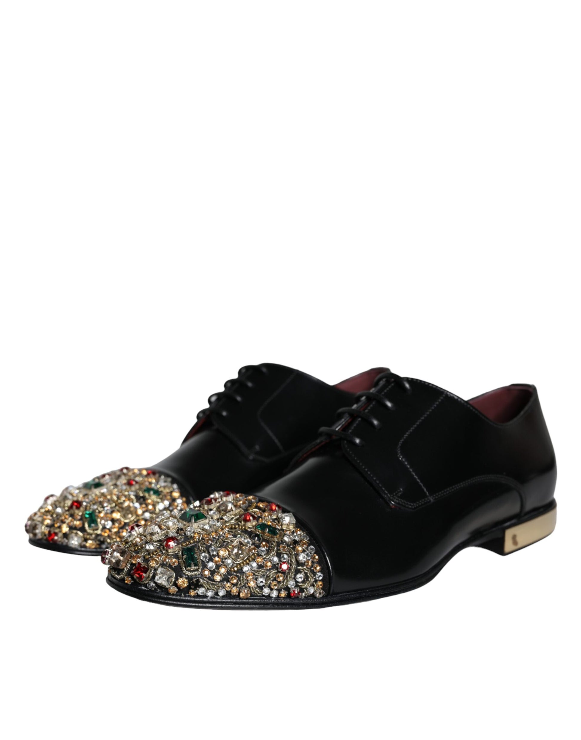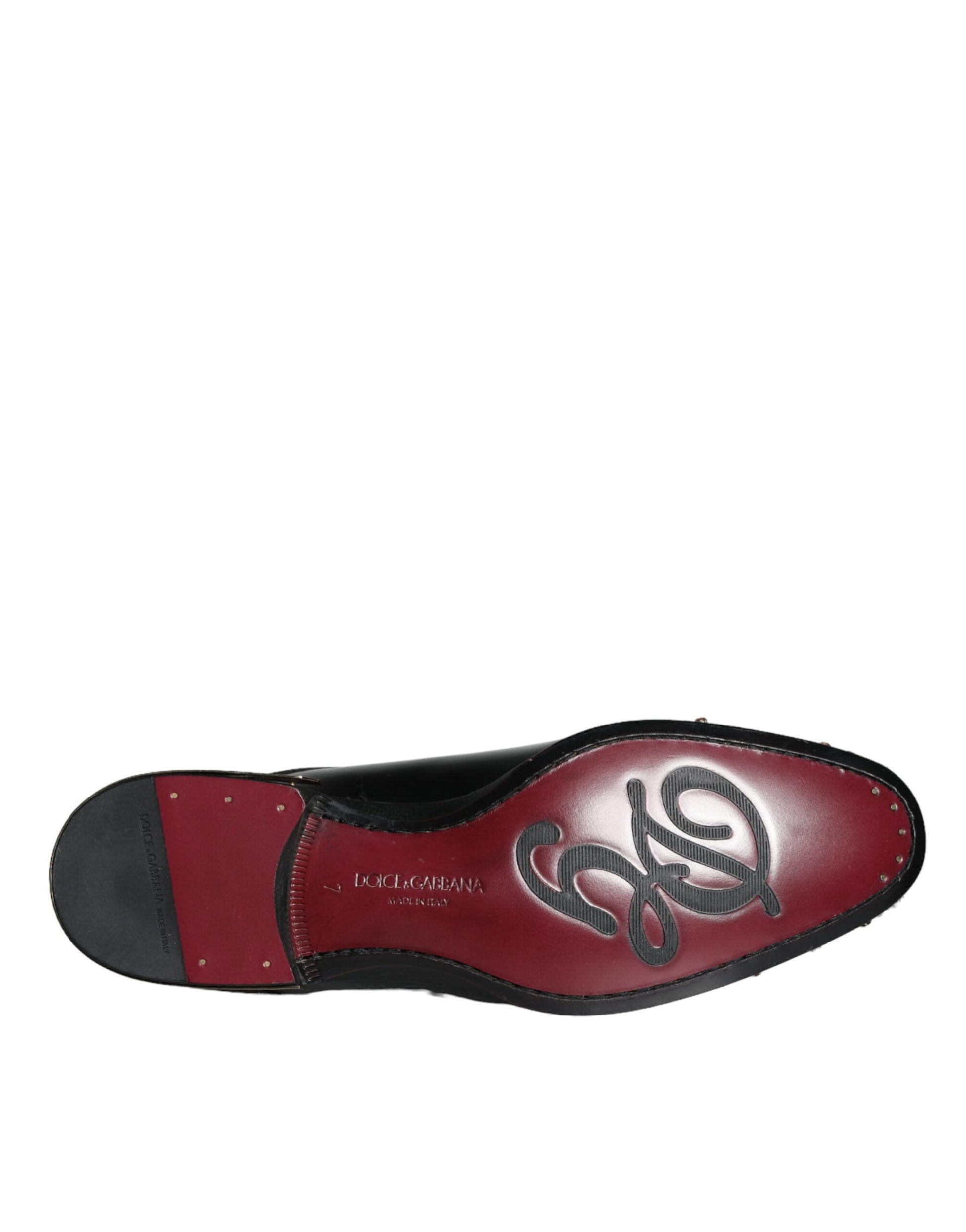 Gorgeous brand new with tags, 100% Authentic Dolce & Gabbana exclusive and elegant derby shoes made of smooth leather with crystal jewelry and “L’Amore e’ bellezza” heels in black.