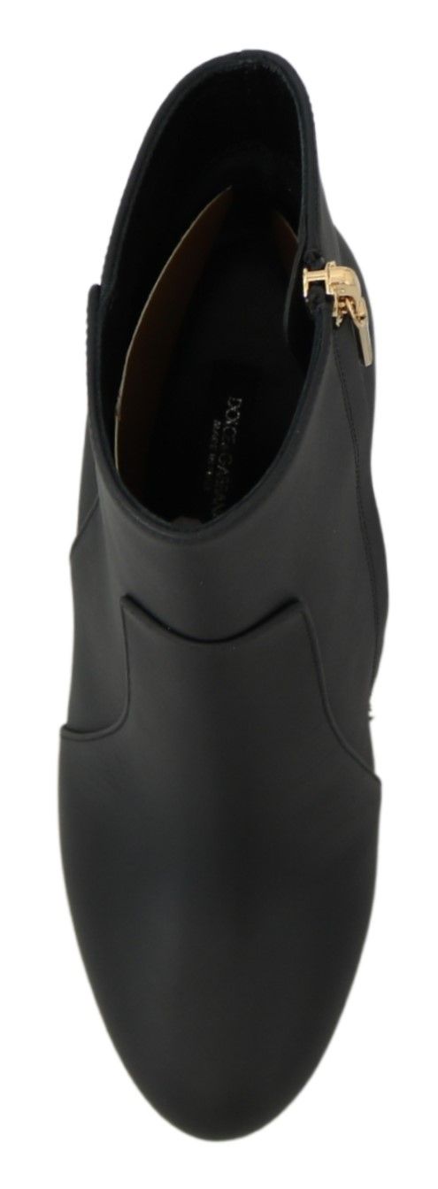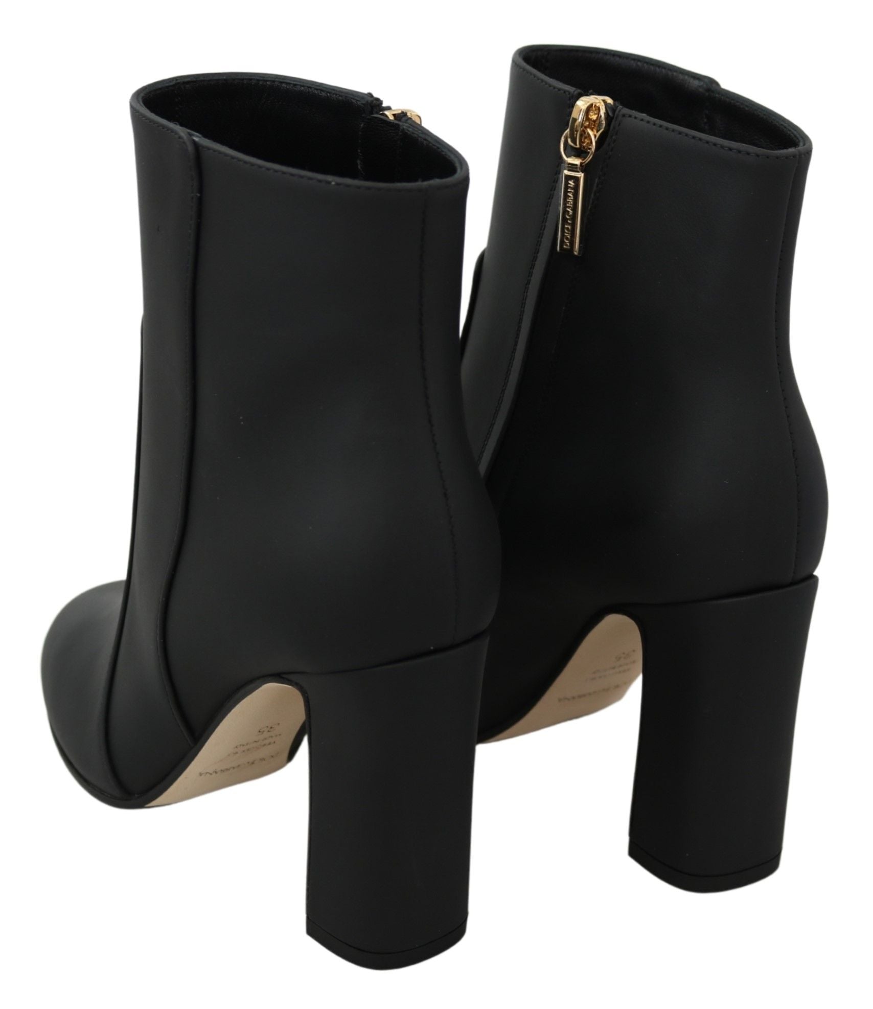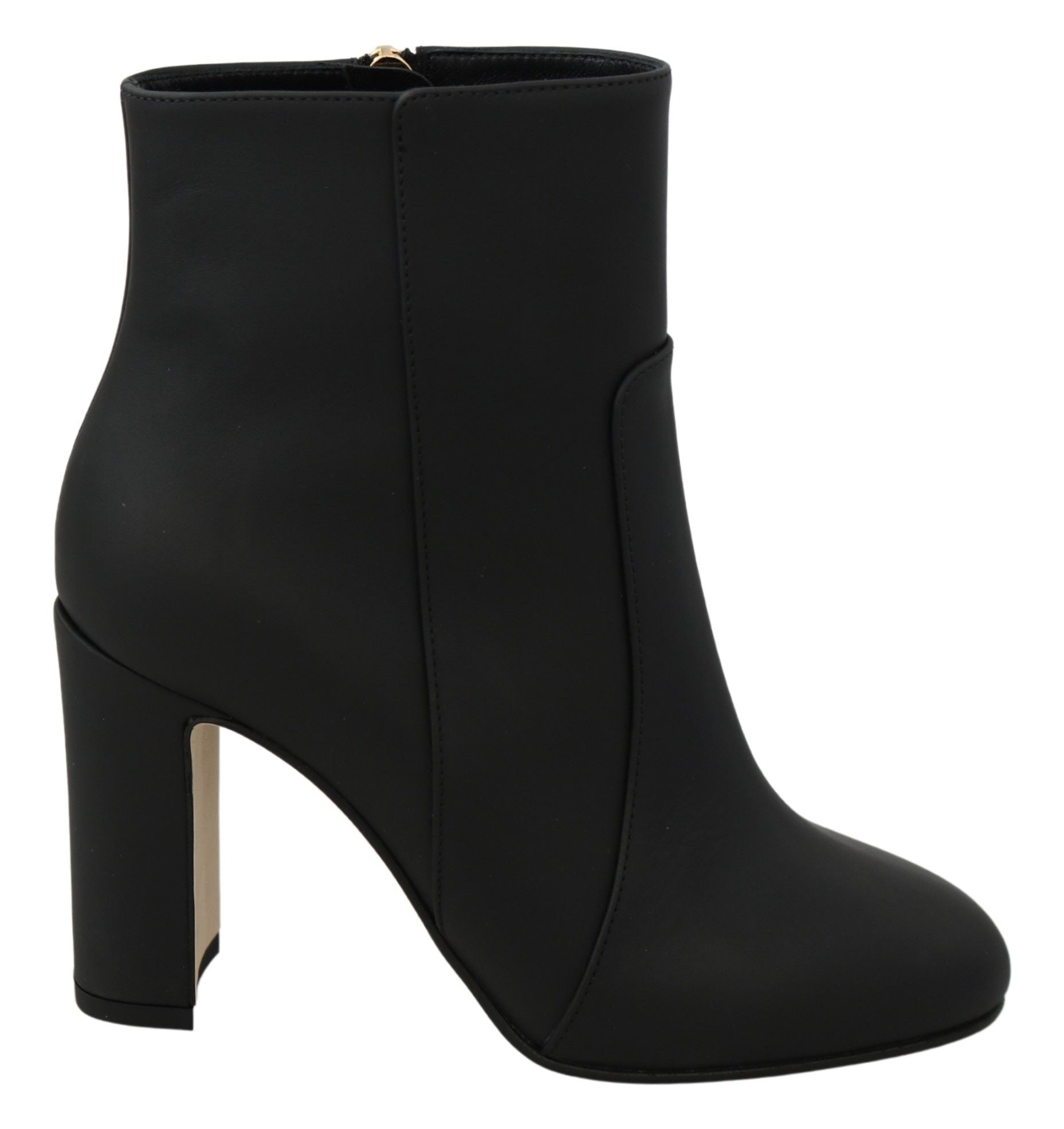 Step into luxury and style with these exquisite Dolce & Gabbana boots. Brand new with tags, these 100% authentic short high heel boots are a perfect blend of fashion and comfort. Crafted from premium black leather, they feature a rubber and leather sole with a convenient zipper opening on the side. Intricate logo details add an exclusive touch to these Italian-made boots, ensuring they’re not just footwear but a statement of elegance.
