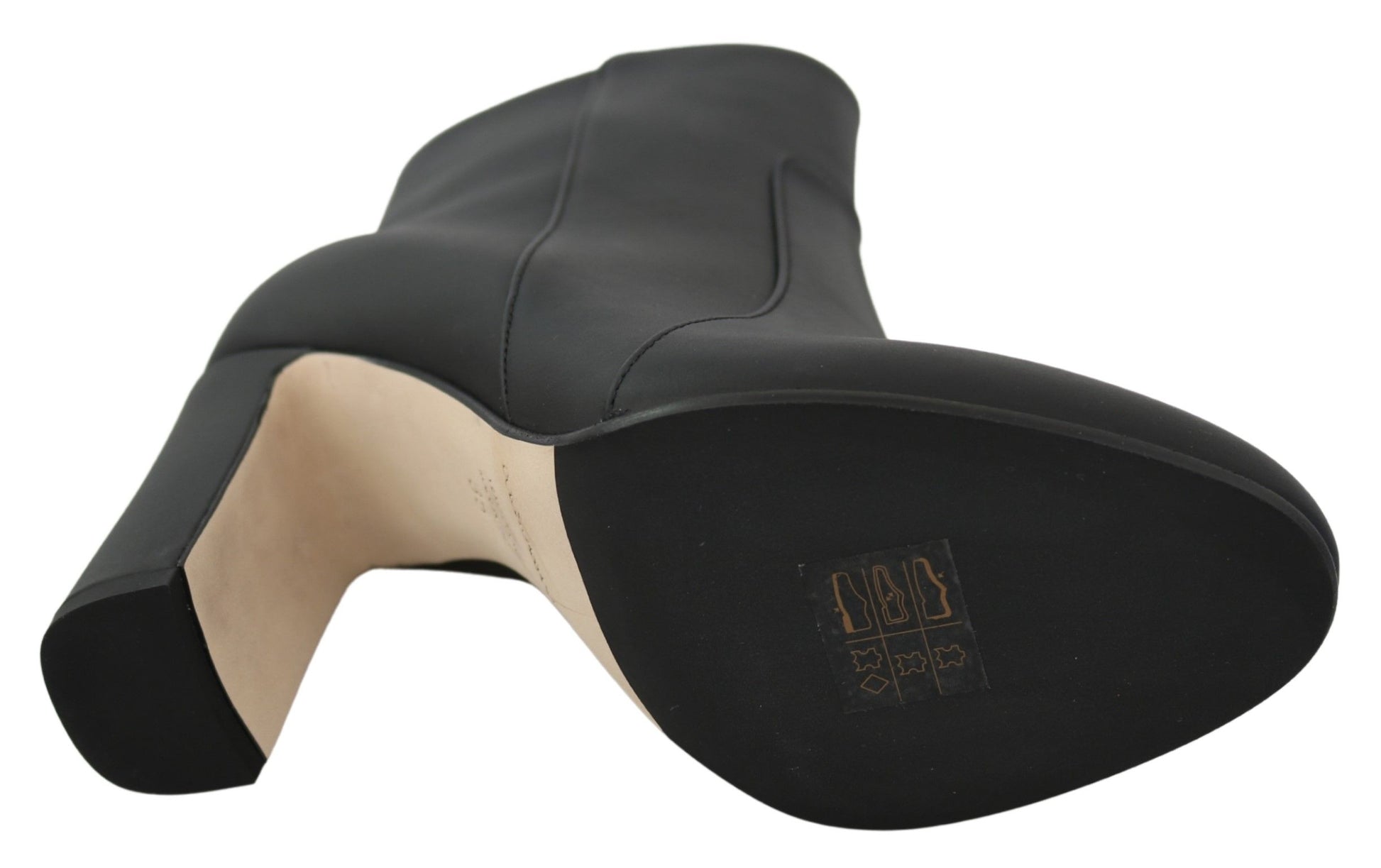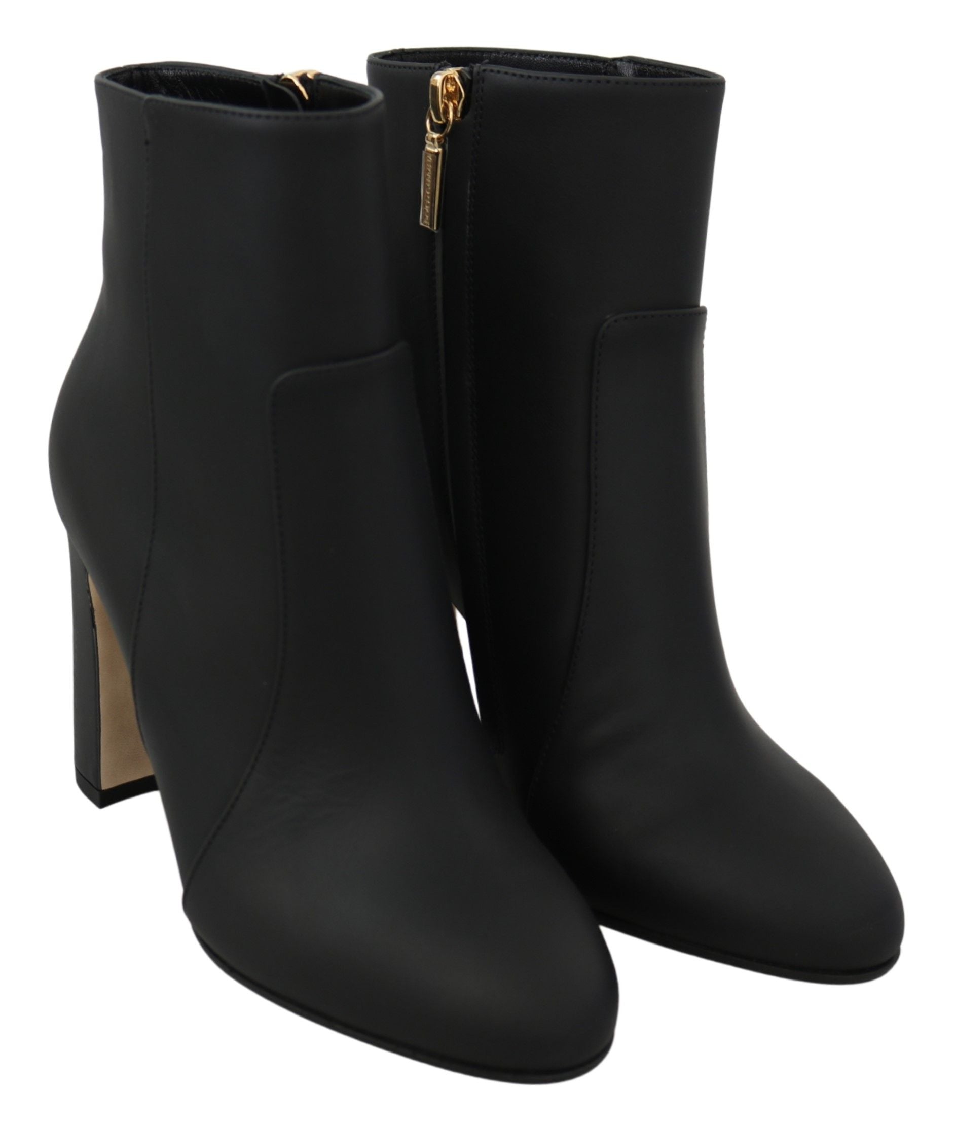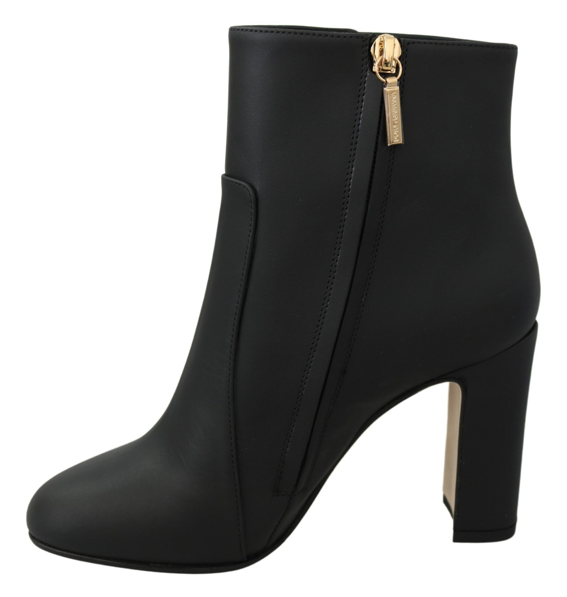 Step into luxury and style with these exquisite Dolce & Gabbana boots. Brand new with tags, these 100% authentic short high heel boots are a perfect blend of fashion and comfort. Crafted from premium black leather, they feature a rubber and leather sole with a convenient zipper opening on the side. Intricate logo details add an exclusive touch to these Italian-made boots, ensuring they’re not just footwear but a statement of elegance.