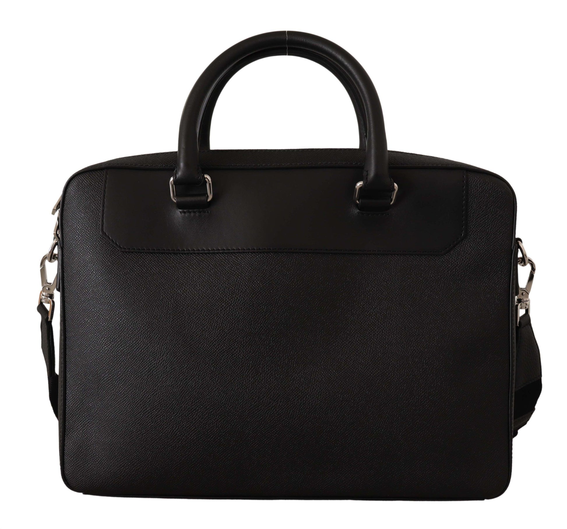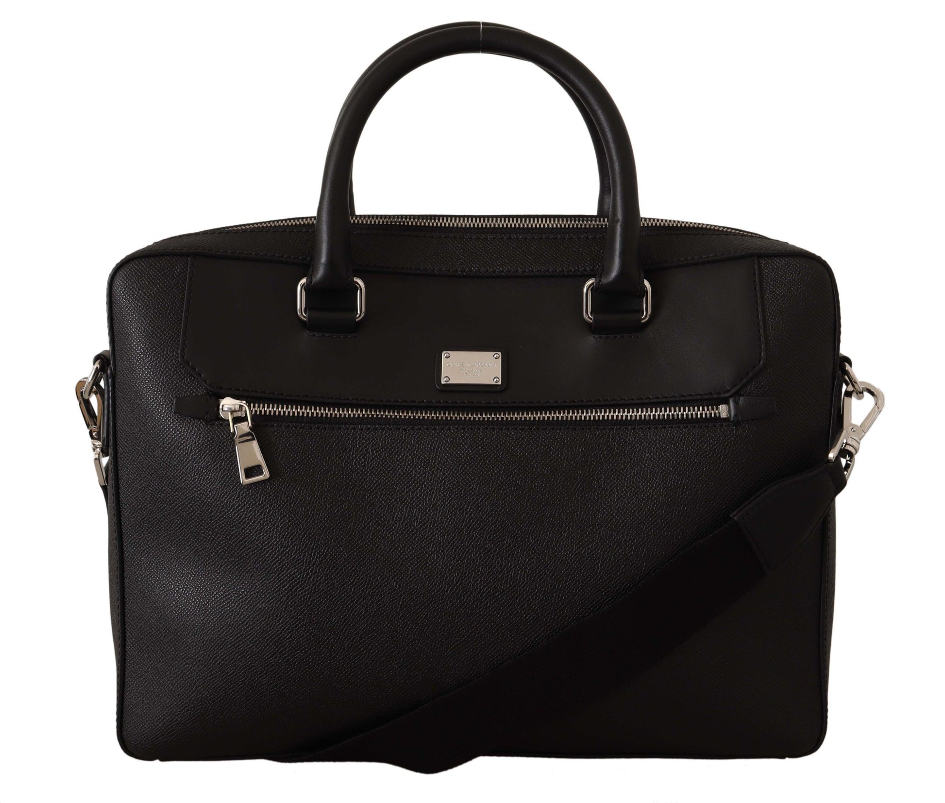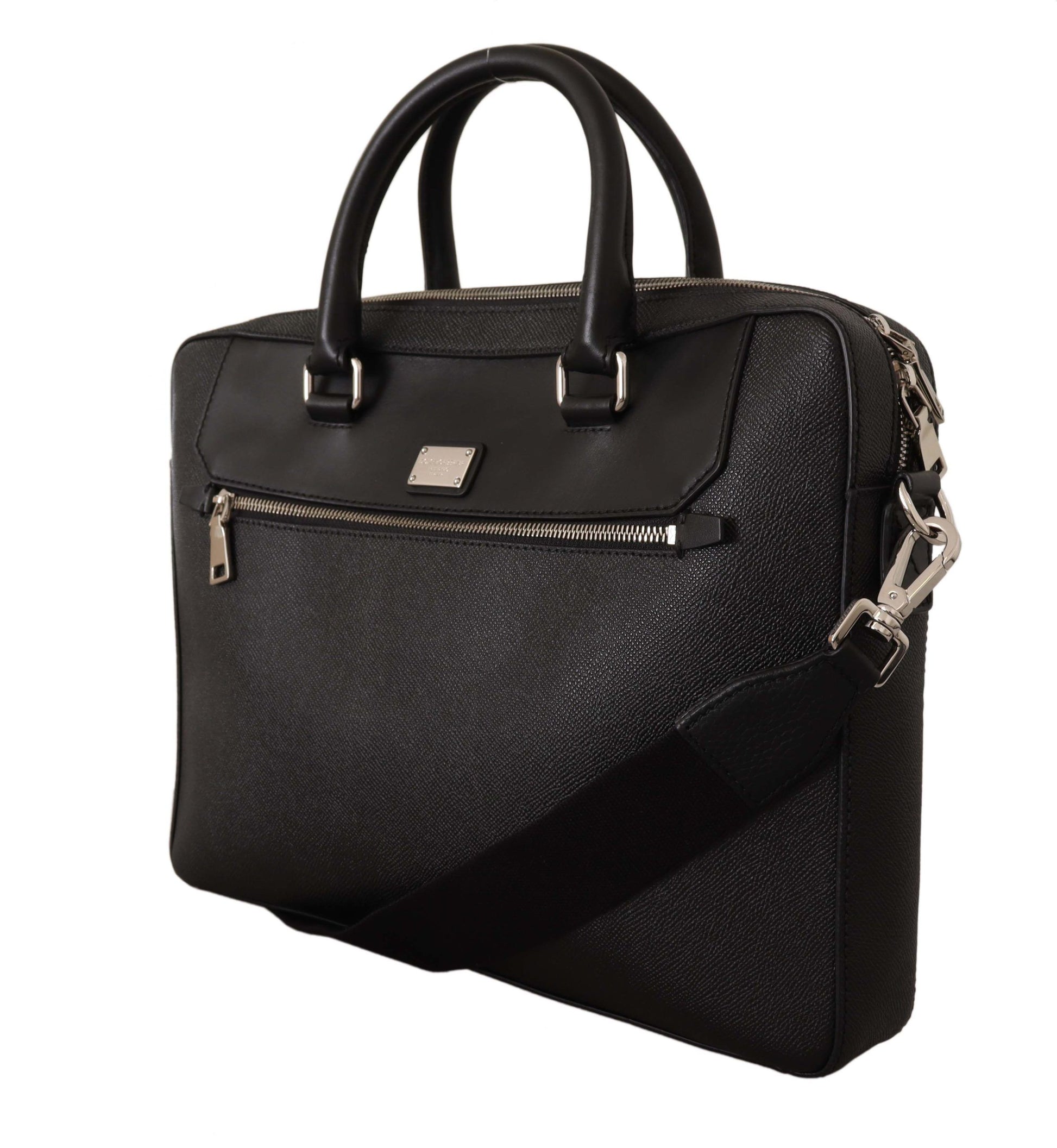 Discover luxury reflected in every detail with this exquisite black messenger bag from Dolce & Gabbana. Crafted from premium leather, this versatile accessory is perfect for the stylish professional on the go. Featuring a secure laptop compartment, an adjustable shoulder strap for customized carrying comfort, and finished with signature logo details. Bringing Italian craftsmanship straight to your wardrobe.