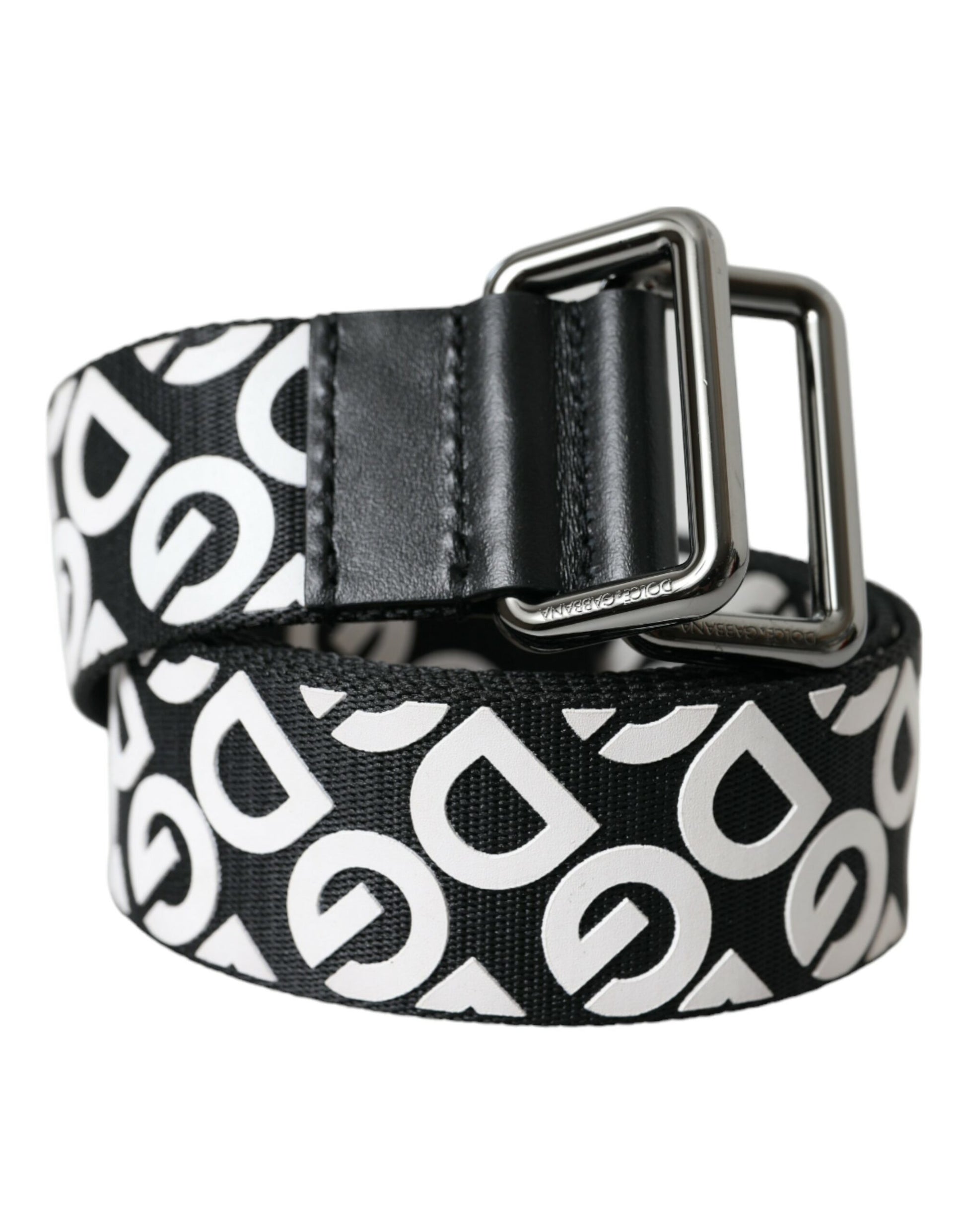 Black Leather Silver Buckle Canvas Belt