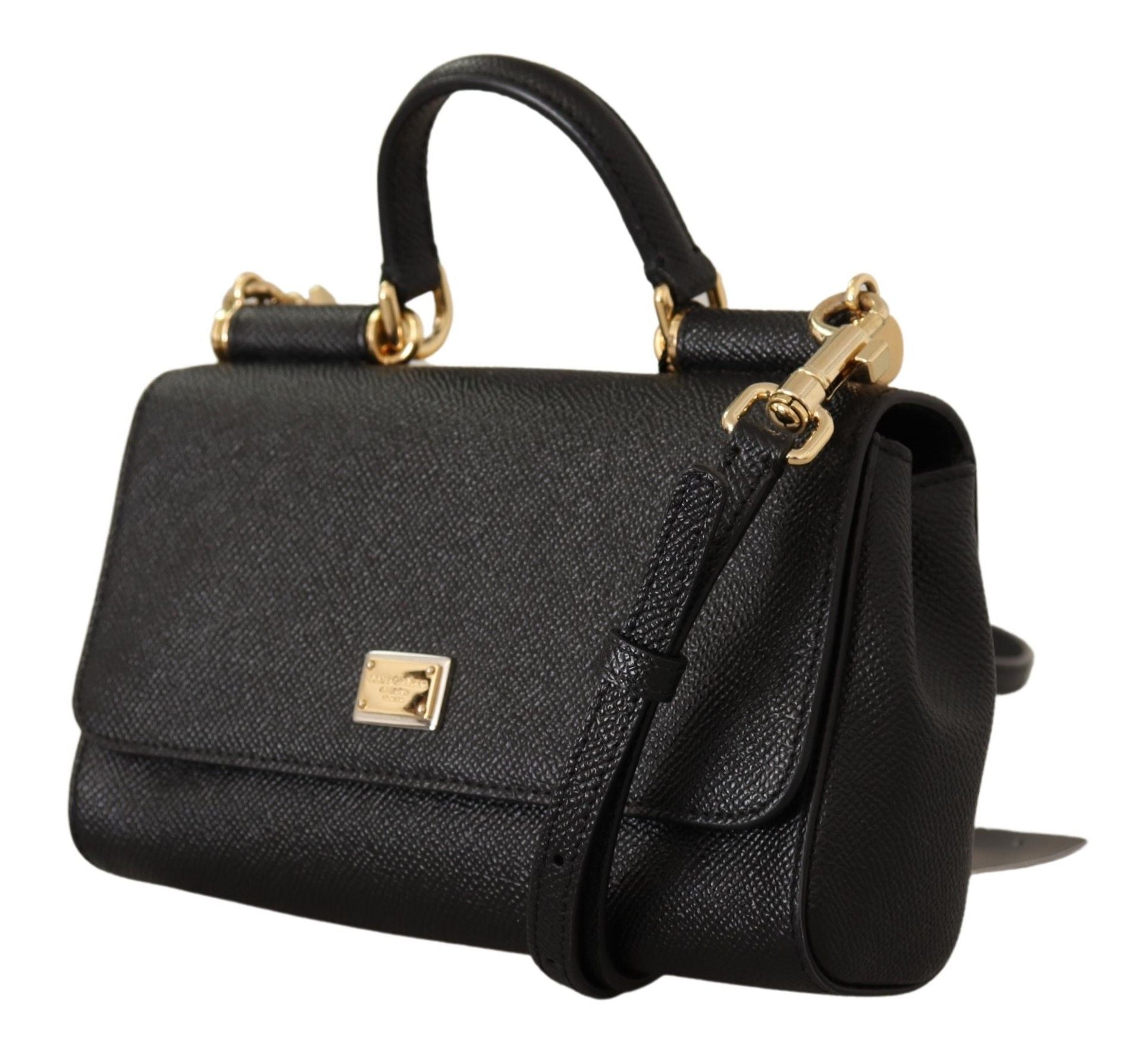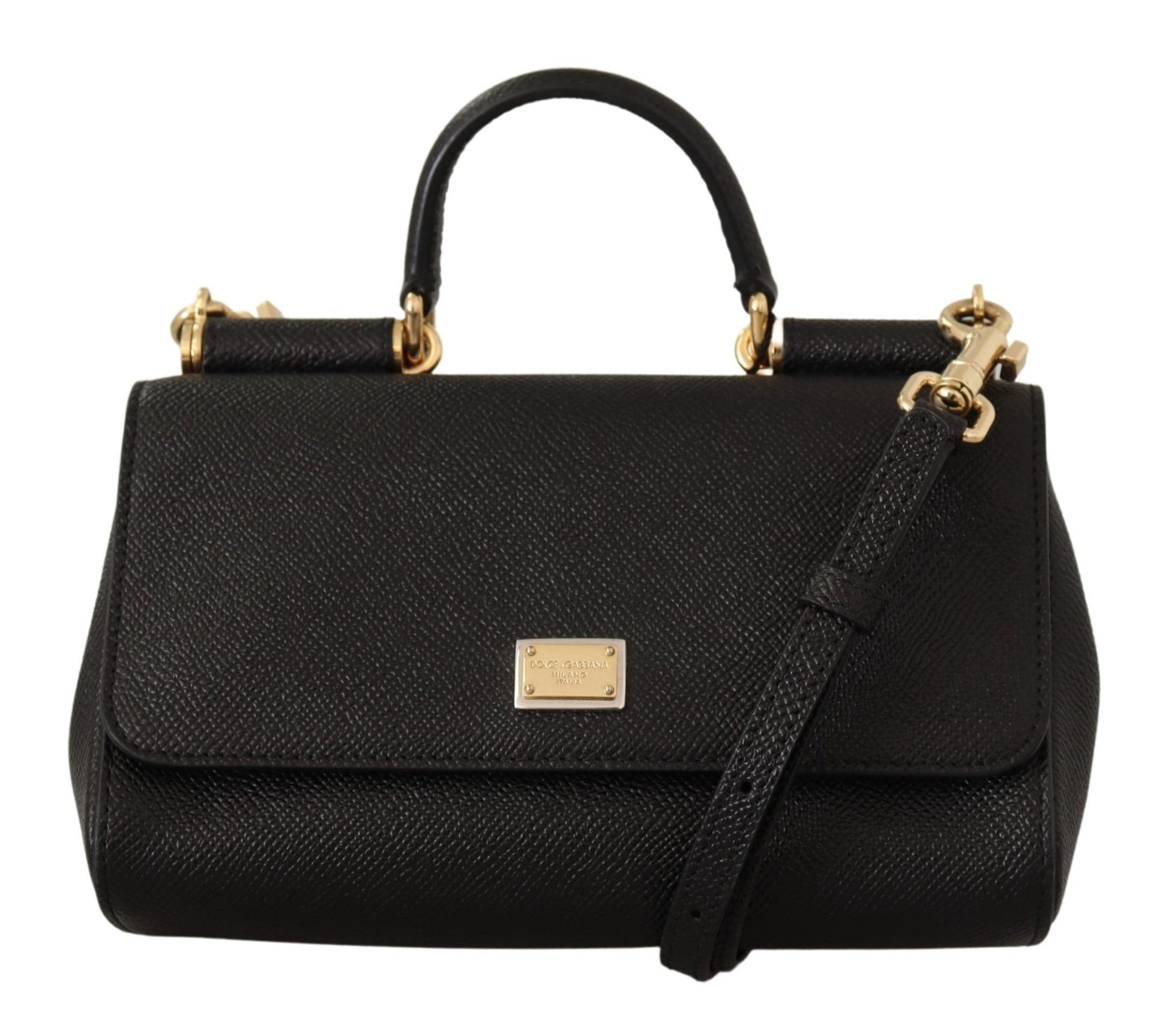 Embrace timeless elegance with Dolce & Gabbana’s stunning Sicily shoulder bag. Beautifully crafted from premium leather in a classic black shade, this bag is as versatile as it is stylish. It features gold metal detailing that adds a touch of luxury to any ensemble. Designed for practicality as well as fashion, it includes one handle and a detachable, adjustable shoulder strap for multiple carrying options. The secure flap closure opens to reveal a sophisticated black inner lining, and the logo-engraved hardware completes the bag’s luxurious aesthetic. Whether for a day out or a special evening, this small-sized bag is an ideal accessory for those who appreciate the finer things in life.