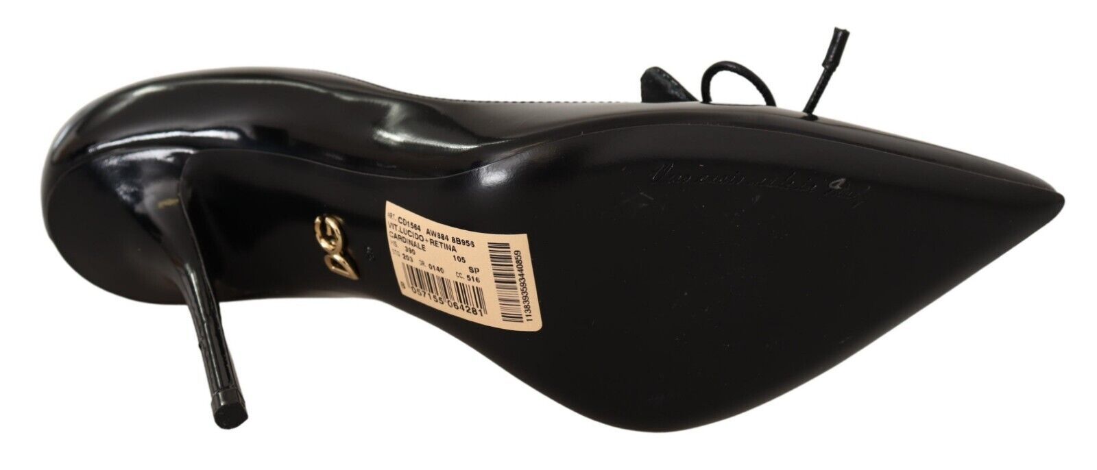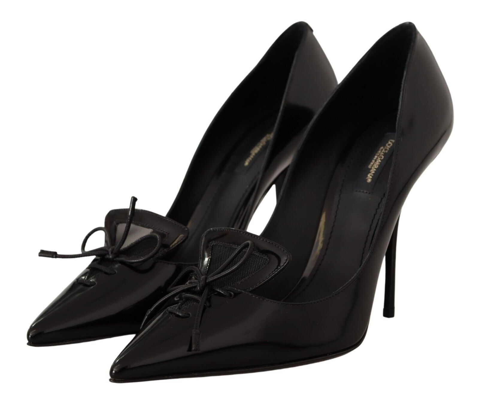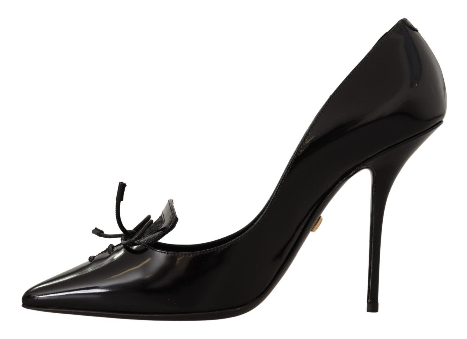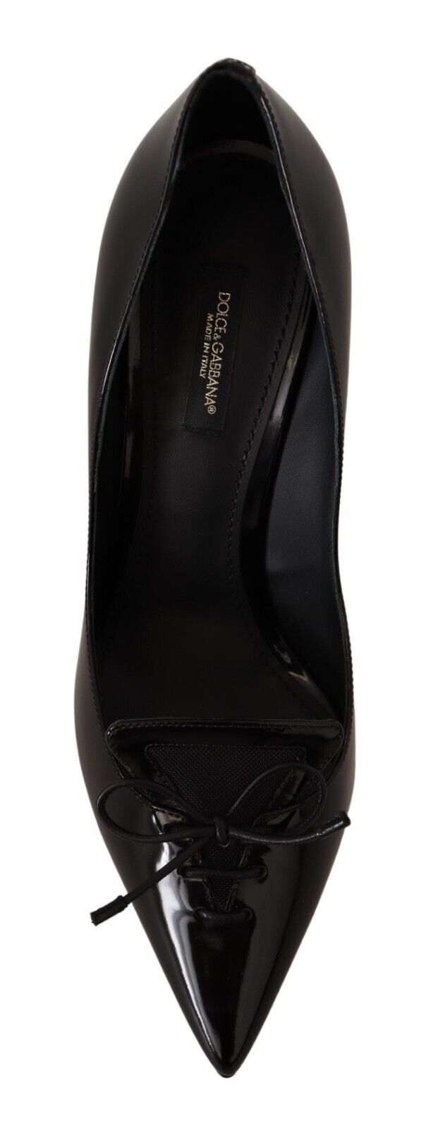 Step into elegance with these Gorgeous, brand new, 100% Authentic Dolce & Gabbana black leather pumps. With their sleek high heels and a pointed toe design, these shoes exemplify high-quality craftsmanship and comfort, perfect for adding a touch of sophistication to any outfit. Crafted in Italy, these pumps are designed to make a statement with their classic color and exquisite logo details.