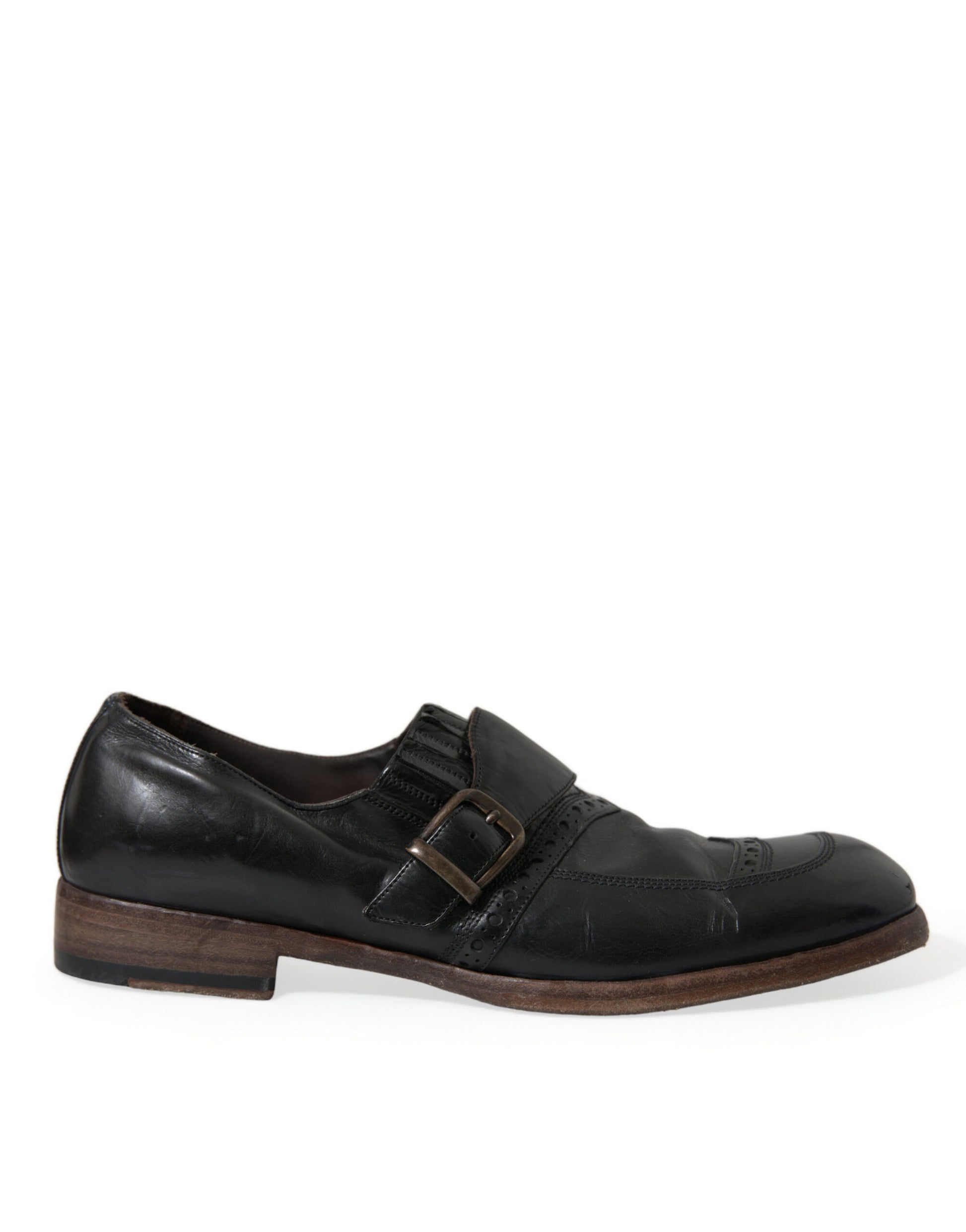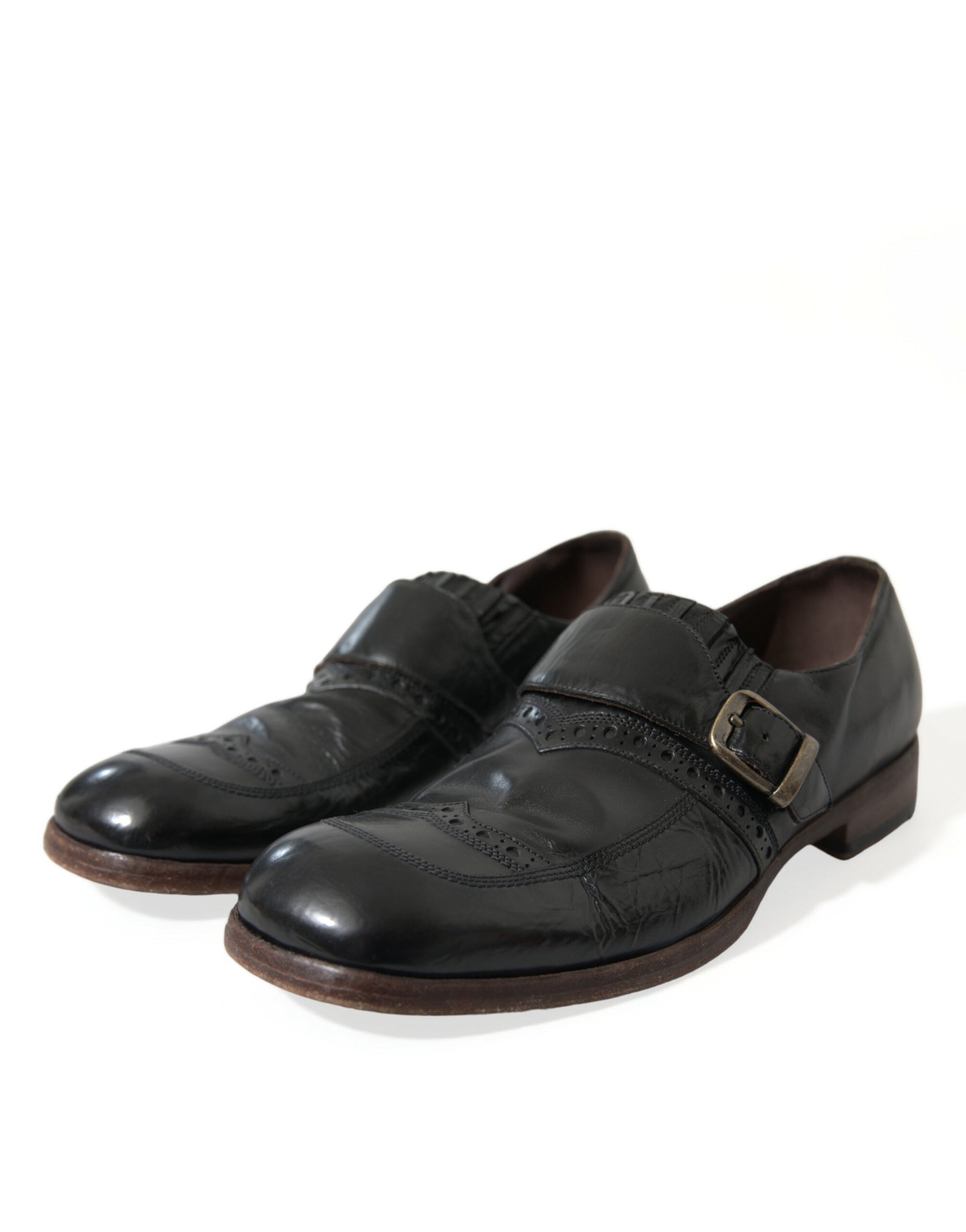 Elevate your style with these exquisite black leather moccasins from Dolce & Gabbana. Perfect for formal occasions, these shoes feature a sleek design with a front buckle closure and the subtle logo details that showcase high craftsmanship. Each pair is brand new with tags, ensuring authenticity and excellence. Crafted from premium leather with an outer sole to match, these moccasins are a testament to Italian luxury.