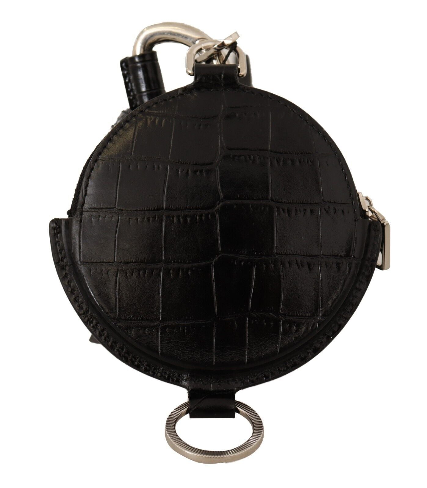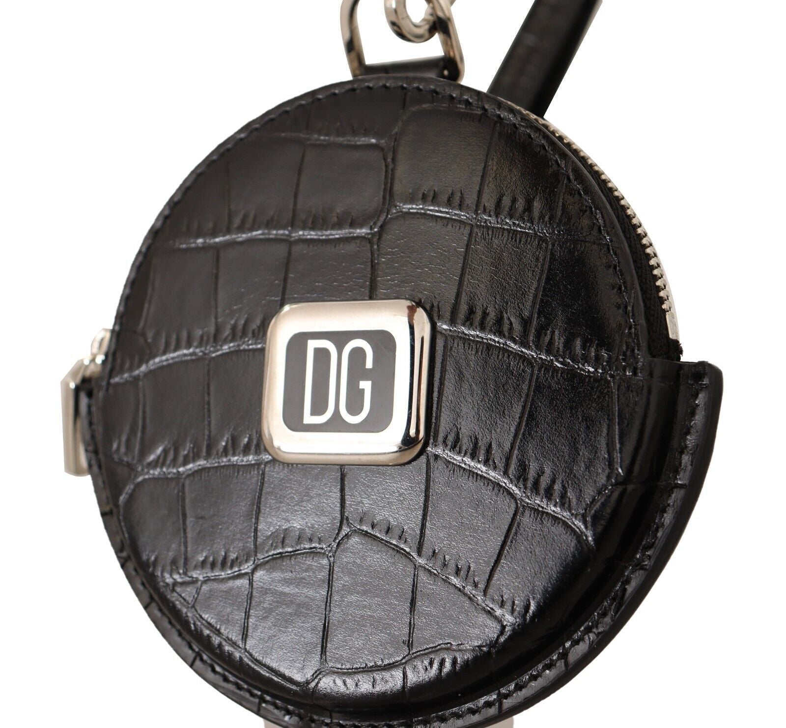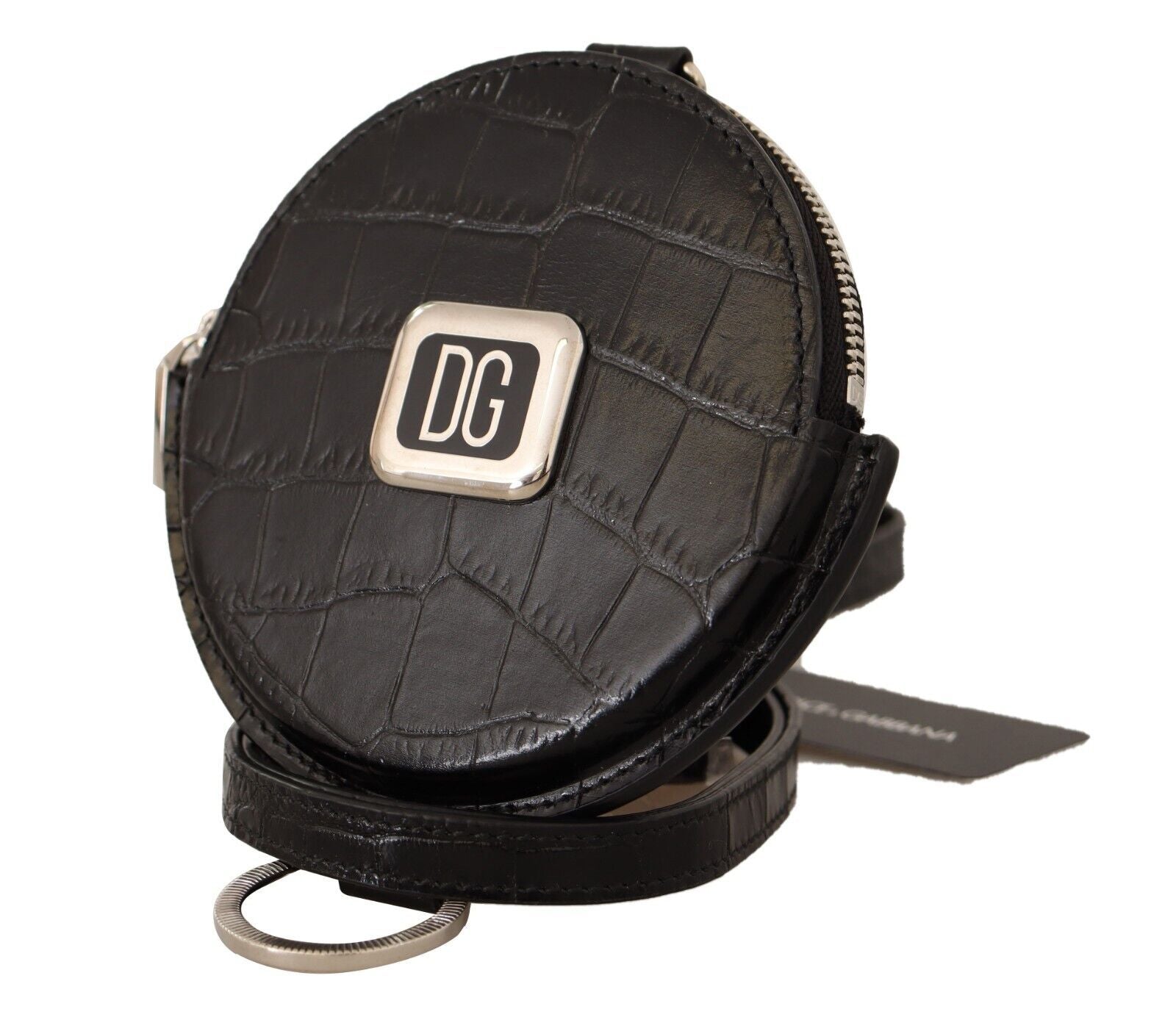 Experience luxury in a compact form with this 100% Authentic Dolce & Gabbana leather round coin purse, brand new with tags. Perfect for keeping your coins sorted and at hand, it comes equipped with coin slots and a secure zipper closure. Designed and crafted in Italy, this purse boasts elegance and quality. Its sleek black leather and versatile strap make it a timeless accessory for any fashion enthusiast.