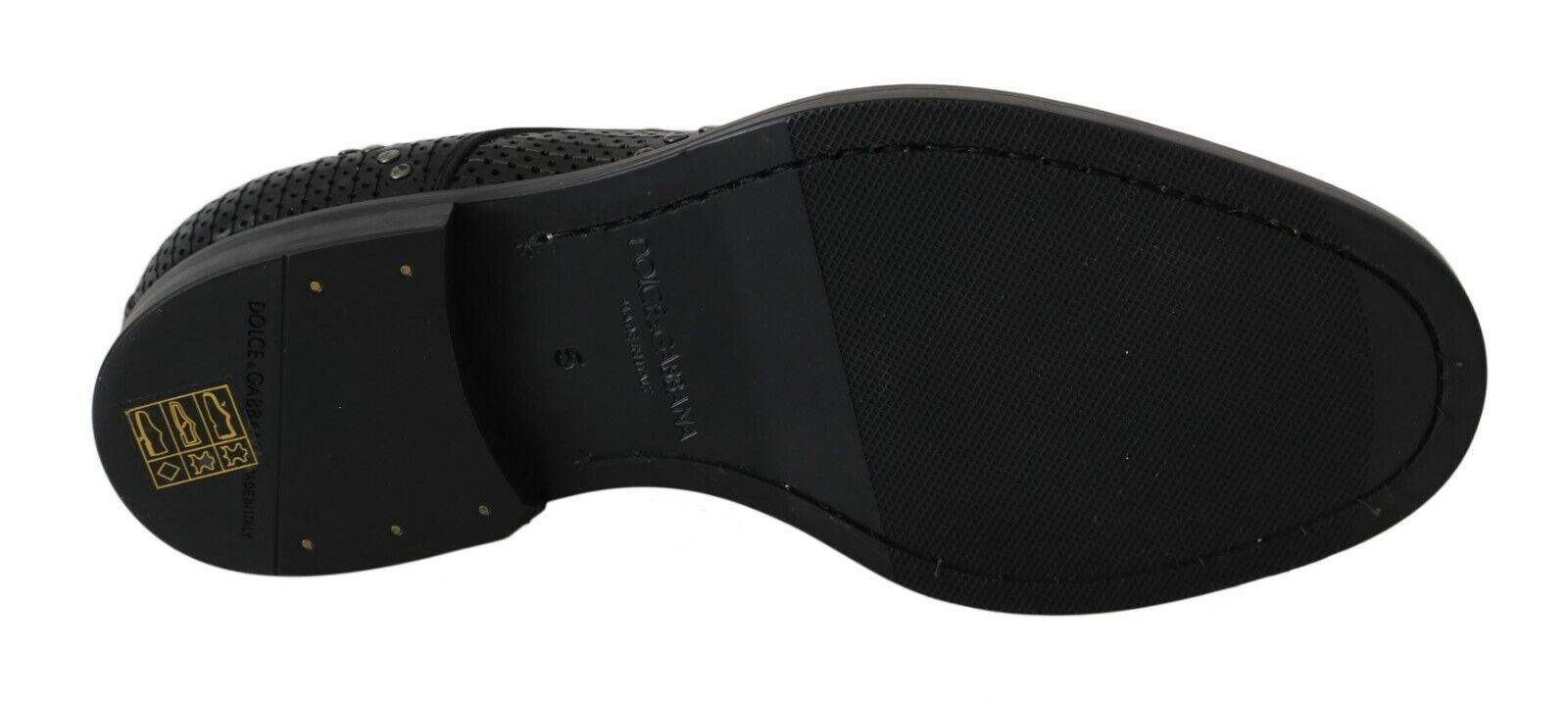 Step into style and sophistication with these exquisitely crafted black leather formal shoes for men from the esteemed house of Dolce & Gabbana. Perfect for those who seek top-quality workmanship, these shoes boast premium materials and attention to detail that Dolce & Gabbana is renowned for. Embrace the blend of luxury and practicality with a sole that combines leather’s refinement with the durability of rubber, making these the ideal choice for any upscale event.