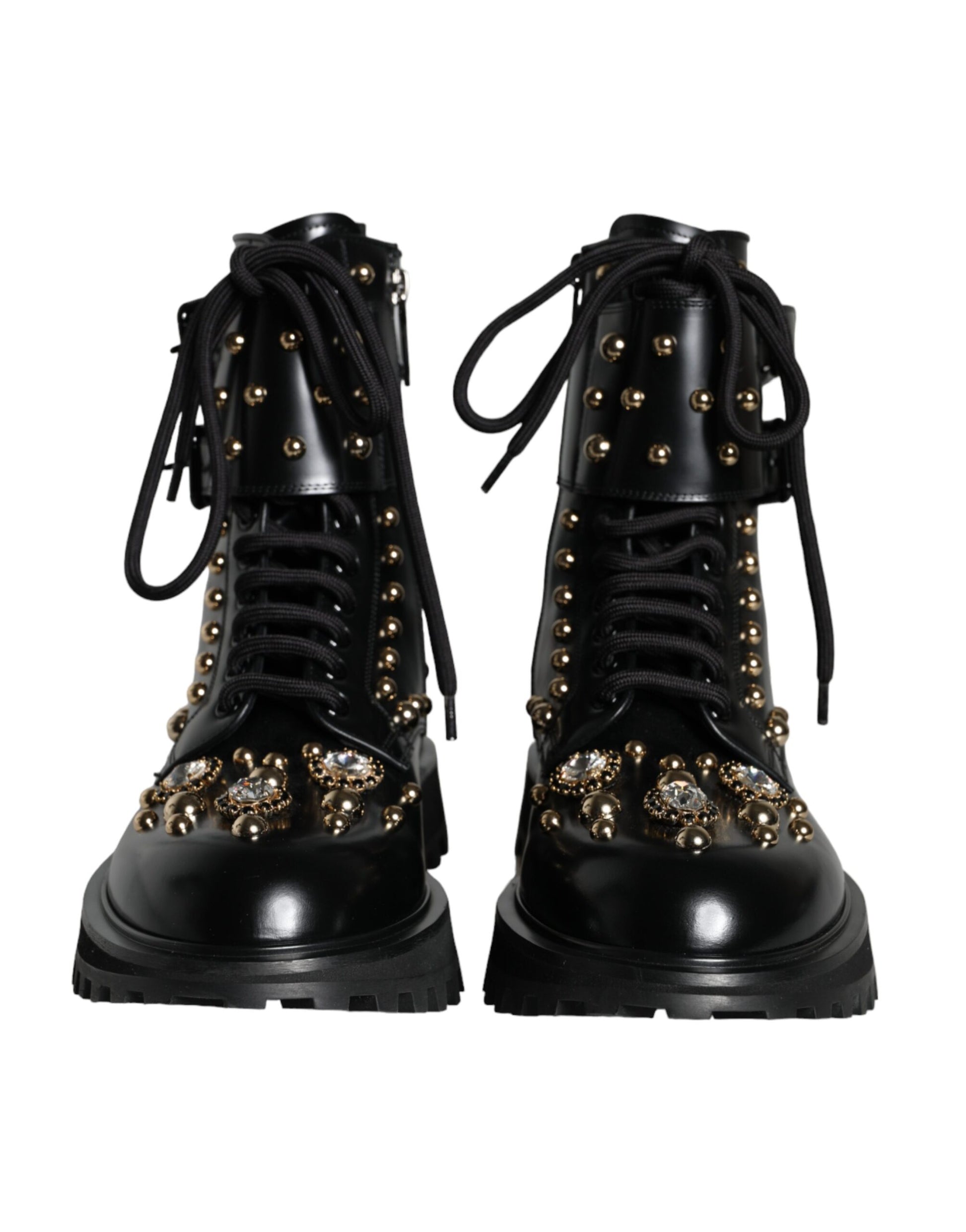 Gorgeous brand new with tags, 100% Authentic Dolce & Gabbana boots shoes with studs embellishment features a lace up.