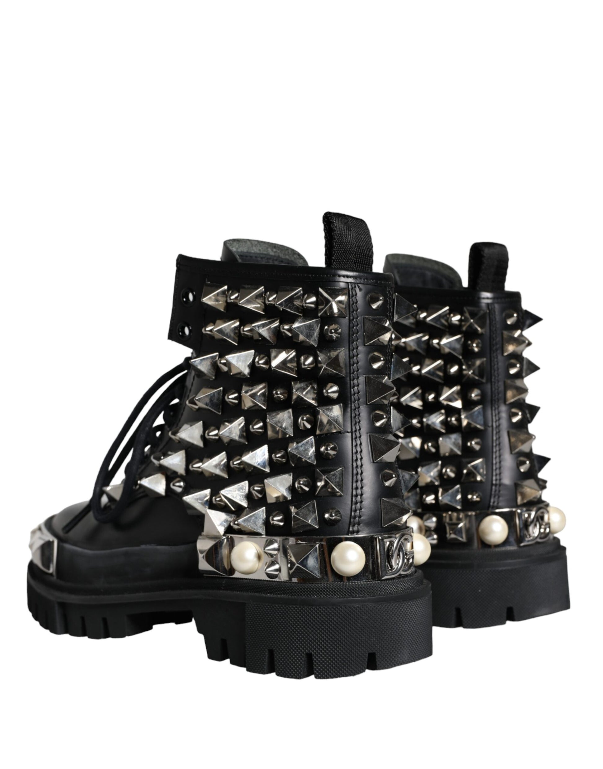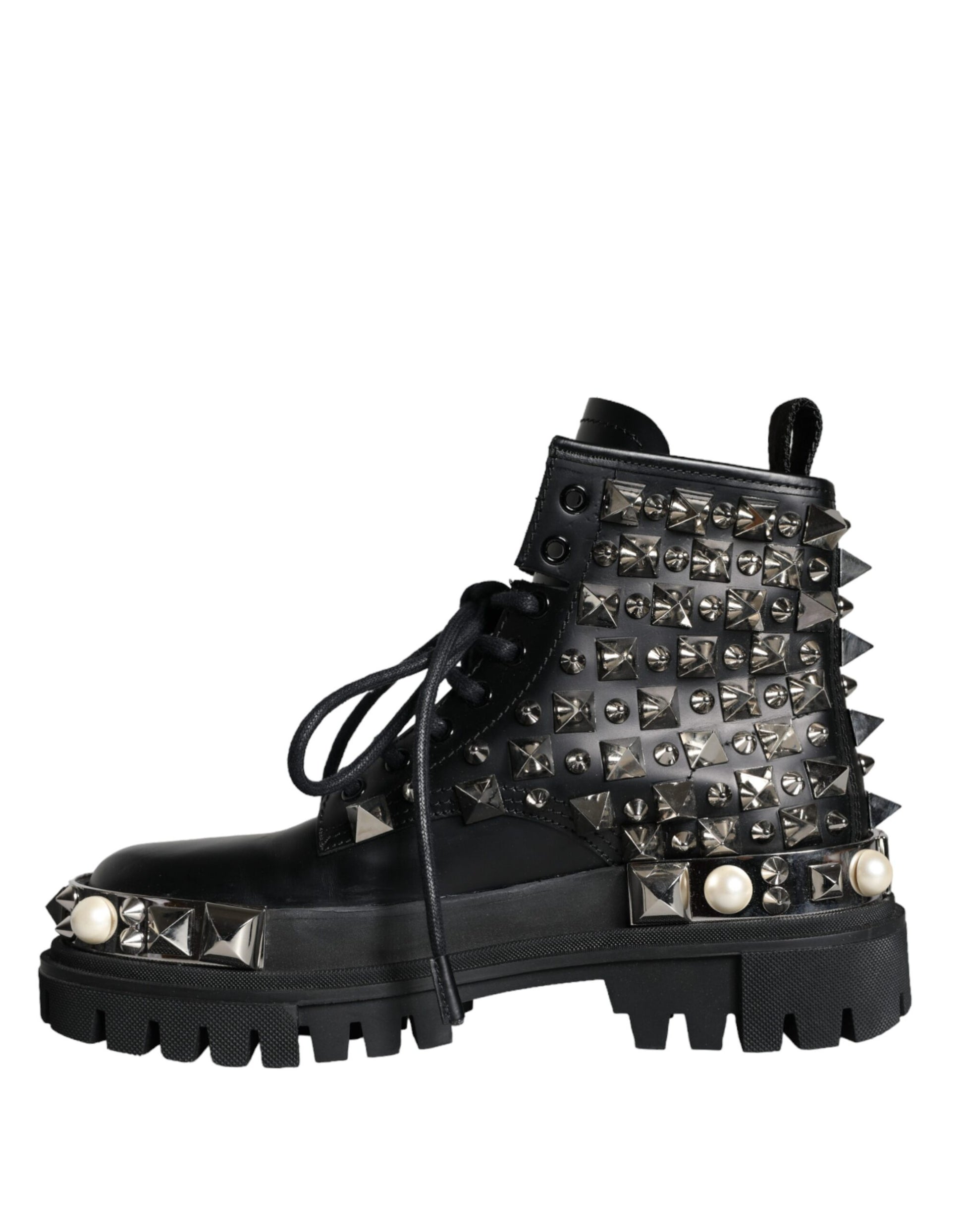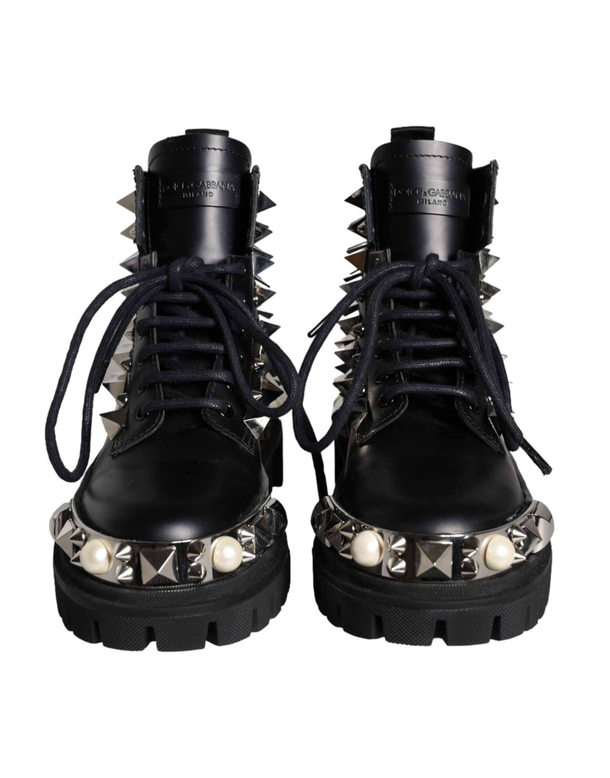 Gorgeous brand new with tags, 100% Authentic Dolce & Gabbana boots shoes with studs embellishment features a lace up.