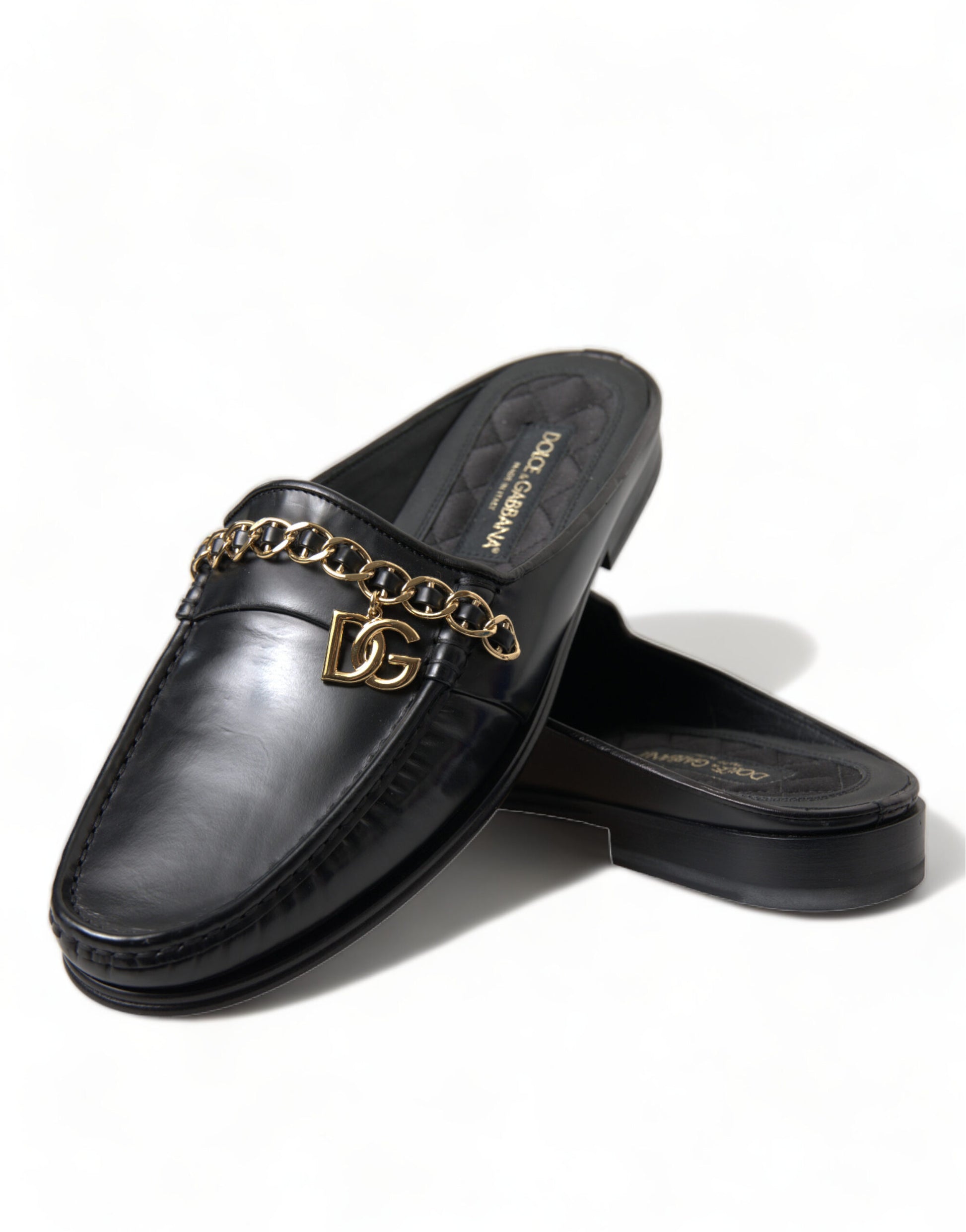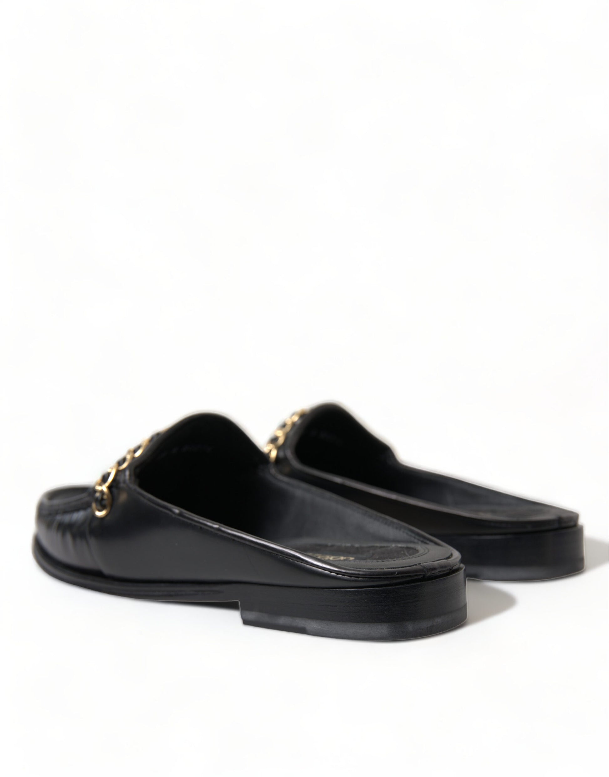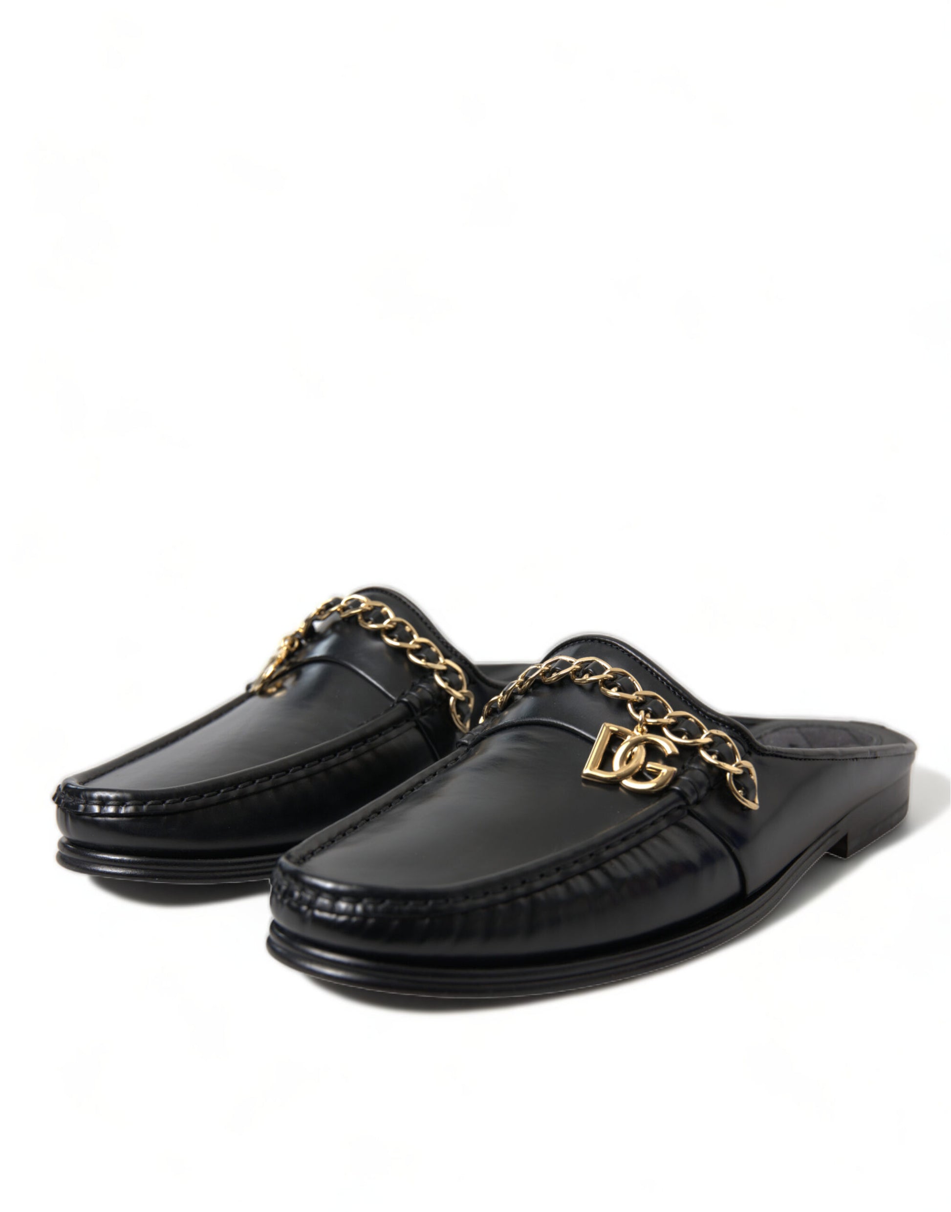 Gorgeous brand new with tags, 100% Authentic Dolce & Gabbana Visconti line is being represented by these exclusive slippers featuring chain and pendant with DG logo. Made from calfskin nappa, they are versatile and comfortable.