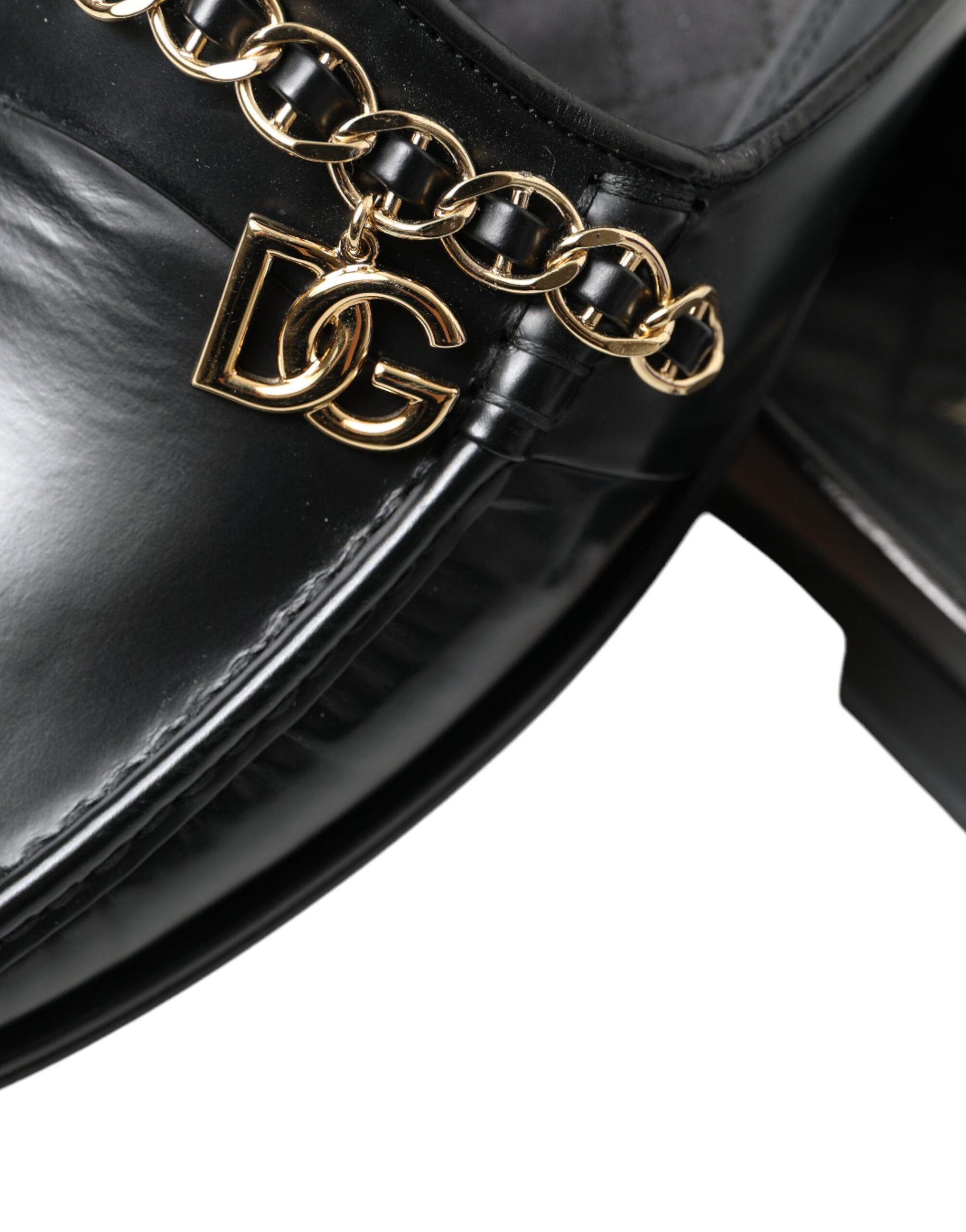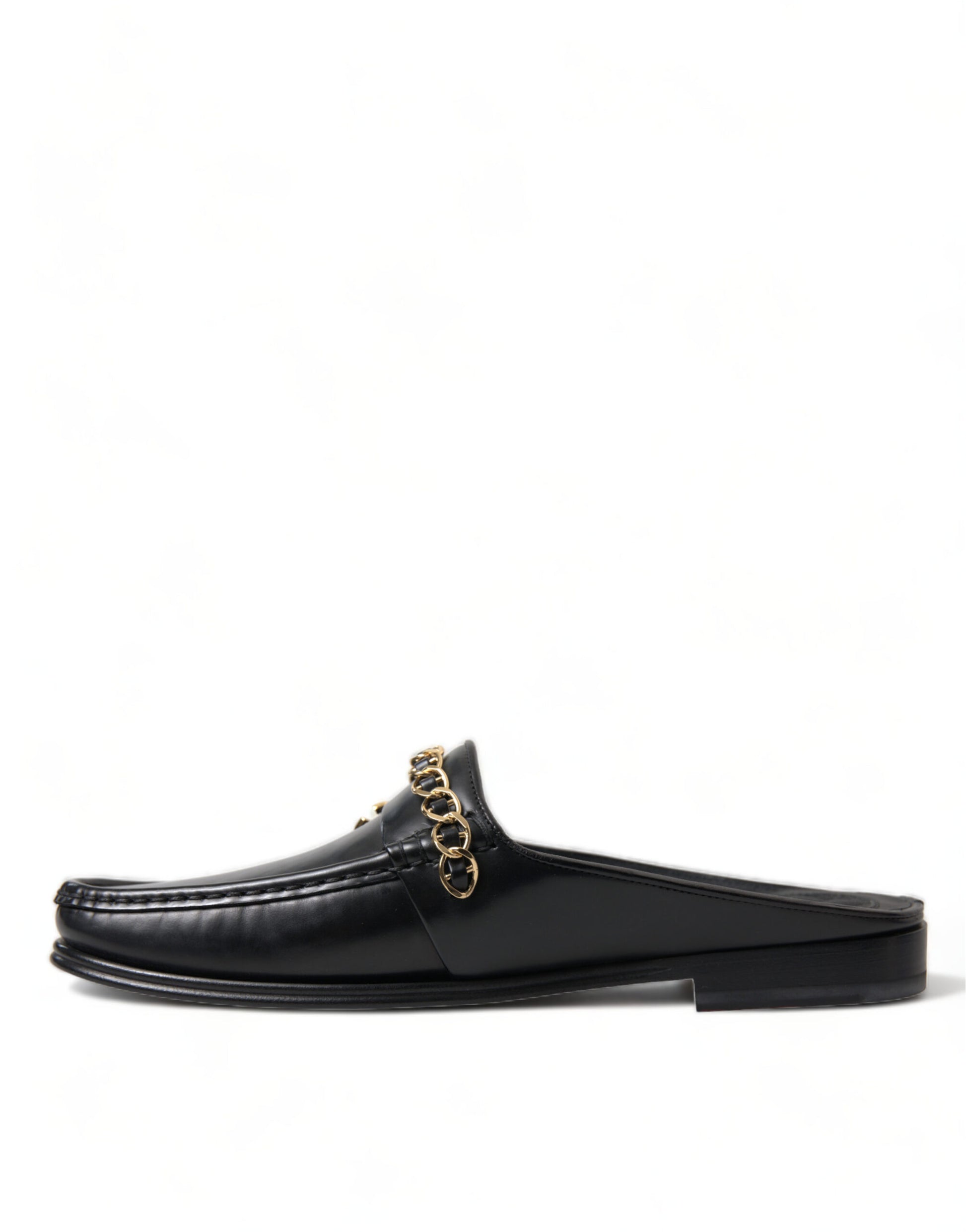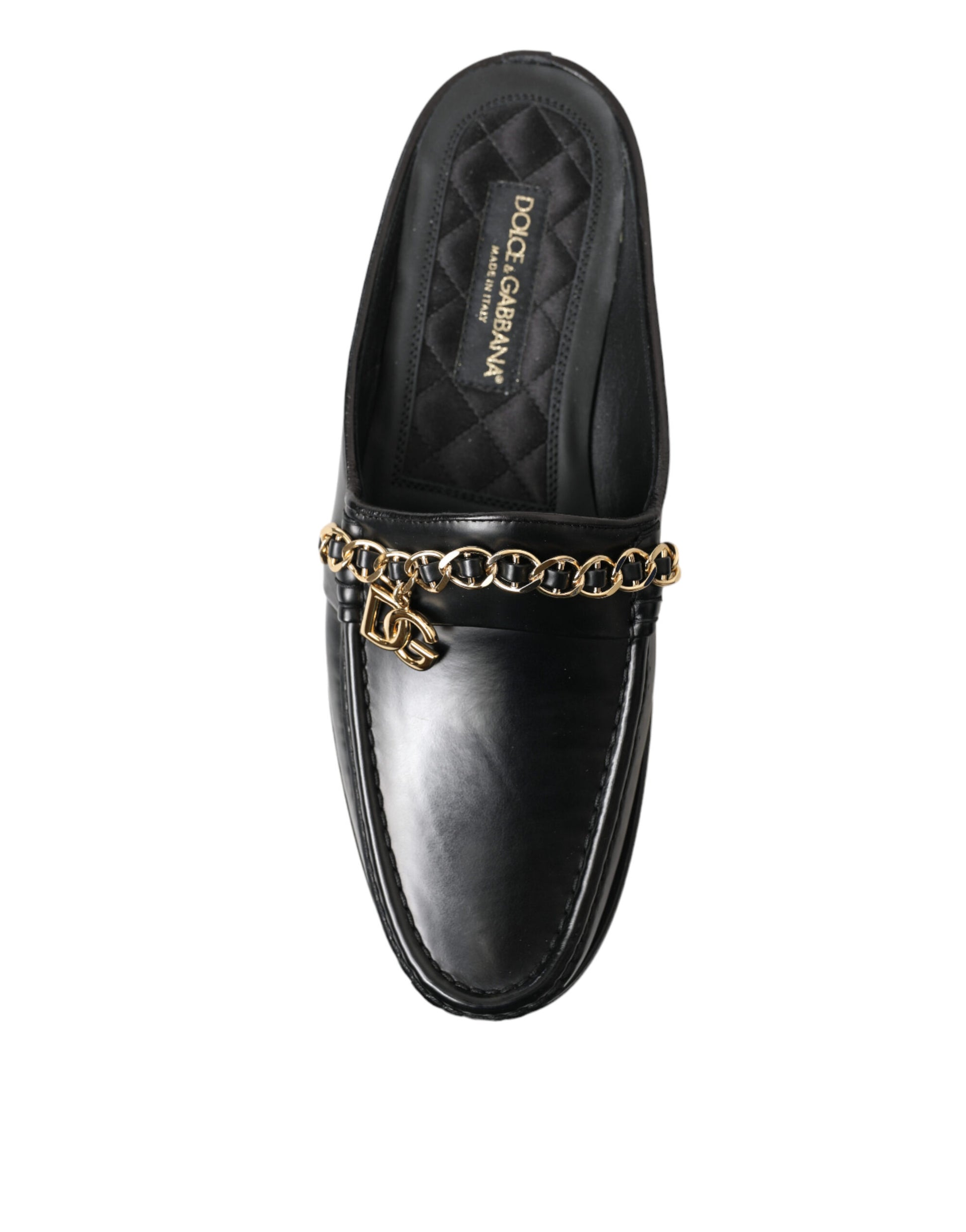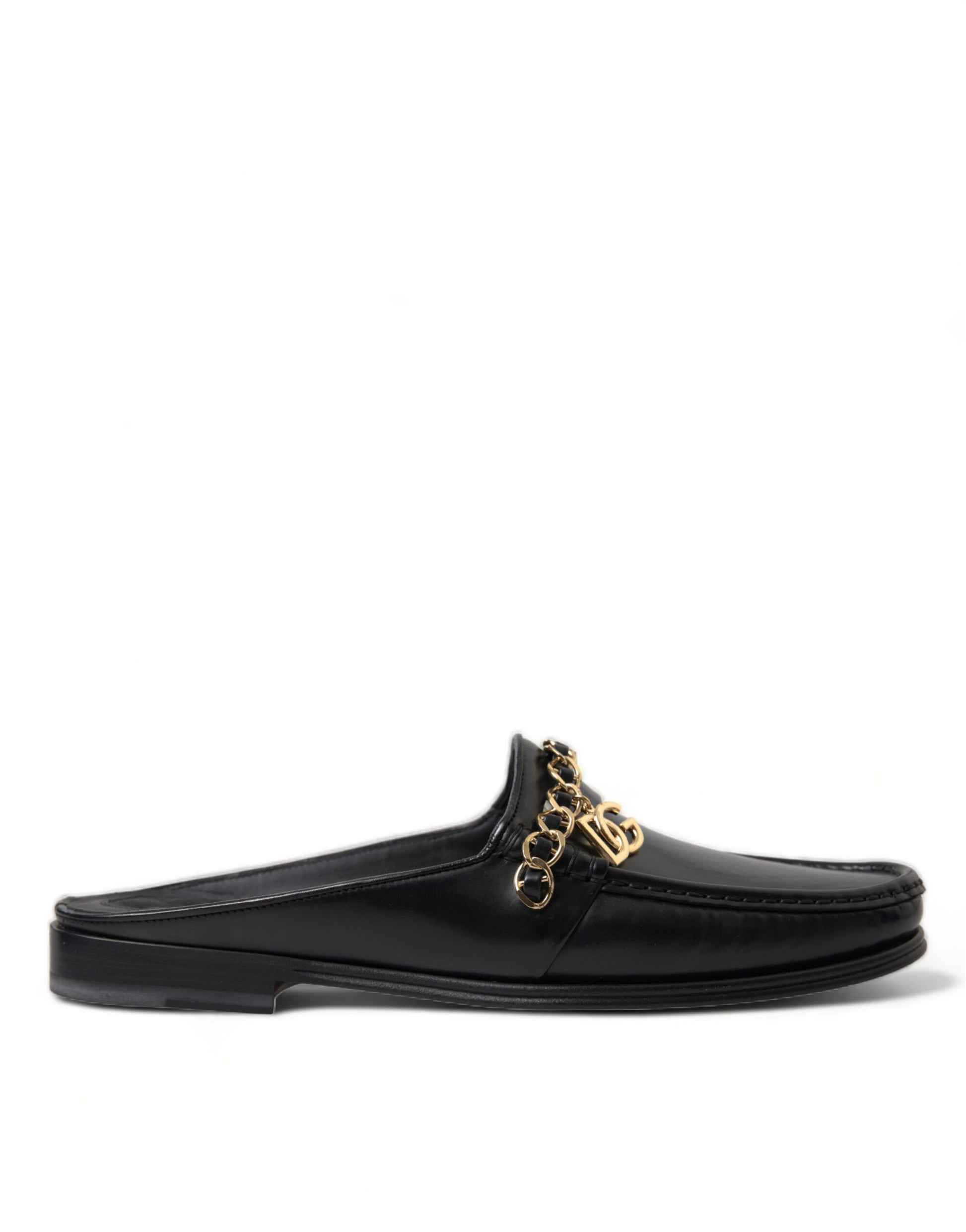 Gorgeous brand new with tags, 100% Authentic Dolce & Gabbana Visconti line is being represented by these exclusive slippers featuring chain and pendant with DG logo. Made from calfskin nappa, they are versatile and comfortable.