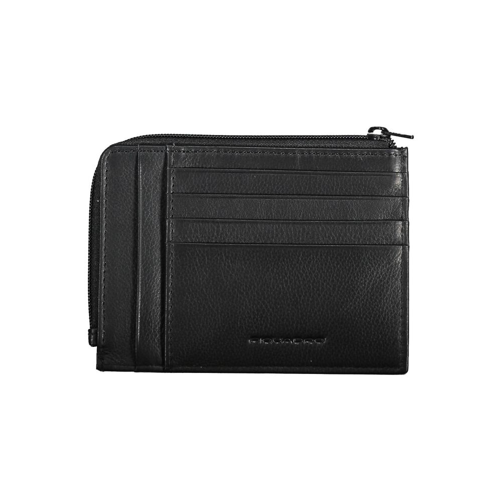 Experience the epitome of sophistication and practicality with the Piquadro Black Leather Card Holder. Designed for the modern man, this compact accessory boasts double card spaces for seamless organization, a central pocket for essentials, and RFID blocking technology to protect your personal data. Its contrasting details and the prominent Piquadro logo exude an air of distinction and style. Perfect for the discerning individual valuing security and elegance in one sleek package.